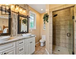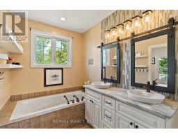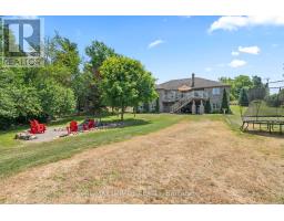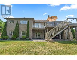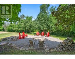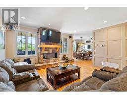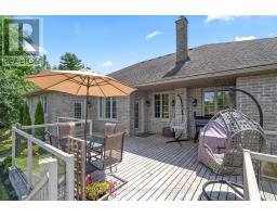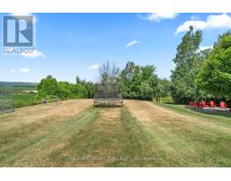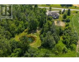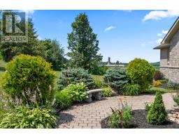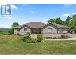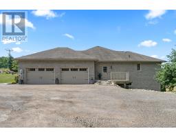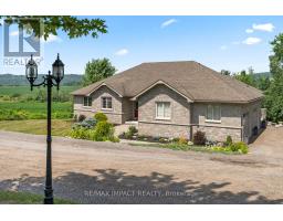Impressive custom brick/stone bungalow, boasting over 2500 sf of luxurious living space on the main level plus full walkout basement and attached heated 3-car garage with 2 overhead doors. Nestled on an expansive 1.74 acres, this home offers a serene lifestyle with panoramic views overlooking farmlands and the Cavan Hills, complete with a spring-fed pond, ranging from 10-14 ft deep. As you enter the front foyer, there is a convenient den plus the grandeur of a spacious great room, accentuated by a striking stone fireplace and a unique waffle-patterned feature wall. Gleaming hardwood floors flow throughout the home with an abundance of crown mouldings and pot lights. The chef's kitchen is a culinary delight, equipped with stainless steel appliances, a granite countertop, ceramic backsplash, and an island with a veggie sink. The adjacent large dining area opens onto a generous deck, designed with tempered regal glass for unobstructed views of the backyard and fire pit area, ideal for entertaining friends and family. The main floor features 4 well-appointed bedrooms, including a primary suite that includes a walkout to the deck, a luxurious 5-pc ensuite with dual sinks, a separate shower and a whirlpool tub, all complemented by a stylish barn door privacy feature. The primary suite also boasts a walk-in closet with built-in shelving for optimal organization. Two of the additional bedrooms share a convenient Jack and Jill bathroom, while a third bedroom is situated near the 2-pc powder room. The walkout basement includes large above-grade windows that flood the space with natural light, a cozy family room complete with an electric infinity fireplace and a dry bar, 3-pc washroom and a huge open area with extra plumbing rough-ins, perfect for customization. The basement also features ample storage, making it an excellent option for a multi-generational living arrangement with its separate entrances and walkout basement. (id:61423)