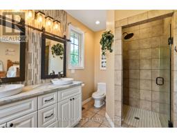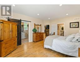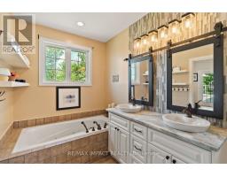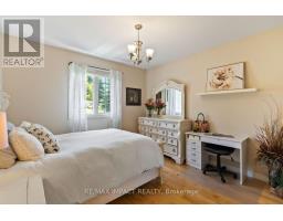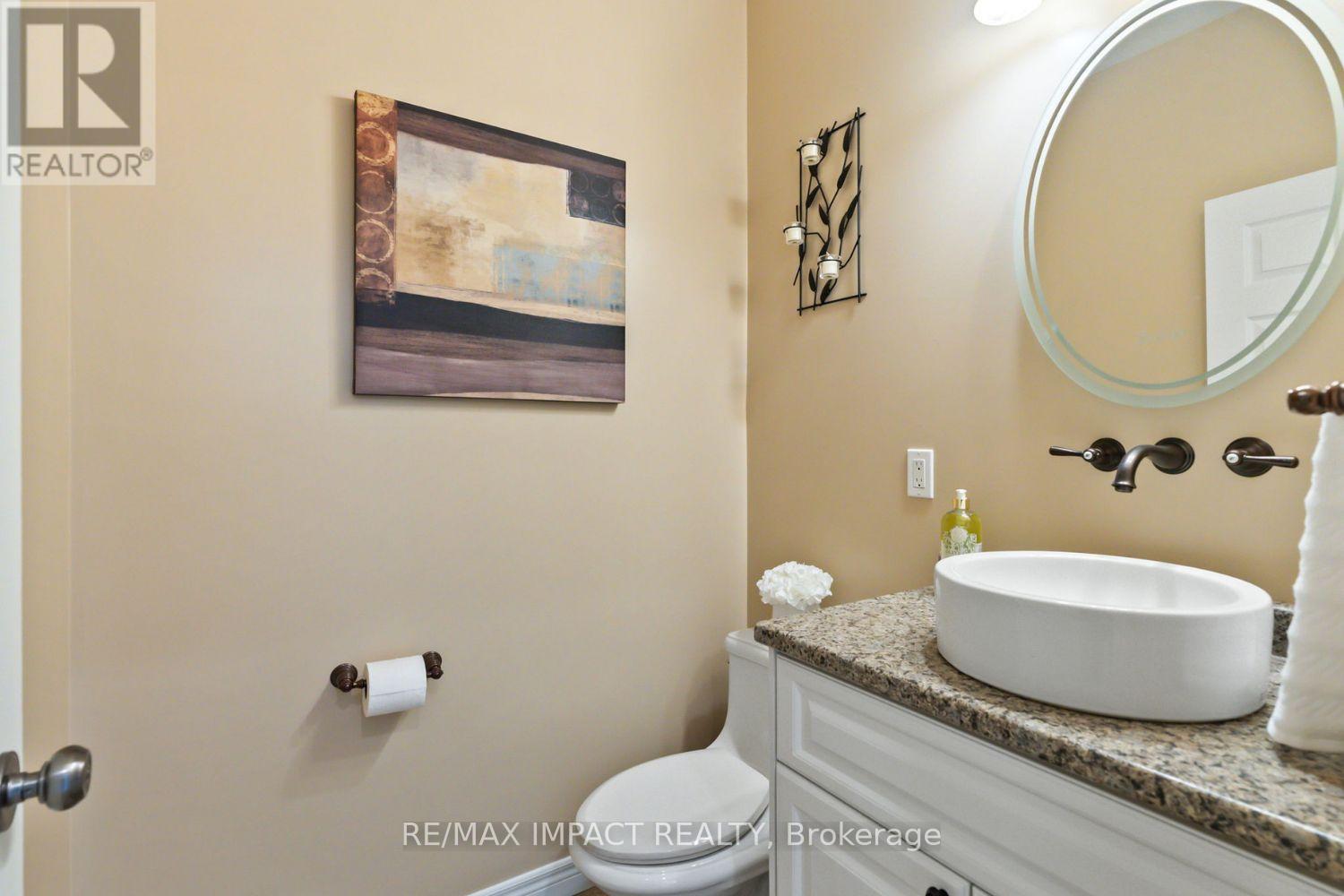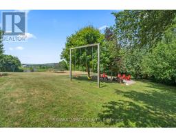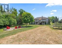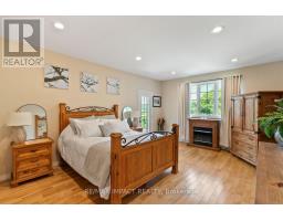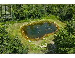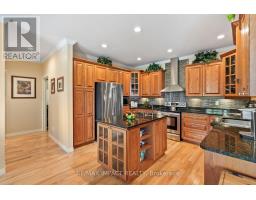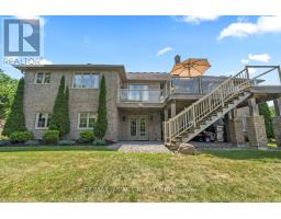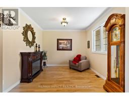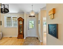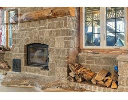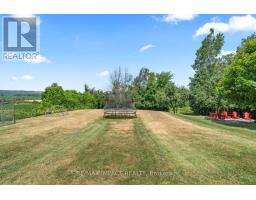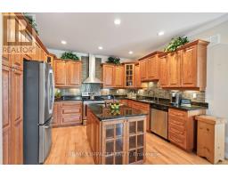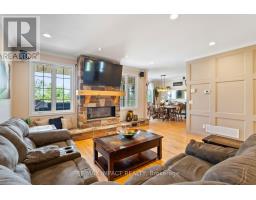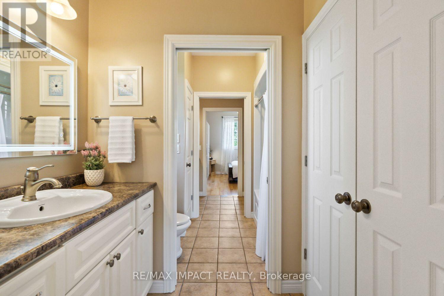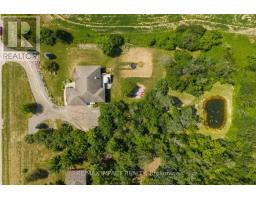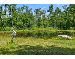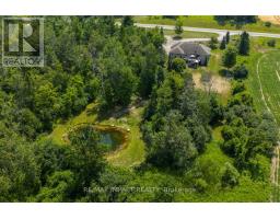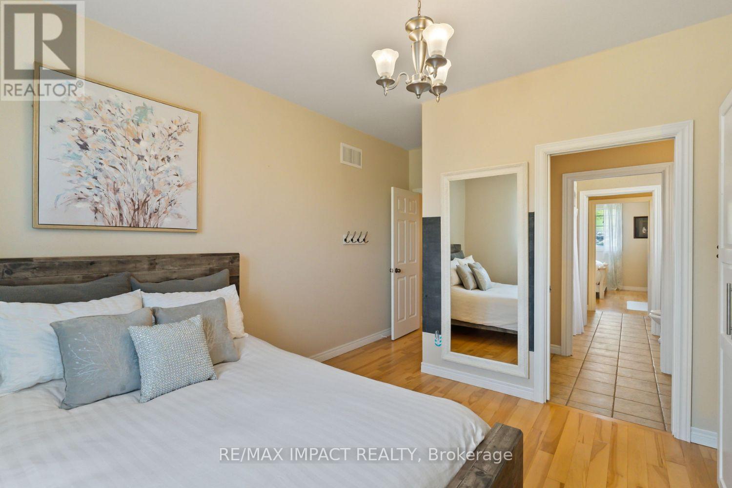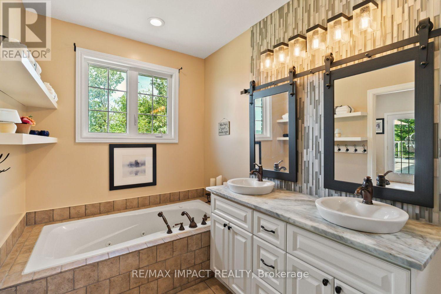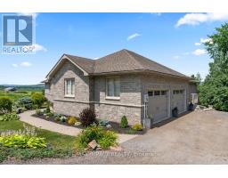 Impressive custom brick/stone bungalow, boasting over 2500 sf of luxurious living space on the main level plus full WALKOUT basement and attached heated 3-car garage with 2 overhead doors. Nestled on an expansive 1.74 ACRES, this home offers a serene lifestyle with panoramic views overlooking farmlands and the Cavan Hills, complete with a spring-fed POND, ranging from 10-14 ft deep. As you enter the front foyer, there is a convenient den plus the grandeur of a spacious great room, accentuated by a striking stone fireplace and a unique waffle-patterned feature wall. Gleaming hardwood floors flow throughout the home with an abundance of crown mouldings and pot lights. The chef's kitchen is a culinary delight, equipped with stainless steel appliances, a granite countertop, ceramic backsplash, and an island with a veggie sink. The adjacent large dining area opens onto a generous deck, designed with tempered regal glass for unobstructed views of the backyard and fire pit area, ideal for entertaining friends and family. The main floor features 4 well-appointed bedrooms, including a primary suite that includes a walkout to the deck, a luxurious 5-pc ensuite with dual sinks, a separate shower and a whirlpool tub, all complemented by a stylish barn door privacy feature. The primary suite also boasts a walk-in closet with built-in shelving for optimal organization. Two of the additional bedrooms share a convenient Jack and Jill bathroom, while a third bedroom is situated near the 2-pc powder room. The walkout basement includes large above-grade windows that flood the space with natural light, a cozy family room complete with an electric infinity fireplace and a dry bar, 3-pc washroom and a huge open area with extra plumbing rough-ins, perfect for customization. The basement also features ample storage, making it an excellent option for a multi-generational living arrangement with its separate entrances and walkout basement. (id:61423)