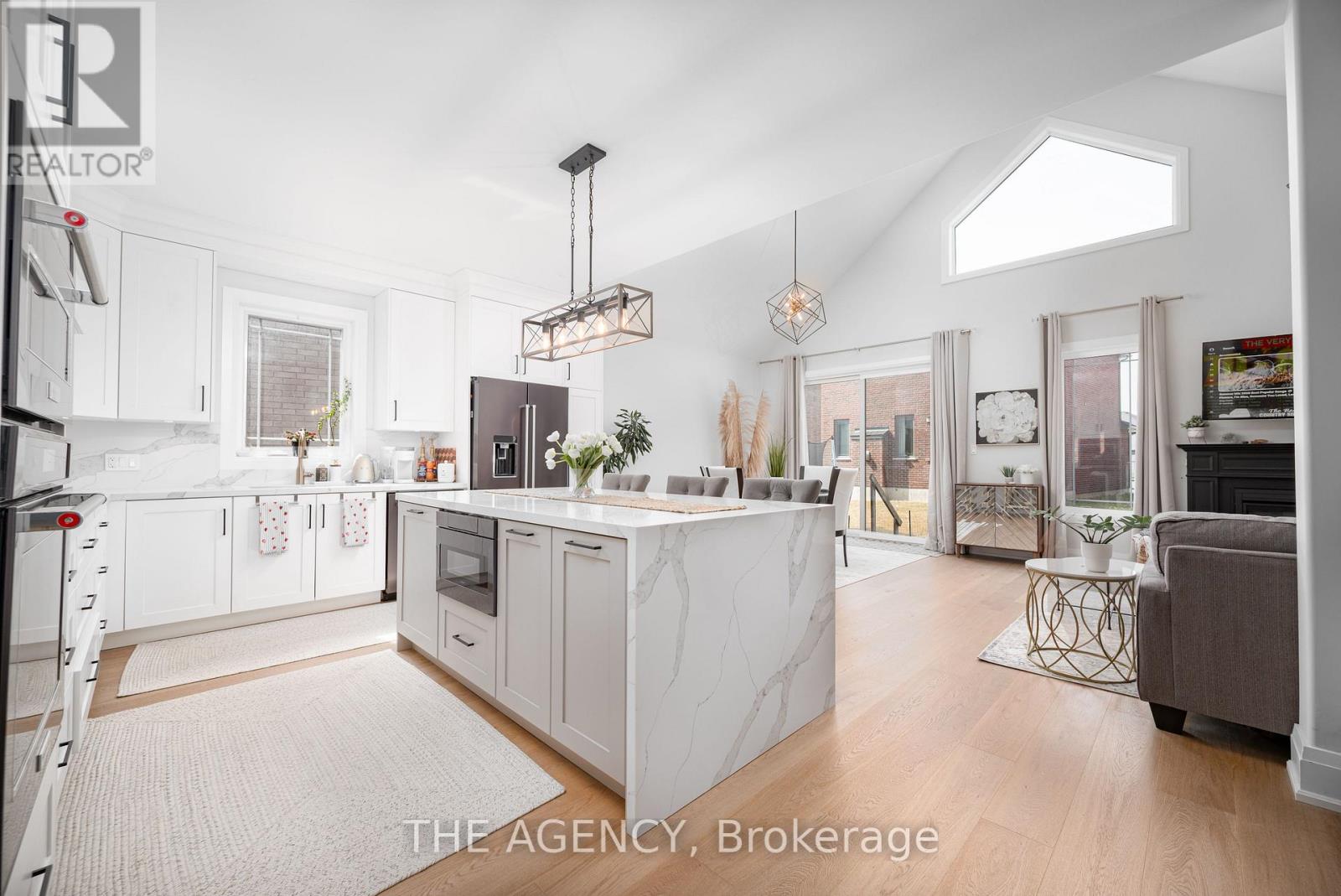 Welcome to 425 Melling Ave. A beautifully upgraded 3 bed,3 bath bungaloft in Peterboroughs desirable North End. This home offers 2,250 sq ft on the main floor of thoughtfully designed living space with more than $150K in premium upgrades. The main level features soaring 17 ft cathedral ceilings and 9 ft ceilings throughout, creating a bright, open feel. The spacious custom kitchen is a showstopper with quartz countertops, a large waterfall island (7'x 4), custom pantry with slide-out drawers, extra-tall and extra-deep cabinetry, crown moulding, and black stainless steel KitchenAid appliances including a built-in microwave drawer and 36 induction cooktop. The partially finished basement offers an extra 1,162 sq ft to truly make it into your own.The primary bedroom features a custom-built closet and a full ensuite with a walk-in shower. The additional 2 bathrooms are fully renovated with quartz countertops and glass-enclosed tub/showers. The home offers wide 7.5 hardwood plank flooring throughout, complemented by grey marbled ceramic tiles in the foyer, laundry room, and all bathrooms. The custom laundry room is complete with quartz countertops, upper cabinetry, and LG ThinQ front-load washer and dryer.Enjoy the warmth of the gas fireplace in the open-concept living space, along with oversized 7 '3/4 high baseboards throughout. The large basement offers incredible potential with high ceilings (78) and 5 windows, including 3 oversized windows providing excellent natural light.The exterior features an irregular lot with a 60' frontage x 87' depth. The double car garage includes a custom-built storage loft and the driveway comfortably parks four vehicles.The front porch is as welcoming as it gets.This move-in ready home offers exceptional craftsmanship, modern upgrades, and a flexible floor plan perfect for families or downsizers. (id:61423)