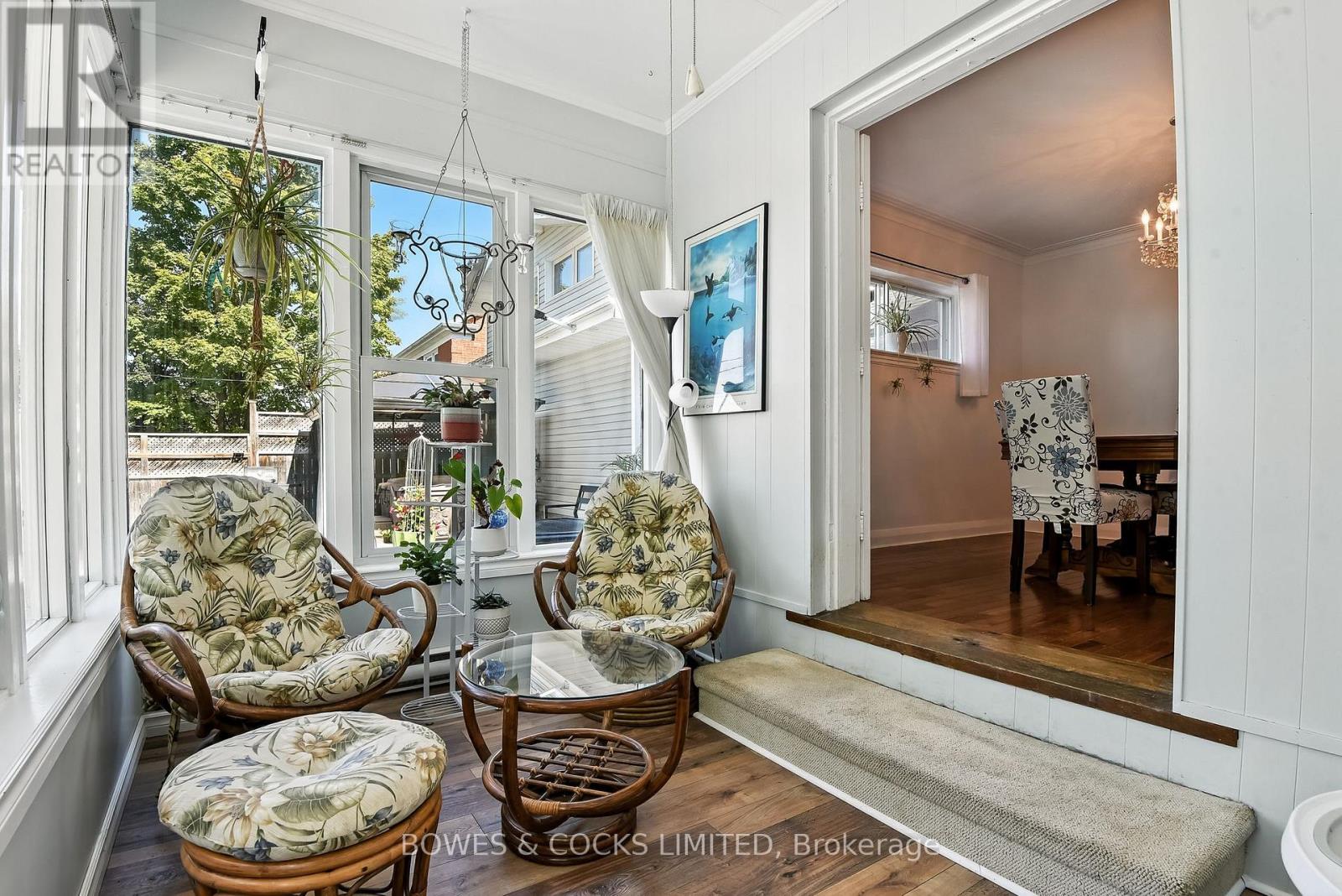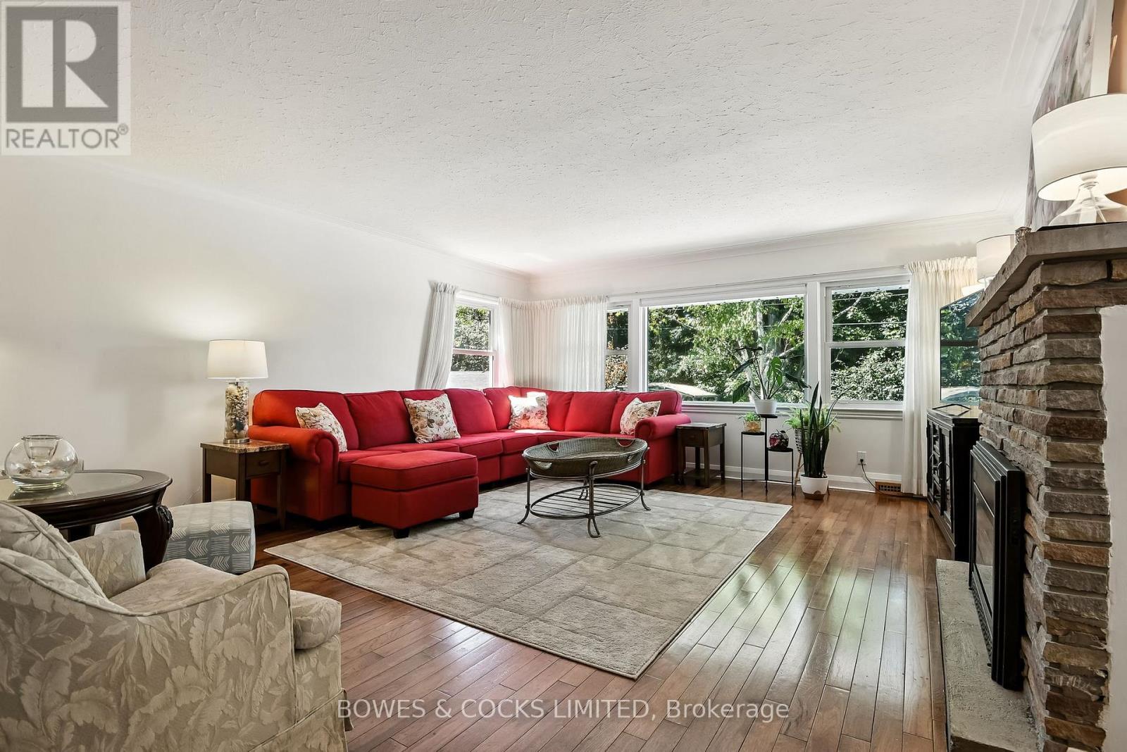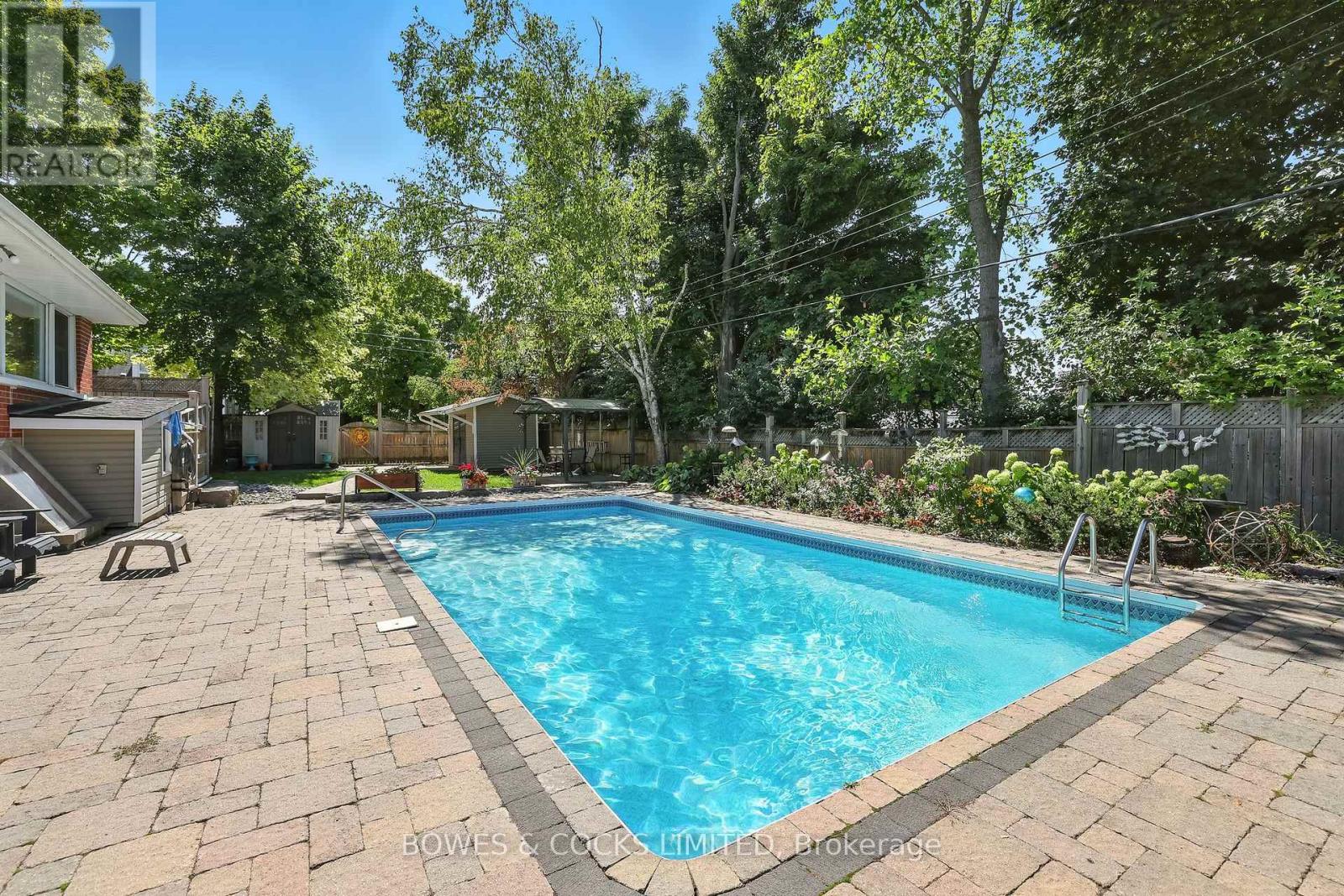 Welcome to 433 Manorhill Avenue. This expansive, solid-brick home is set on a double-wide corner lot with mature trees, offering a serene, country-like feel in Peterborough's highly desirable Old West End. The main floor welcomes you with comfort and elegance, featuring two bedrooms, a full bathroom, a formal living and dining room, an updated kitchen and a lovely sunroom. With engineered hardwood floors throughout, a cozy brick fireplace, and large windows overlooking the pool and gardens, creating a perfect space to relax. Upstairs, you'll find two additional spacious bedrooms and another full bathroom. The lower level offers excellent potential for multigenerational living or guest accommodations, complete with its own separate entrance, a bedroom, kitchenette, bathroom, and a cozy living room with a welcoming brick fireplace. The fully fenced backyard is a private retreat, professionally landscaped with raised garden beds, perennial flower beds, and interlocking stone surrounding the large inground pool. Multiple gazebos, a hot tub, and generous patio space provide the perfect setting for entertaining or unwinding. The oversized attached two-car garage includes a workshop and a loft designed as a mancave-complete with a pool table and lounge space. Ideally located within walking distance to Peterborough Regional Health Centre, shopping, schools, and amenities, this home truly offers it all: space, character, privacy and a lifestyle you'll love. (id:61423)