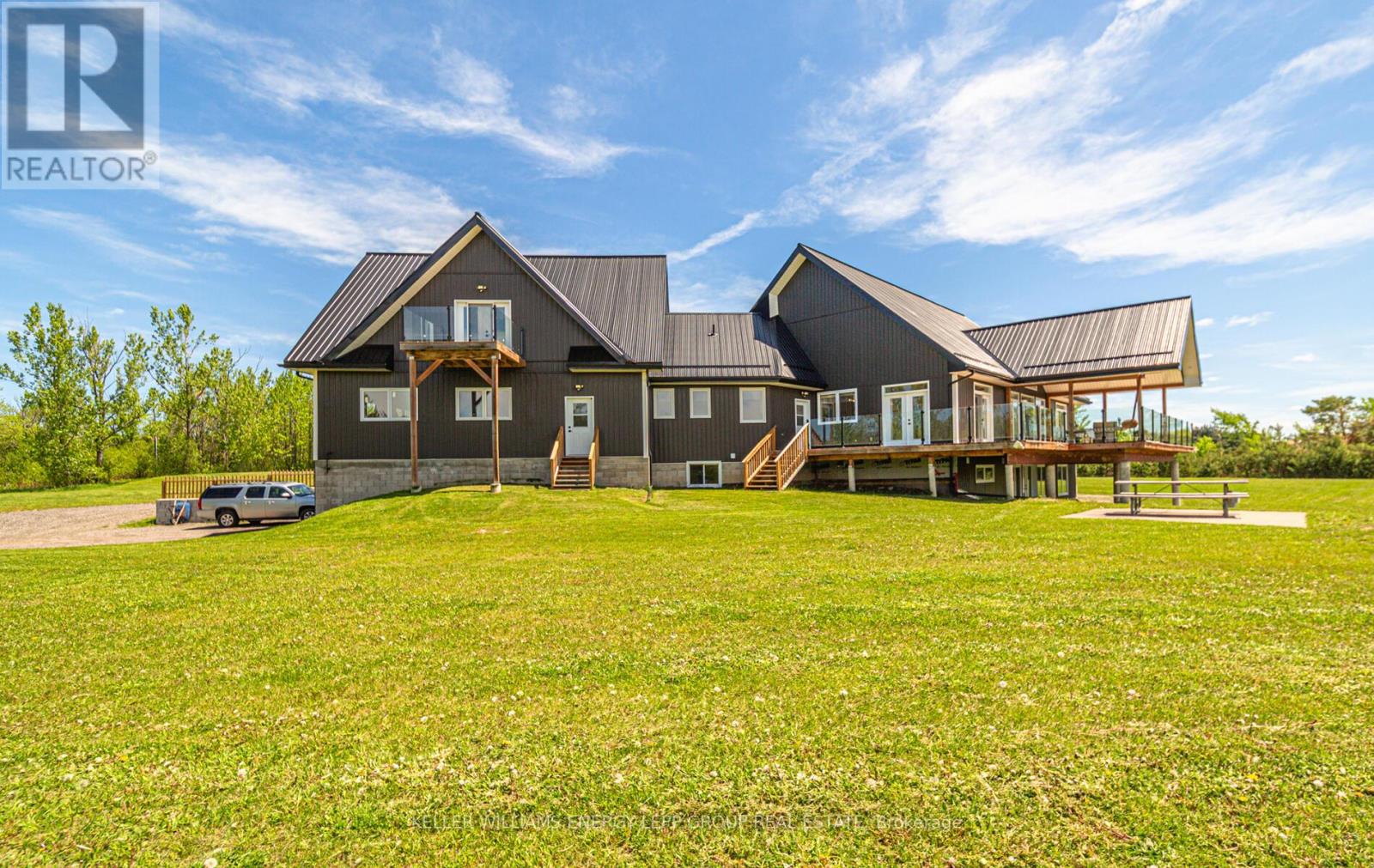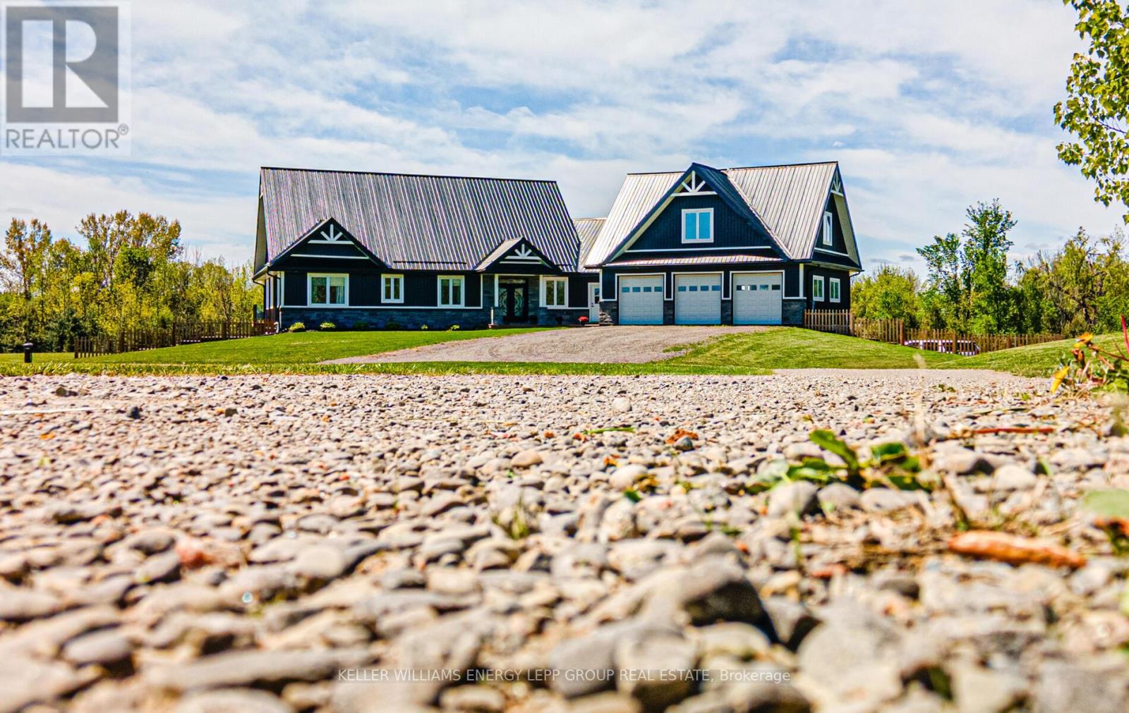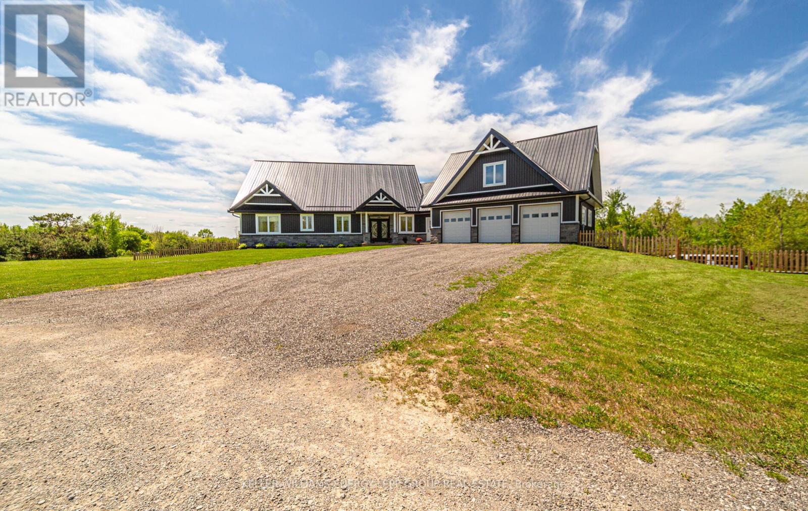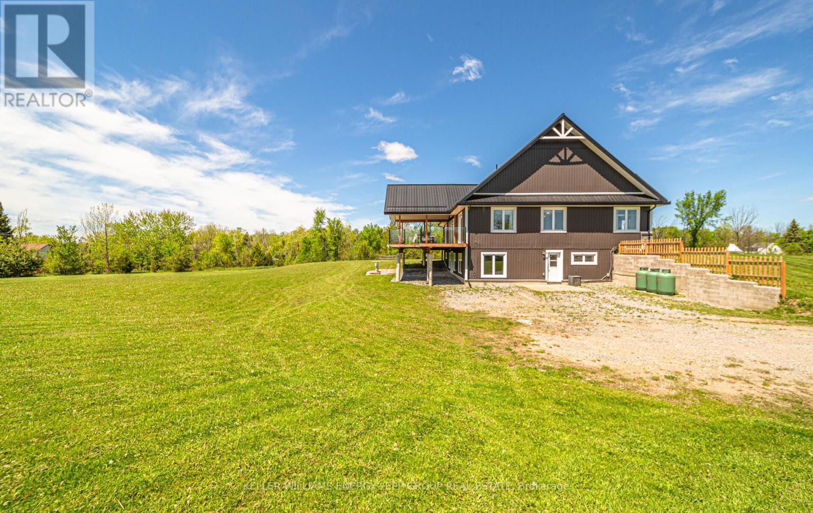 This beautiful 3-bedroom, 3-bathroom custom-built home is set on a private 7.4-acre lot and offers exceptional space and craftsmanship throughout. Featuring 9-ft ceilings and 8-ft glass doors, the home is finished with 8-inch engineered hardwood flooring. The spacious living room boasts 16-ft cathedral ceilings, pot lights, ceiling fans, and 7-ft windows that flood the space with natural light and provide a seamless walkout to an approx. 800 sq ft deck with custom aluminum frameless glass railing perfect for alfresco dining and entertaining. Enjoy five walkouts to the main deck, ideal for seamless indoor-outdoor living. The gourmet kitchen is a showstopper, featuring maple cabinetry with solid oak doors, a distressed leather granite countertop, and a massive 5x10 center island. The primary bedroom includes a walk-in closet, walkout to the deck, and an opulent 5-piece ensuite. The 2,525 sq. ft. basement offers three additional walkouts and endless potential. Additional highlights include upper and lower garages, perfect for vehicles, tools, or extra storage. Located just 10-15 minutes from shops, a bakery, pharmacy, and restaurants, with easy access to parks, a library, medical services, and only a 5-minute walk to year-round recreation on Lake Scugog, including a nearby boat launch for convenient lake access. (id:61423)