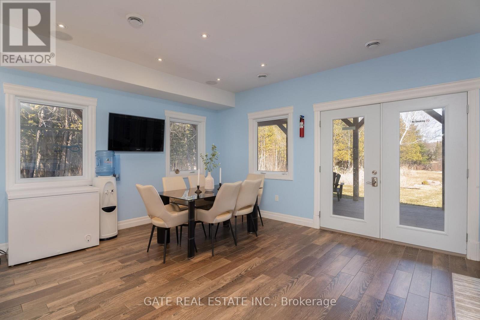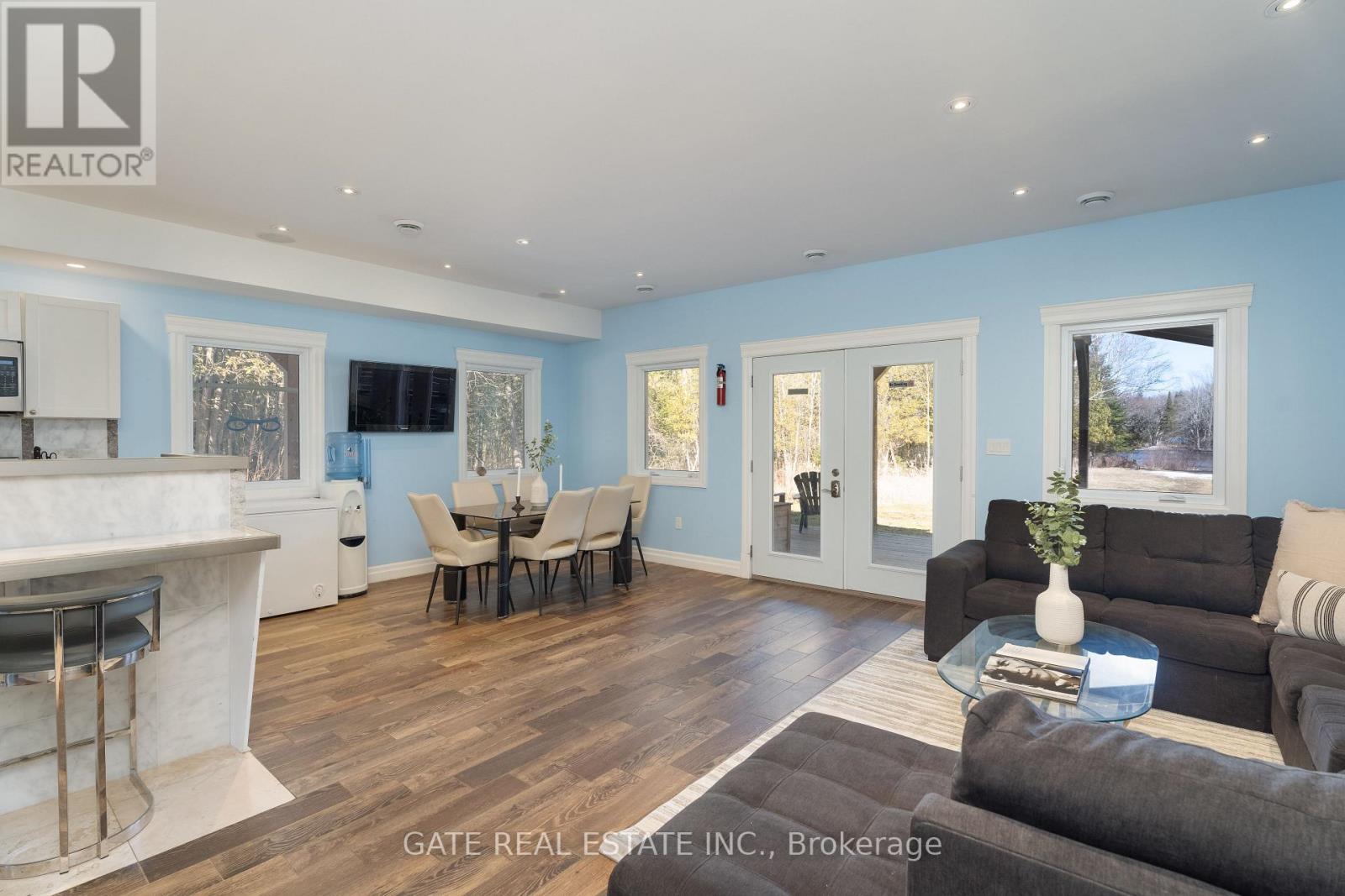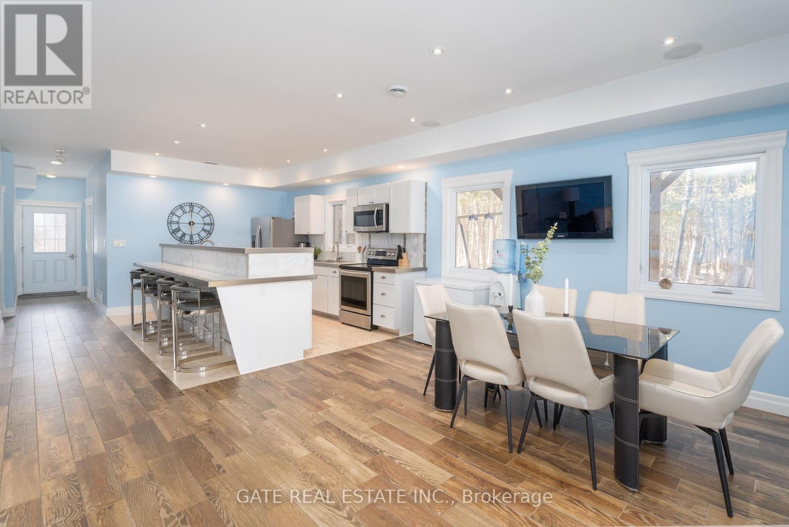 NOT TO MISS!!!!Fully Furnished!!! READY to MOVE-IN!! A Luxurious 5 Bed+5 Bath, Modern, Elegant, Cottage in Bobcaygeon, GEM of Kawartha Lakes. Nestled on nearly 3.5 acres along scenic Bass Lake Rd. This retreat offers privacy, high-end finishes, and smart design. All bedrooms feature private balconies with stunning water views, en-suites, and heated washroom floors. Step into a contemporary open-concept living space with expensive stone counter-tops, two double sinks, a premium Samsung dishwasher, and a chef's dream kitchen with LED-lit breakfast island, stainless steel appliances, and a wet bar. The wraparound deck, showcasing pot lights, 3 skylights, glass railings, solar-lit BBQ area, and direct gas hookup. Enjoy year-round comfort with R65 insulation on the top floor and R45 on the other Floors emergency electric heaters on every floor, and a powerful auto generator capable of supporting the entire home. Hardwood flooring on the 2nd and 3rd levels adds warmth and sophistication, while built-in speakers with room-by-room control create the perfect ambiance. Outdoors, a heated pipeline from the Well, a top-tier septic system with high-water alarm, a separate gazebo, a spacious water patio, and a floating dock for endless lakefront enjoyment. 5 mins to downtown Bobcaygeon, proximity to Fenelon Falls, Year around Festivals, Gatherings & Enjoyment. (id:61423)