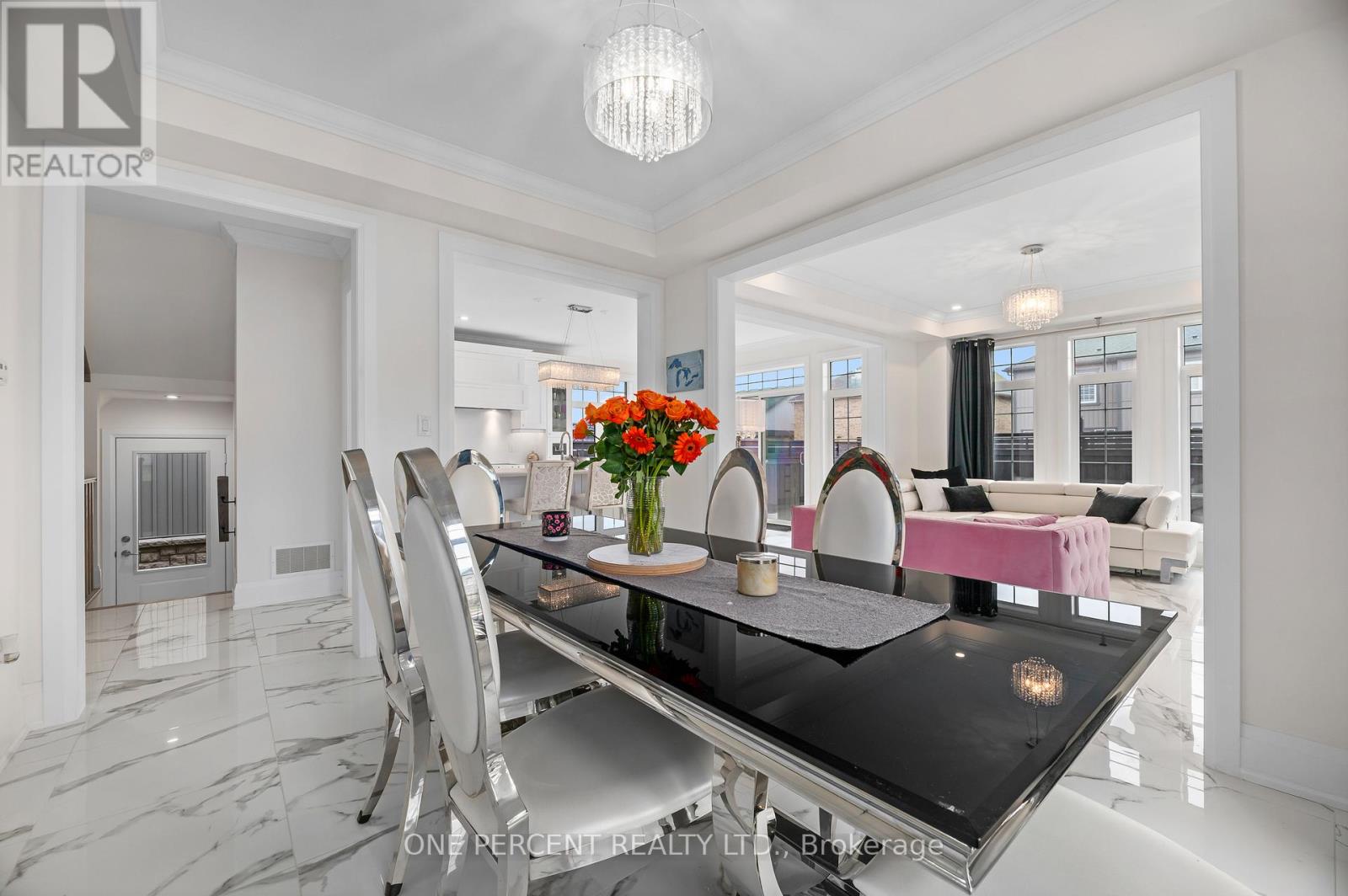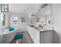 Welcome to Elite Elegance. This meticulously finished residence delivers the space, light, and open-concept design today's buyers are drawn to. The main living areas flow seamlessly, creating a bright, connected environment ideal for both everyday living and entertaining. The kitchen anchors the home with a functional, open layout that integrates effortlessly into the surrounding space. Featuring extended cabinetry, generous counter space, and clean, modern finishes, it offers both efficiency and visual appeal. Clear sightlines across the main floor enhance the sense of space, while the neutral palette provides a timeless, move-in-ready feel. Upstairs, expansive bedrooms with oversized windows offer bright, comfortable retreats. The primary suite is a true highlight, featuring a tray ceiling, abundant natural light, and a spa-inspired ensuite complete with a freestanding soaker tub, glass walk-in shower, and double vanity with quartz counters. Secondary bedrooms are well-proportioned and thoughtfully positioned, with convenient access to ensuite or semi-ensuite bathrooms, providing flexibility for families and guests. Each bathroom is finished with modern fixtures, quality cabinetry, and clean tile work. Stone flooring adds a durable, upscale touch in key areas, complemented by upgraded light fixtures, crown moulding, and cohesive design choices throughout. The upper-level laundry room adds everyday convenience with full-size appliances and built-in storage. From quiet mornings filled with natural light to evenings spent entertaining in an open, inviting space, this is a home that feels as good as it looks. (id:61423)