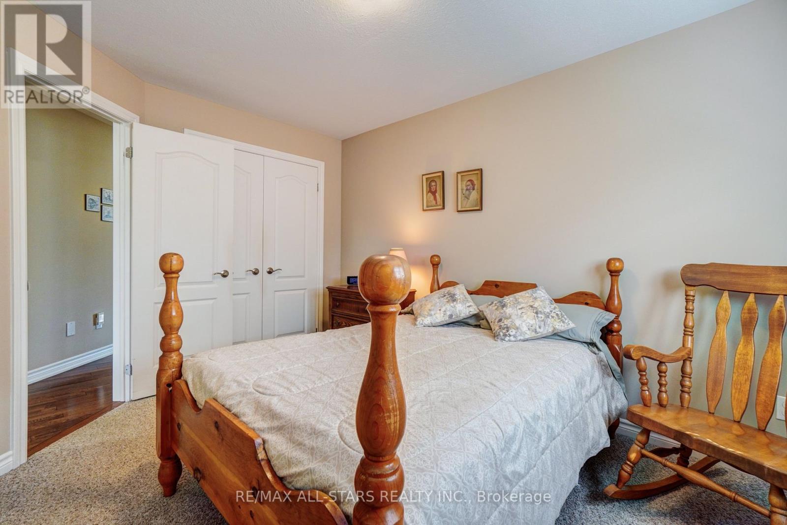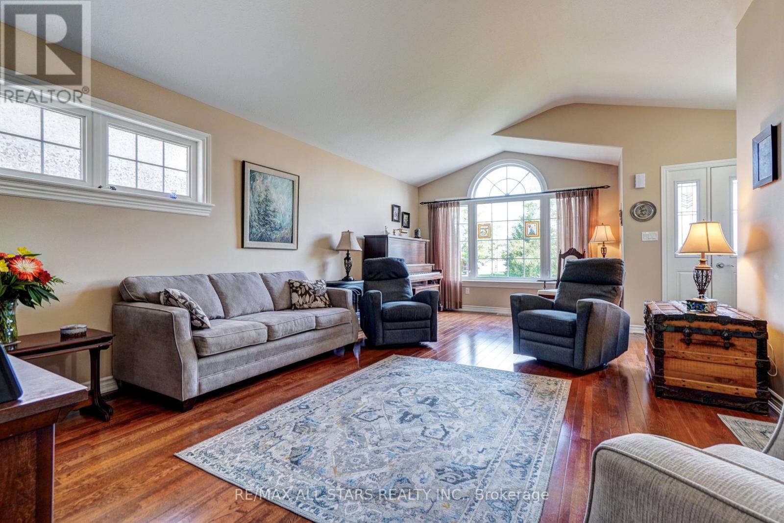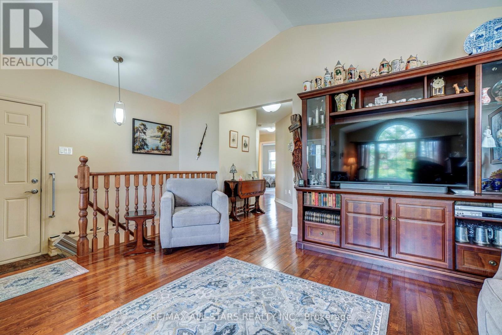 Excellent, well-built, all-brick 2 bed, 2 bath bungalow (plus a lower level bed/office/den) and main floor laundry, Ensuite bathroom and gleaming hardwood floors under cathedral ceilings. Eat-in Kitchen with pots & pans drawers & breakfast bar & appliances is highly serviceable and impeccable. Walk-in from oversize single garage to home. Walk-out from the kitchen/dining to Covered back deck & partially fenced backyard. (id:61423)