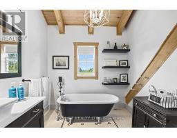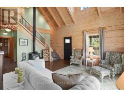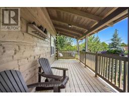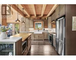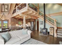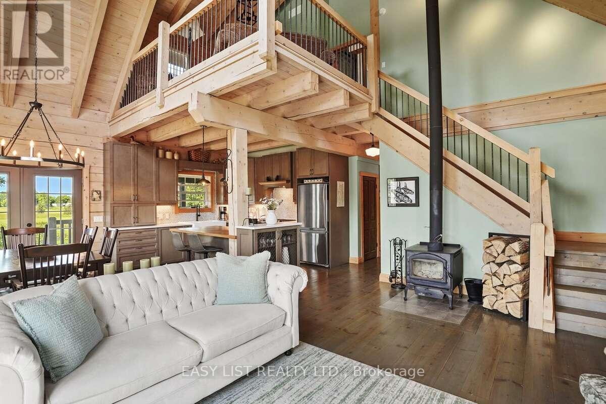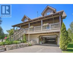 For more information please click the Brochure button below. Welcome to this unique and beautifully appointed timber frame home, nestled in a serene cul-de-sac with water access. Spend your evenings enjoying the view of Canal Lake from your front porch swing, or relax in the backyard overlooking the Executive golf course. The newly landscaped yard, complete with a firepit, offers spectacular sunset views. The open concept main floor features a high vaulted ceiling and a charming airtight stove. This space includes a living room, dining area, and a kitchen equipped with high-end stainless steel appliances, quartz countertops, a large island, marble backsplash, and wide solid wood flooring throughout. Two spacious bedrooms and a full bathroom on the main floor provide comfort for family or guests. Upstairs, a cozy open sitting room overlooks the main floor and leads to the primary bedroom, which boasts a large closet and window seats perfect for curling up with a book. The bright ensuite bathroom includes a heritage clawfoot tub. **EXTRAS** The lower level offers additional living space with a laundry area, full bathroom, kitchenette, and garage access. The upgraded landscaping features perennial gardens, a lush lawn, and armour stone garden borders and stairs. (id:61423)