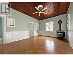 Step into a timeless piece of Lakefield history with this impeccably maintained 1940s residence, proudly held by the same family for nearly five decades. Constructed with rare 10-inch thick walls, this solid, well-built home offers exceptional insulation, quiet comfort, and enduring quality-perfectly blending vintage charm with the flexibility today's families desire. Inside, a welcoming mudroom entry leads into a thoughtfully designed layout ideal for both everyday living and entertaining. The grand dining room is a true showpiece, highlighted by a striking custom walnut ceiling and a cozy propane fireplace-an inviting space for gatherings year-round. The main floor offers versatility with a primary bedroom and an additional room ideal for a nursery, guest space, or home office. Upstairs, you'll find three more bedrooms with generous eave storage, including a rare upper-level ensuite-an uncommon feature for homes of this era. Set on an exceptional 200+ foot deep lot, the outdoor space offers endless potential-whether you envision lush gardens, play areas, or even a backyard skating rink. A standout feature is the oversized detached garage complete with a dedicated workshop and separate tool storage, making it an ideal haven for hobbyists, makers, or additional storage needs. Perfectly positioned across from the prestigious Lakefield College School, this home places you in the heart of a vibrant village community. Enjoy walking distance to local shops, artisan bakeries, butchers, gourmet food stores, and seasonal events at the library. Explore nearby Lakefield Locks, scenic trails, and waterfront living-all while being under 10 minutes to Trent University and Peterborough. (id:61423)
