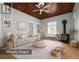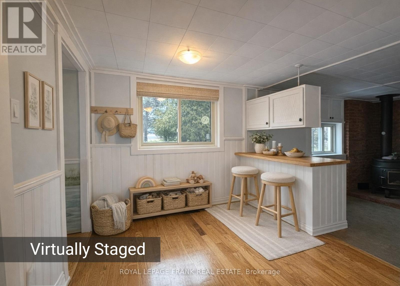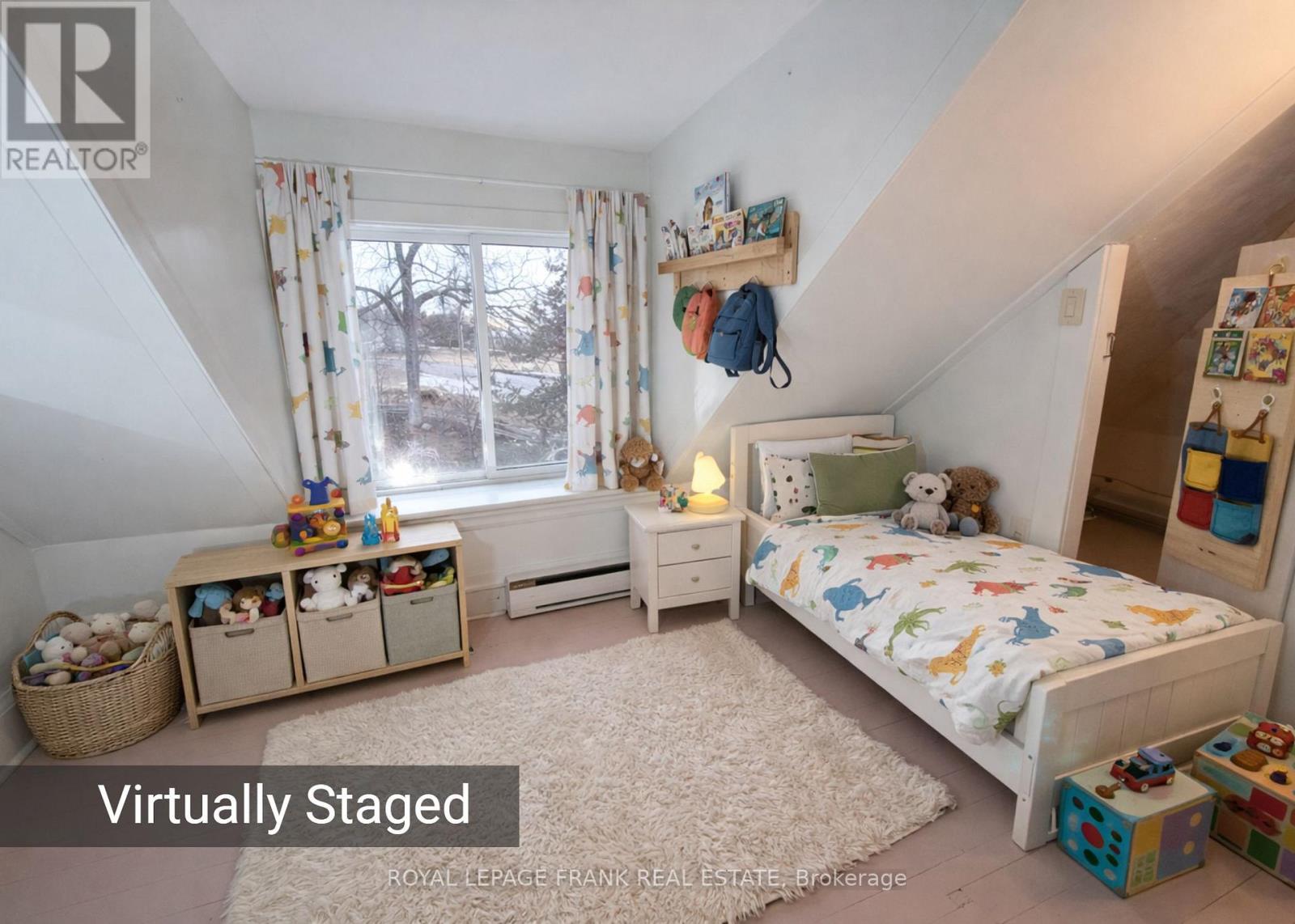 Step into a timeless piece of Lakefield history with this impeccably maintained 1940s residence, proudly held by the same family for nearly five decades. Constructed with rare 10-inch thick walls, this solid, well-built home offers exceptional insulation, quiet comfort, and enduring quality-perfectly blending vintage charm with the flexibility today's families desire. Inside, a welcoming mudroom entry leads into a thoughtfully designed layout ideal for both everyday living and entertaining. The grand dining room is a true showpiece, highlighted by a striking custom walnut ceiling and a cozy propane fireplace-an inviting space for gatherings year-round. The main floor offers versatility with a primary bedroom and an additional room ideal for a nursery, guest space, or home office. Upstairs, you'll find three more bedrooms with generous eave storage, including a rare upper-level ensuite-an uncommon feature for homes of this era. Set on an exceptional 200+ foot deep lot, the outdoor space offers endless potential-whether you envision lush gardens, play areas, or even a backyard skating rink. A standout feature is the oversized detached garage complete with a dedicated workshop and separate tool storage, making it an ideal haven for hobbyists, makers, or additional storage needs. Perfectly positioned across from the prestigious Lakefield College School, this home places you in the heart of a vibrant village community. Enjoy walking distance to local shops, artisan bakeries, butchers, gourmet food stores, and seasonal events at the library. Explore nearby Lakefield Locks, scenic trails, and waterfront living-all while being under 10 minutes to Trent University and Peterborough. (id:61423)