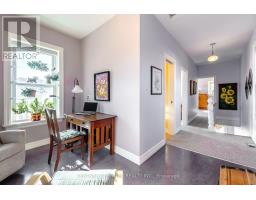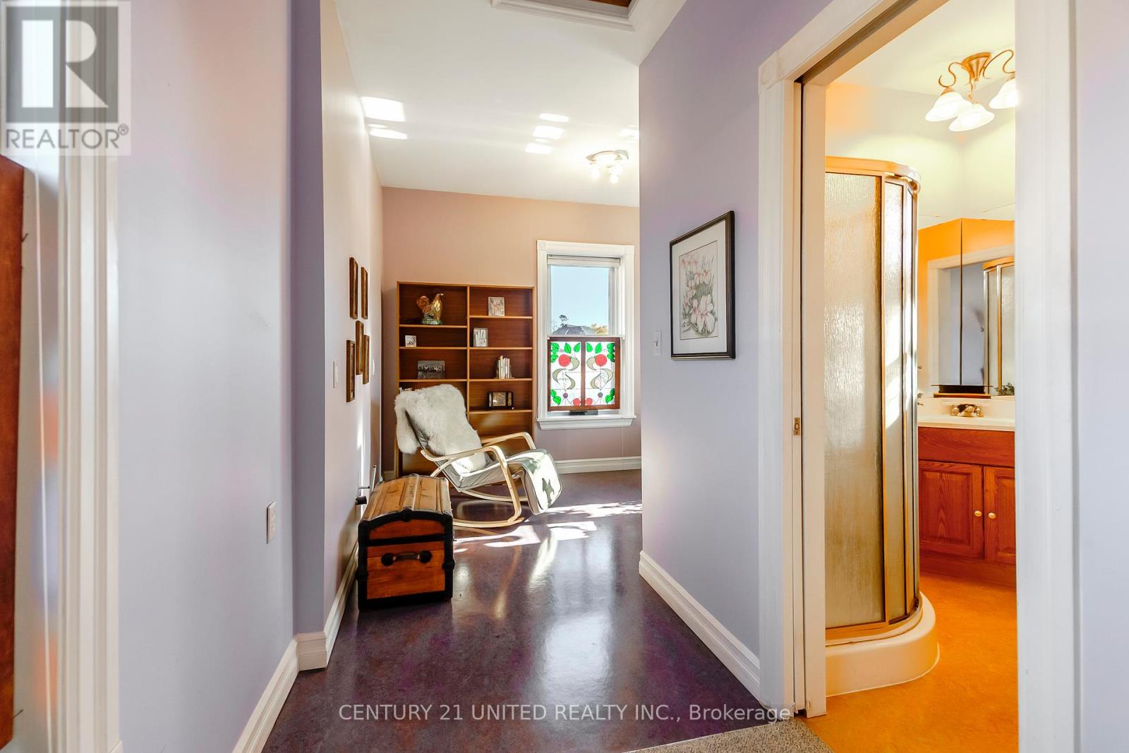 Charming East City Home with Flexible Living Options. This beautiful two-storey Century home is perfectly situated in Peterborough's desirable East City and just a short walk to shops, restaurants, parks, tennis courts, the Otonabee River & Little Lake. Full of charm and character, this home offers the flexibility to suit your lifestyle. Once used as a duplex with a separate entrance for the upper level and a side entrance to the main floor, the property has been reinstated into a spacious single-family home, but could easily be converted back with the existing hookups for a second kitchen on the upper level still in place, making this home an ideal setup for multigenerational living or an income opportunity. The main floor features a cozy living room and dining room with beautiful windows, a bright kitchen with a walkout to a covered patio, a family room with a gas fireplace, 2 skylights and wood beams, plus a 4 piece bathroom. If converting to a duplex, the family room could be used as a bedroom. Upstairs you'll find a large primary bedroom with a huge closet and beautiful windows, a 2nd bedroom with its own balcony, a 3 piece bathroom and a flex space that could be used as another bedroom, an office, or converted back to a kitchen. The home sits on a deep lot of almost 200 feet and is a gardener's dream with lovely perennials and lush greenery that provide a peaceful, picturesque setting that can be enjoyed from every angle of the property. There's also a calming water feature. And with no grass to cut, you can spend more time enjoying the beauty of your surroundings. Additional features include a detached single-car garage with a hobby shop at the back, parking for 4 cars in the driveway and a fully fenced yard. Whether you're looking for a unique family home, an investment property, or a combination of both, this East City gem offers exceptional potential in one of Peterborough's most sought-after neighbourhoods. (id:61423)