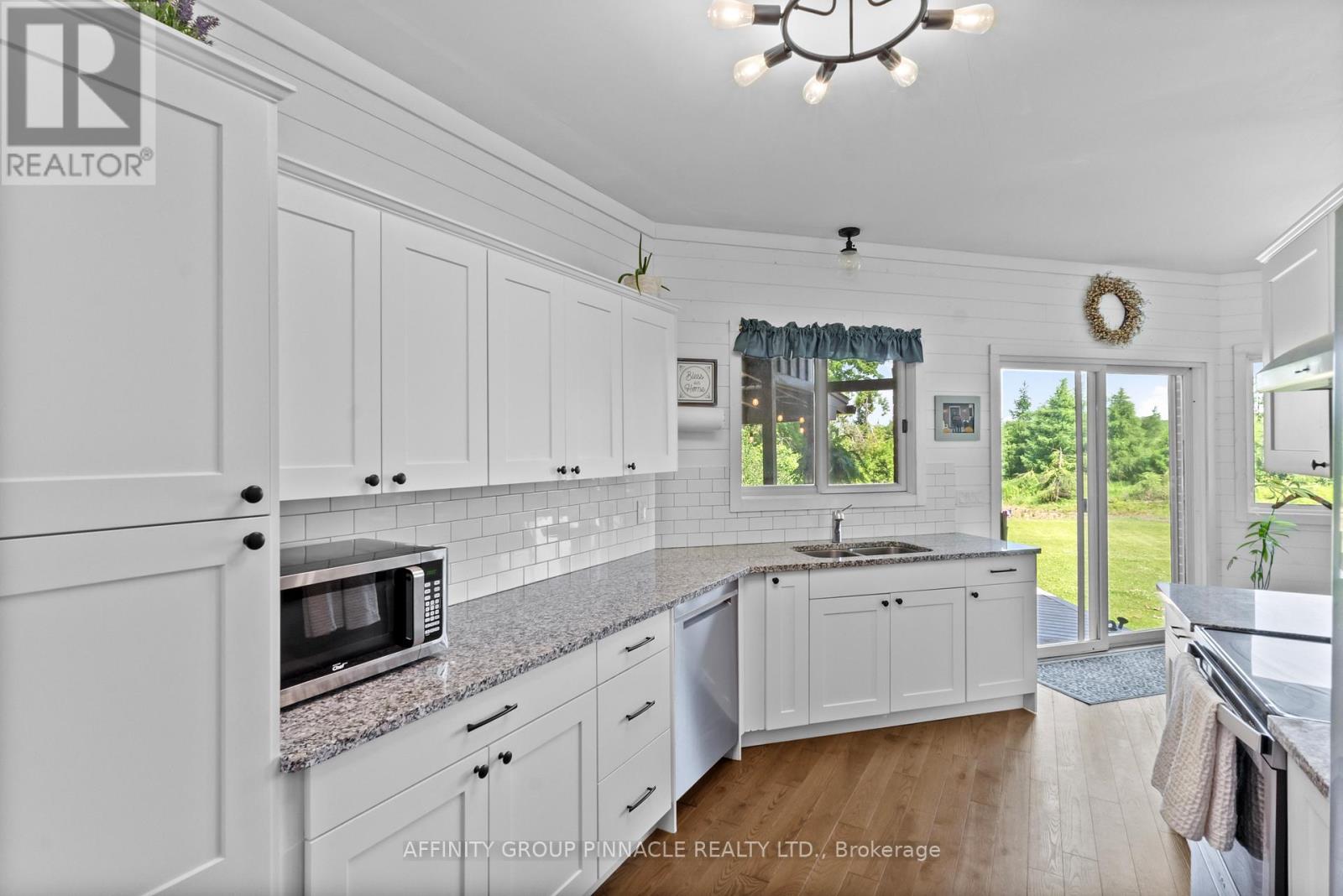 Welcome to 46 Lily Lake Road. Fall in love with this gorgeous 3 bedroom, 3 bath all brick bungalow on a beautiful country lot. Kick off your shoes and sit back in the bright and spacious modern living room with solid ash hardwood flooring, built in cabinets and fireplace insert. Slide on over to the updated kitchen with white shaker cupboards, granite countertops and walkout to a private covered porch that overlooks the large backyard and greenspace landscape. The main level also features a separate dining area and boasts a huge primary bedroom suite with ensuite bath and walk in closet. Not to be out done, the lower level features two additional bedrooms plus exercise room (potential 4th bedroom), stunning recreation room with fireplace and dry bar, along with a modern 3 piece bath. Attached heated garage, recently shingled and sided work shed plus second entrance to yard. Plenty of place to park your vehicles and toys. Conveniently located just 10 minutes from shopping, groceries, and Peterborough amenities, with easy highway access for commuting. (id:61423)