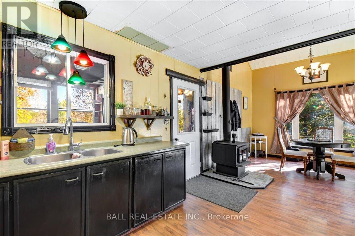 Welcome to 463 Quarry Road. Located just 6 km from Bancroft on 1.64 private acres with an impressive 550 feet of road frontage, this property offers exceptional privacy - you can't see a single neighbour. The home features a durable brick and vinyl exterior with a new metal roof installed in 2021, plus multiple outbuildings for storage or hobbies. Step inside to soaring vaulted ceilings that fill the living space with natural light. The main features a spacious primary bedroom, open concept living space and a 3 pc bathroom complete with a clawfoot tub. Upstairs, you'll find two additional bedrooms and the bathroom featuring a large Jacuzzi tub and a cozy loft area overlooking the living and dining rooms below. The lower level includes a recroom, utility space, laundry area and a workout room - offering tons of functional storage and living options. Modern comforts include a propane furnace, central air conditioning and a freestanding woodstove for those cozy winter nights. Enjoy the peaceful setting surrounded by nature, with apple, pear and cherry trees, plus raspberries, blueberries, and abundant wildlife right at your doorstep. High speed internet and full cell reception keep you connected while you enjoy total tranquility. Just minutes from Bancroft's amenities and surrounded by lakes and trails. 463 Quarry Road is the perfect blend of comfort, privacy and country charm. Available for a quick closing - all furnishings negotiable. (id:61423)