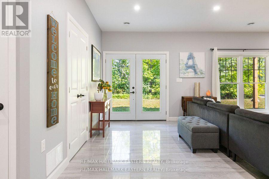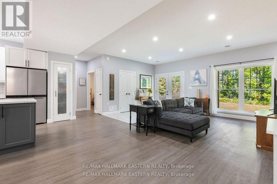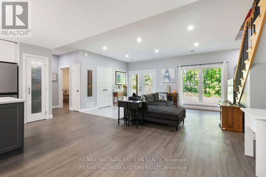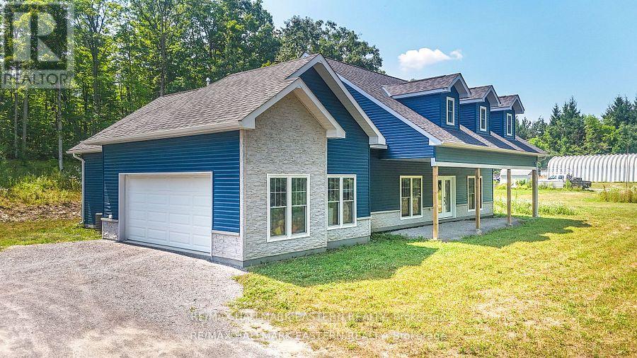 Custom-Built Country Retreat on Nearly an Acre. Welcome to this beautifully designed 3-bedroom, 2-bathroom custom home, set on a private, tree-lined lot just under an acre in size. Built in 2023 and located on a quiet paved municipal road with only six other homes, this property offers the perfect blend of modern comfort and peaceful country living less than 15 minutes north of Havelock and 45 minutes to Peterborough. With 2,429 sq ft of finished living space and 36 doorways throughout for enhanced accessibility, this thoughtfully laid-out home features an open-concept main floor with a chef-inspired kitchen, spacious living and dining areas, and walkouts to a covered front porch and serene backyard. The primary suite includes private access to the rear yard, a luxurious 5-piece ensuite with a soaker tub and glass shower, and a large walk-in closet. Two additional bedrooms and a full 4-piece bath complete the main level. Upstairs, over 800 sq ft of finished bonus space is currently set up as a games and entertainment room ideal for a home office, additional bedrooms, or an in-law suite, with plumbing already roughed in. Additional highlights include a fully insulated attached 2-car garage with propane hook-up, GenerLink hookup at the hydro meter, and radiant in-floor heating (system in place but not currently in use). Just minutes from public beaches and boat launches on Oak, Kosh, and Twin Lakes. This is your opportunity to own a move-in-ready, custom home surrounded by nature. Book your private showing today! (id:61423)
