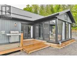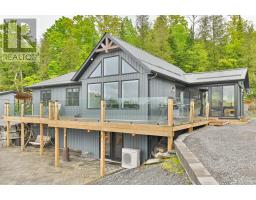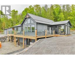 Escape to your own private retreat! Whether you're seeking peace and quiet with a waterfront view or the perfect place to host unforgettable gatherings filled with ATV and snowmobile adventures, this exceptional turn-key, off-grid property truly offers the best of both worlds. Set on 50 acres in a stunning natural landscape, and located near the Heritage Trail between Madoc and Bancroft, this property is accessed via a seasonal road and a long private driveway that leads to a breathtaking setting overlooking your own private lake, stocked with rainbow trout. The six year-old home features a thoughtfully designed main level with three bedrooms, two bathrooms, and a bright open-concept kitchen and living area. Large windows frame picturesque lake views and provide direct access to a full-length deck with sleek glass railings, as well as a charming three-season sunroom-perfect for relaxing or entertaining. The fully usable lower level includes a bar, a partially finished recreation area, and a walkout to an expansive interlocking stone patio. Here, you'll find a firepit and a wood-fired hot tub right at the water's edge, ideal for unwinding under the stars. Designed for self-sufficiency, the home is powered by an 11 kW diesel generator and features two propane fireplaces along with a heat pump providing both heating and air conditioning. A detached 24' x 20' garage with a wood stove, plus a 12-foot lean-to, offers ample storage for all your recreational equipment. Outdoor enthusiasts will love the endless opportunities for adventure, with abundant wildlife-including deer and moose-right at your doorstep, and numerous nearby lakes just a short drive away. Abutting 100's of acres of Conservation land, your privacy is guaranteed. This is a rare opportunity to own a truly special property, don't miss your chance. (id:61423)