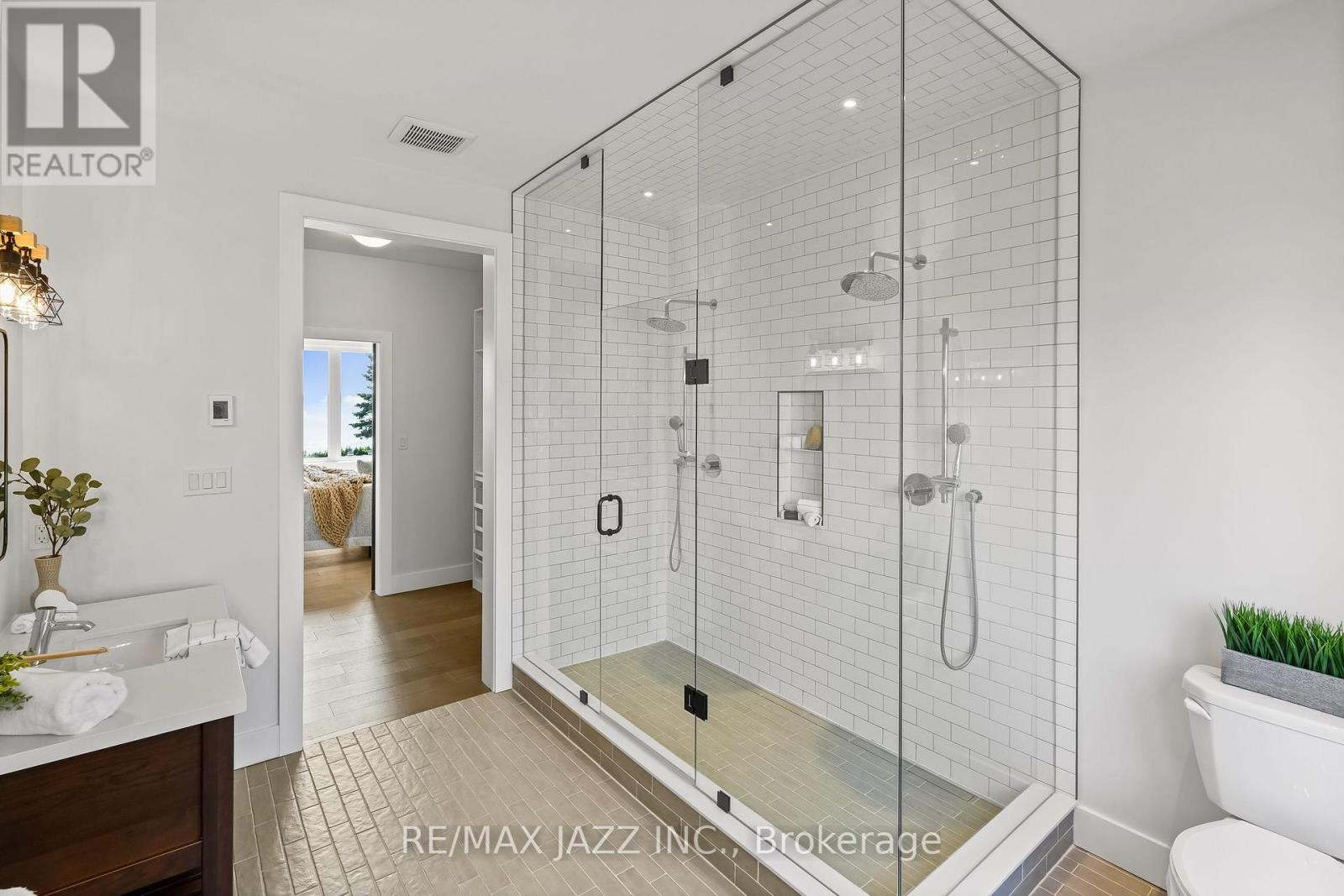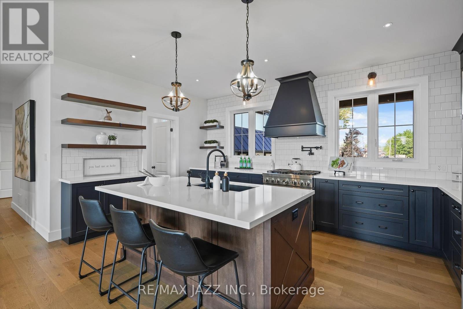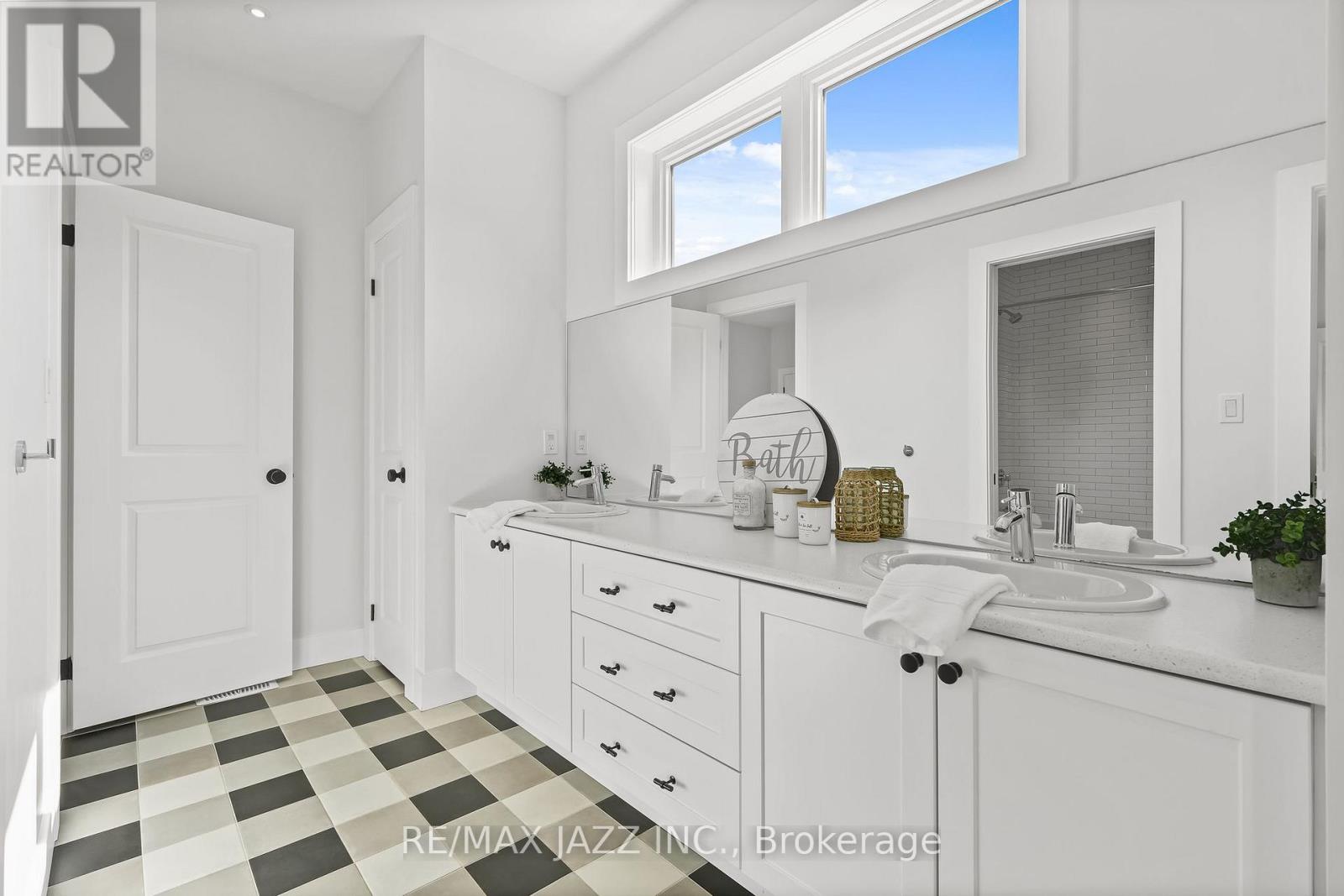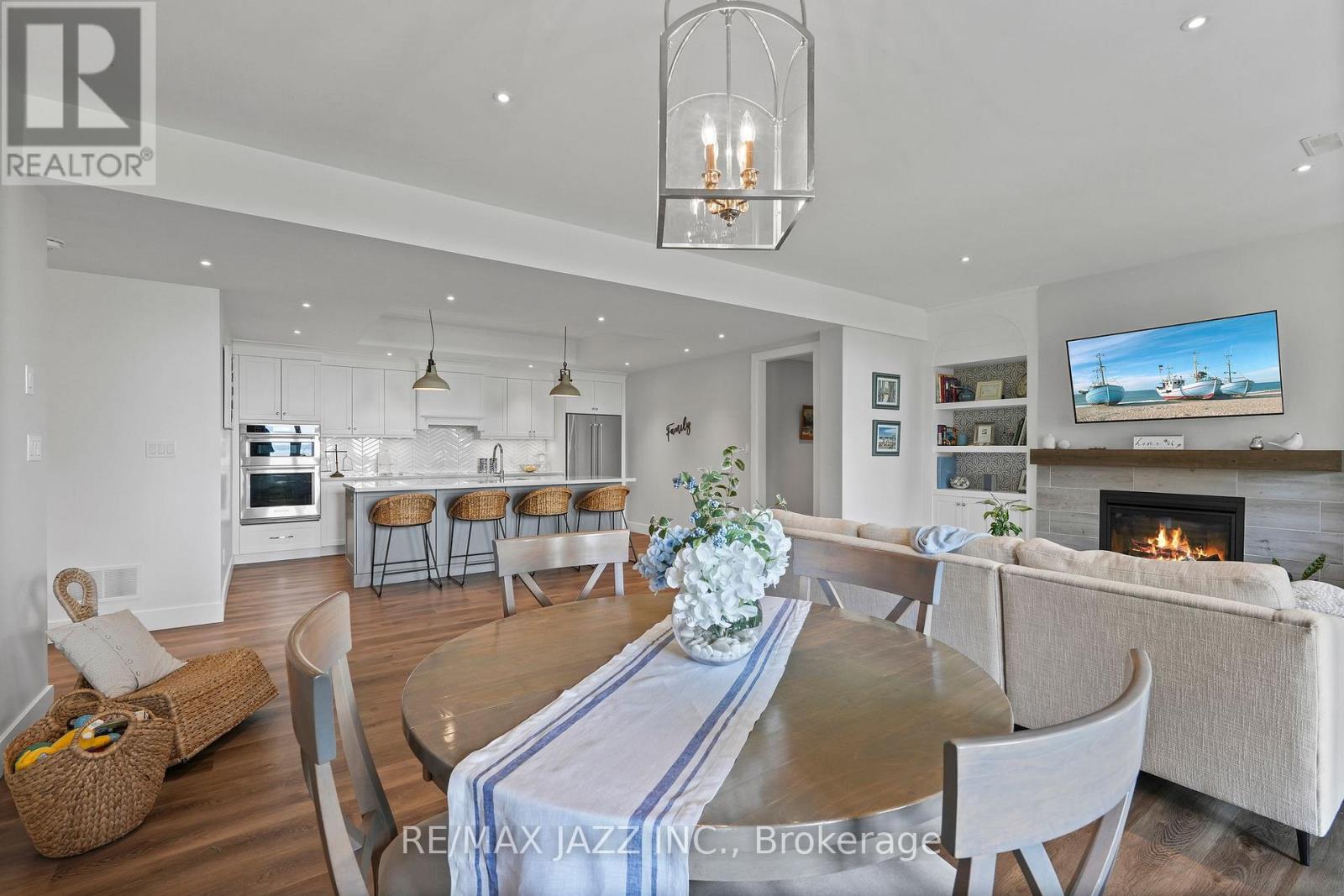 Experience exceptional lakeside living in this stunning Jeffery-built home on a 89 x 376 ft lot with serene, south-facing views of Lake Scugog. From the moment you enter through the oversized front door, the quality and craftsmanship are undeniable. The open-concept main living space impresses with hardwood floors, soaring cathedral ceilings and full-height stone fireplace. Oversized windows and double French doors fill the space with natural light and open to a covered deck with sweeping water views. The kitchen is a chef's dream, with oversized centre island, 36" dual-fuel range, custom hood vent, pot filler, undercabinet lighting and walk-in pantry. Perfect for everyday living and entertaining. The private primary suite offers tranquil lake views, custom walk-through closet and gorgeous 5-pc ensuite with heated floors, double vanity and glass shower with dual shower heads. A separate wing includes two spacious bedrooms with double closets and shared Jack-and-Jill bath. Massive main floor laundry with extra cabinetry and double closets provides direct access to the impressive 900 sq ft garage with epoxy floors, soaring ceilings and separate staircase to the lower level. A stylish 2-pc powder room completes the main floor. Hidden behind a custom bookshelf, a 900 sq ft loft offers the ultimate bonus space. Complete with projector, screen and durable flooring, this fabulous space is an entertainer's dream. The fully finished basement features a second kitchen, open-concept living space with fireplace and walk-out to a sunken covered patio, additional primary suite with walk-in closet and 3-pc ensuite, second bedroom and another 3-pc bath. A second laundry room and ample storage complete this level. Outside, you'll find an incredible multi-purpose pavilion with French doors and sliding walk-out on the lake side; it's ideal as a party/games room, cabana, or simply as extra storage for your toys. This extraordinary home showcases luxury living at its finest! (id:61423)