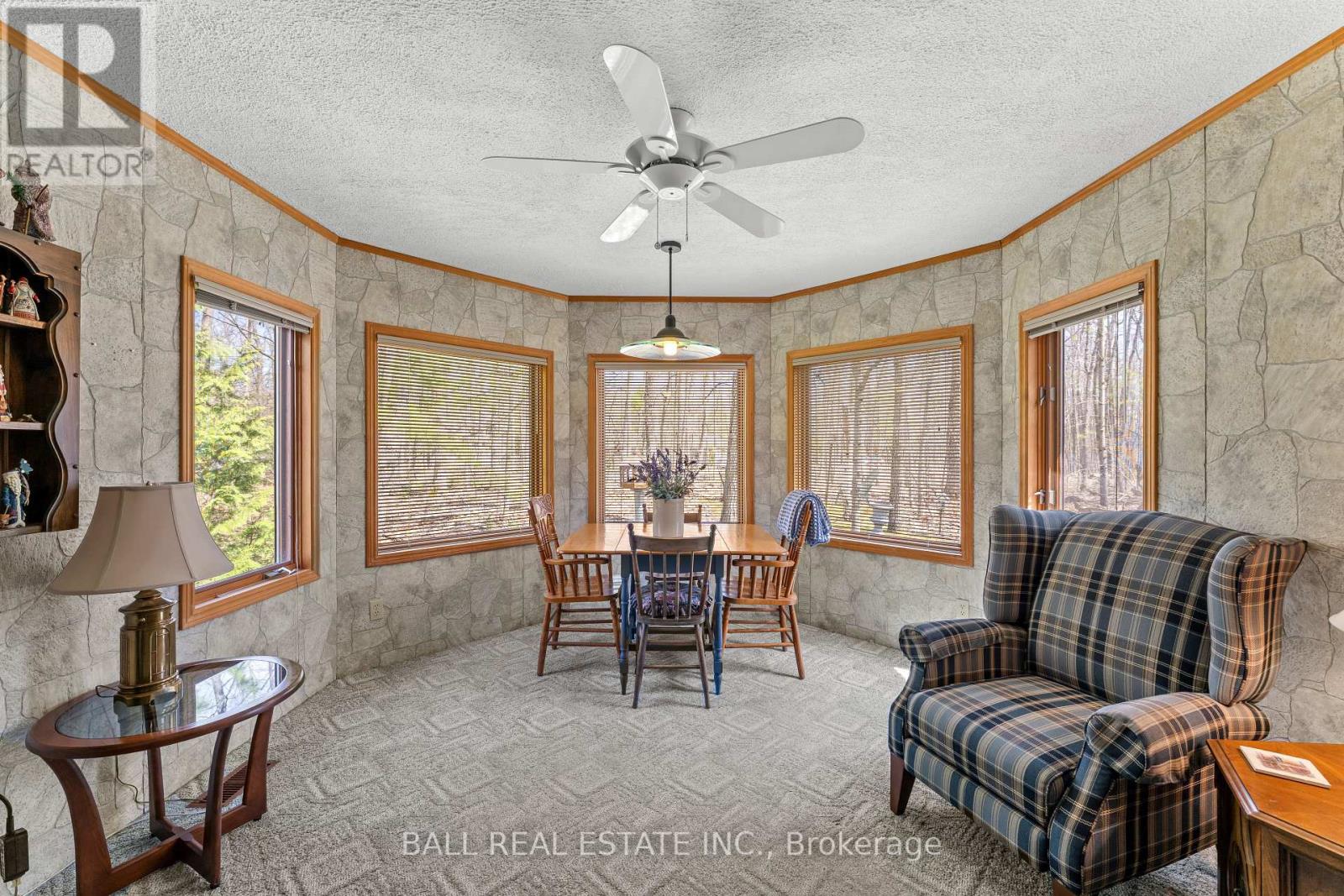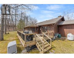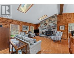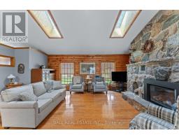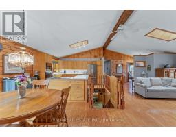 Welcome to 48 Stanley Drive, a charming 1988 Confederation log home set on a beautifully level 1.2-acre lot, perfectly just steps from Eganridge Resort, Golf Club & Spa. This warm and inviting bungalow offers the ideal blend of cottage-country character and everyday comfort, all within minutes of Bobcaygeon and Fenelon Falls. Step inside to a welcoming foyer with a convenient office space, leading into the heart of the home - an open concept kitchen, living, and dining area with vaulted ceilings and skylights that fill the space with natural light. The living room is anchored by a granite propane fireplace, while the dining area offers seamless access to the rear deck for easy indoor-outdoor living. The spacious kitchen provides ample counter space. The thoughtfully designed layout features a private primary suite with an updated 3-piece bathroom complete with heated floors and closet space. A second bedroom and full 4-piece bathroom are located across the hall, while a third bedroom or den at the opposite end of the home, featuring large windows and its own closet. Downstairs, the expansive rec room offers incredible potential for additional living space with a convenient 2-piece bathroom. The lower level also includes a large laundry and storage area with water treatment system & hot water tank, plus an additional oversized storage room with a walk-up to the attached double car garage, where you'll find a newer furnace and workshop space. Outside, the property continues to impress with a paved driveway, attached 2-car garage, detached single garage, and a garden shed. Recent updates include a newer Generac system & shingle roof, offering peace of mind for years to come. This home is perfectly situated for enjoying everything the Kawarthas has to offer. With nearby water access to Sturgeon Lake and golf, dining, and spa amenities just down the street, this is a lifestyle opportunity you won't want to miss. (id:61423)
