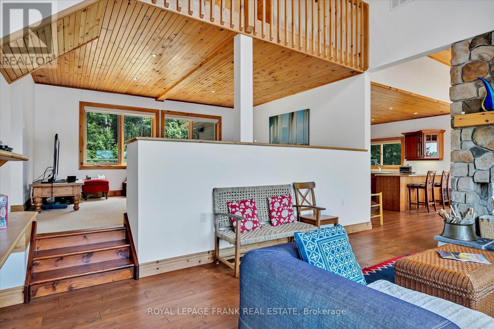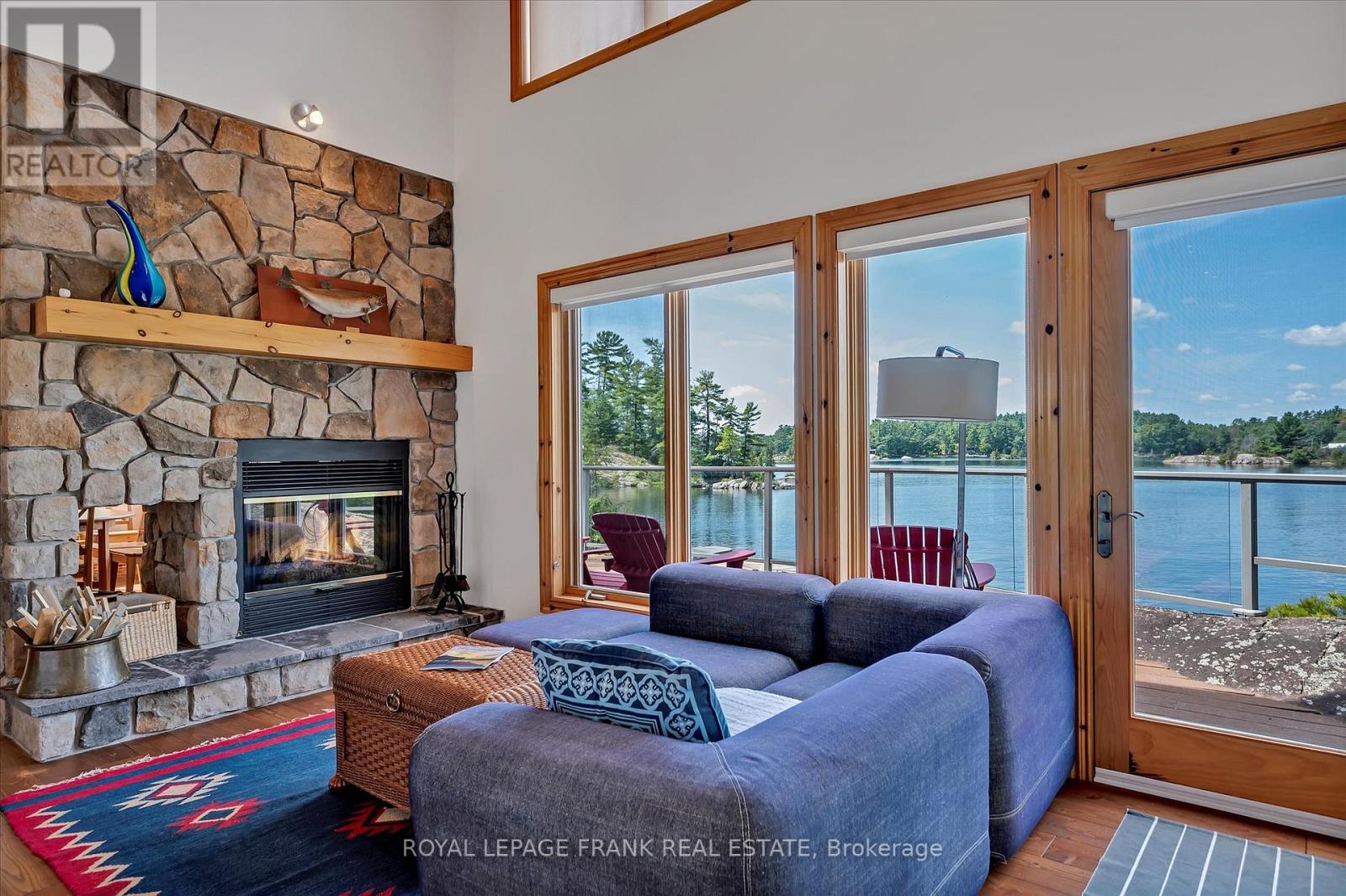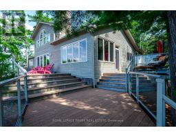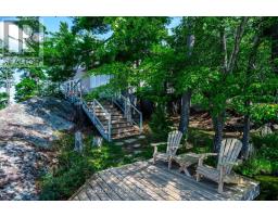 Lower Stoney Lake. Perched on a magnificent pink granite outcropping close to the water on Juniper Island's tranquil shores, this beautifully appointed 3 season cottage offers the best of lakeside living. Spectacular property, 11.4 ac & 1,400+' shoreline -- total privacy with long, uncompromised open lake & island views offering incredible sunsets. Wander through mature forest & follow trails that wind throughout. This turnkey 4 bedroom, 2 bathroom cottage brings the outside in -- large windows, vaulted ceilings & large decks offering a spacious retreat for relaxing & entertaining. Two sided wood burning fireplace adds warmth & charm. Extensive dock system allows you to enjoy prime deep water swimming. Close to Stony Lake Yacht & Tennis Club, pavilion & seasonal general store offering activities for the entire family. Embrace the opportunity to call this retreat your own & experience the magic of life on Stoney lake. Short boat ride from mainland parking. Click "More Photos", below, for virtual tour, additional photos and more. (id:61423)
