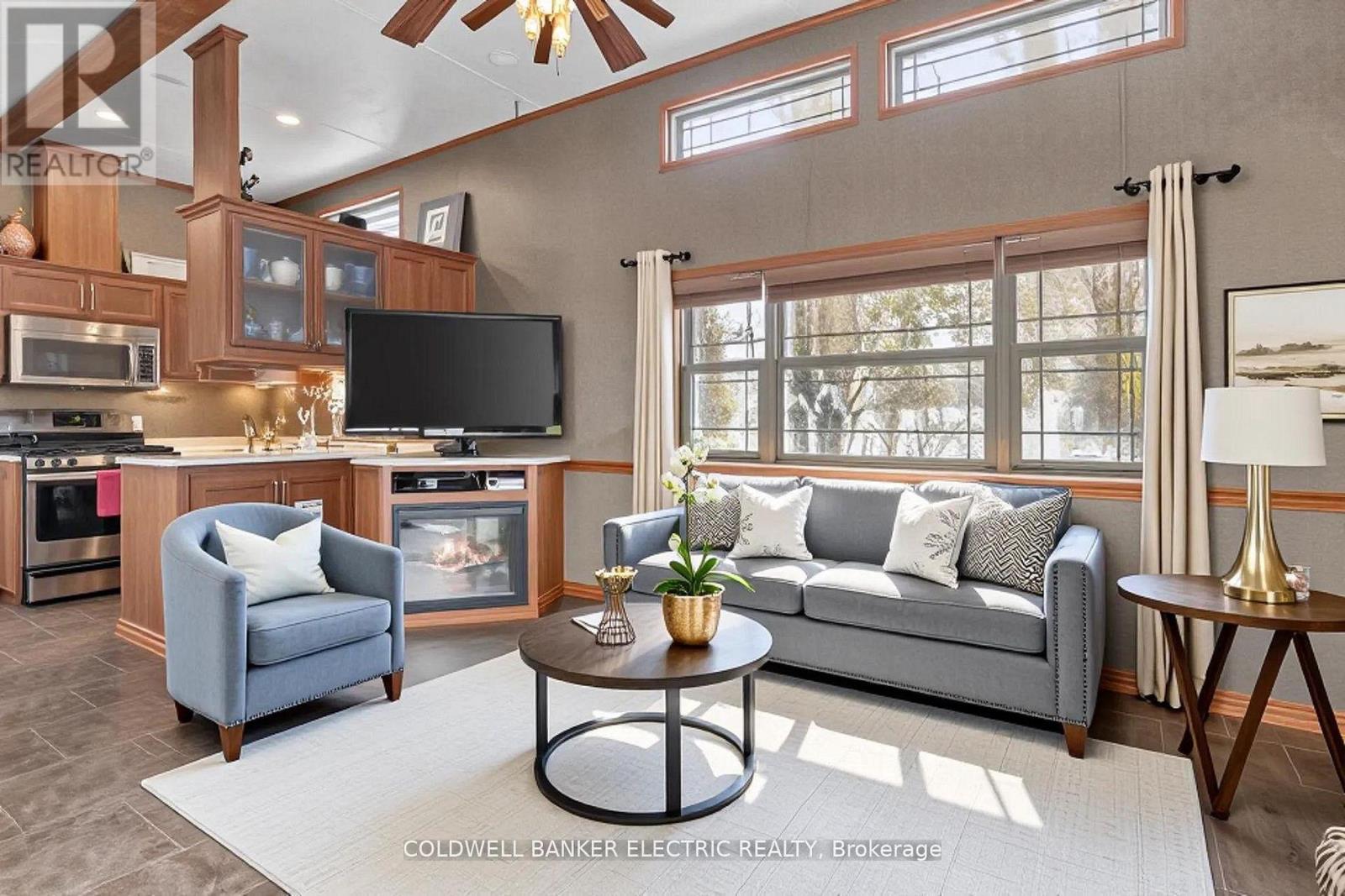 Welcome to your slice of paradise near Rice Lake, perfect for adult living, year-round comfort, or a peaceful weekend escape. This charming 2-bedroom, 1-bath mobile home offers unbeatable value with low land-lease fees of just $530 per month. Thoughtfully designed and full of cozy character, the open-concept layout blends the living, dining, and kitchen areas into a warm, welcoming space, complemented by an electric fireplace that brings added warmth and charm. The primary bedroom is a snug retreat, while the second bedroom features built-in bunk beds, perfect for guests. You'll love the light-filled 3-piece bathroom, featuring a skylight, space-saving pocket doors, and a tucked-away washer/dryer combo for added convenience. Stay comfortable year-round with forced-air propane heating and central air conditioning. Step outside onto your deck and take in the postcard-worthy sunsets over Rice Lake. The fully fenced yard offers privacy, ample space for pets or gardening, and the nearby boat launch means you're just moments away from fishing, boating, or paddling. Only 20 minutes to Port Hope, Cobourg, or Peterborough, this home strikes the perfect balance between nature and convenience. Whether you're downsizing, investing, or searching for a year-round retreat, this one checks all the boxes - affordable, low-maintenance, and breathtaking. (id:61423)