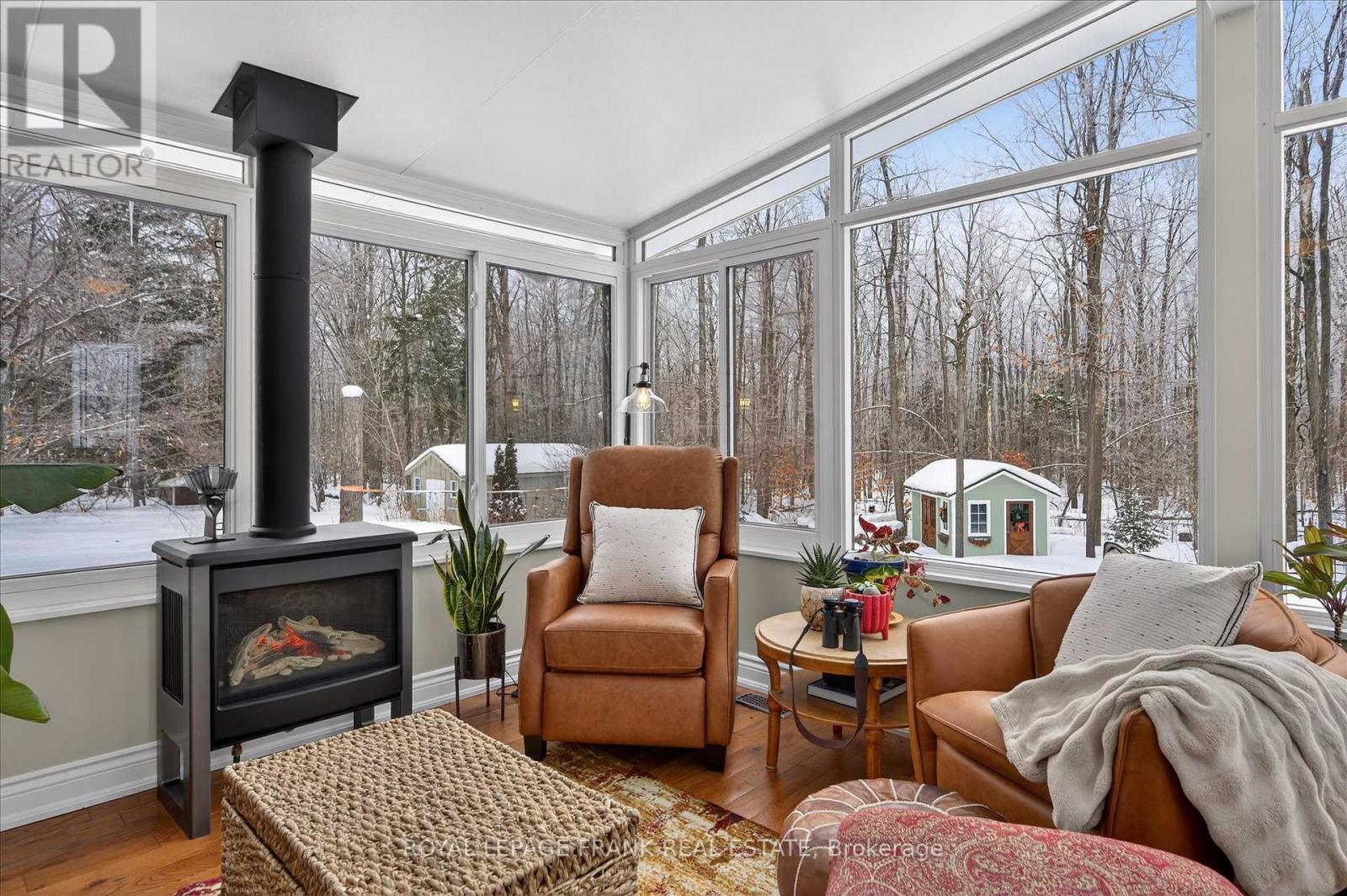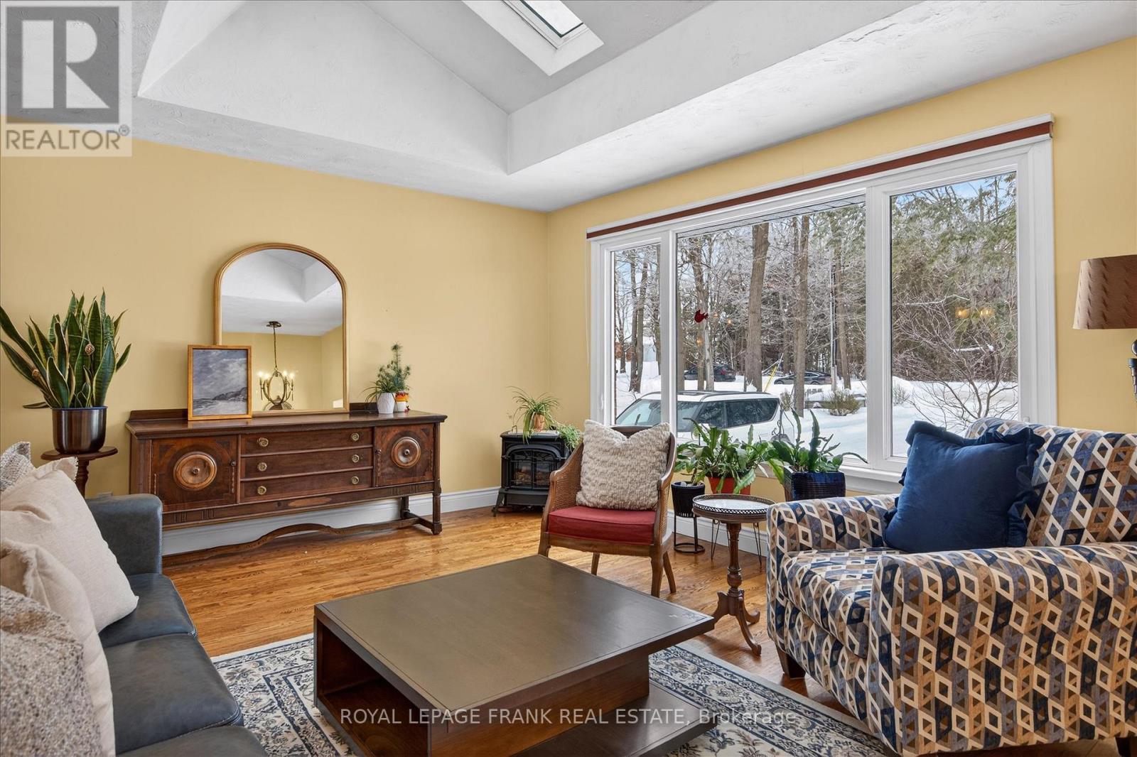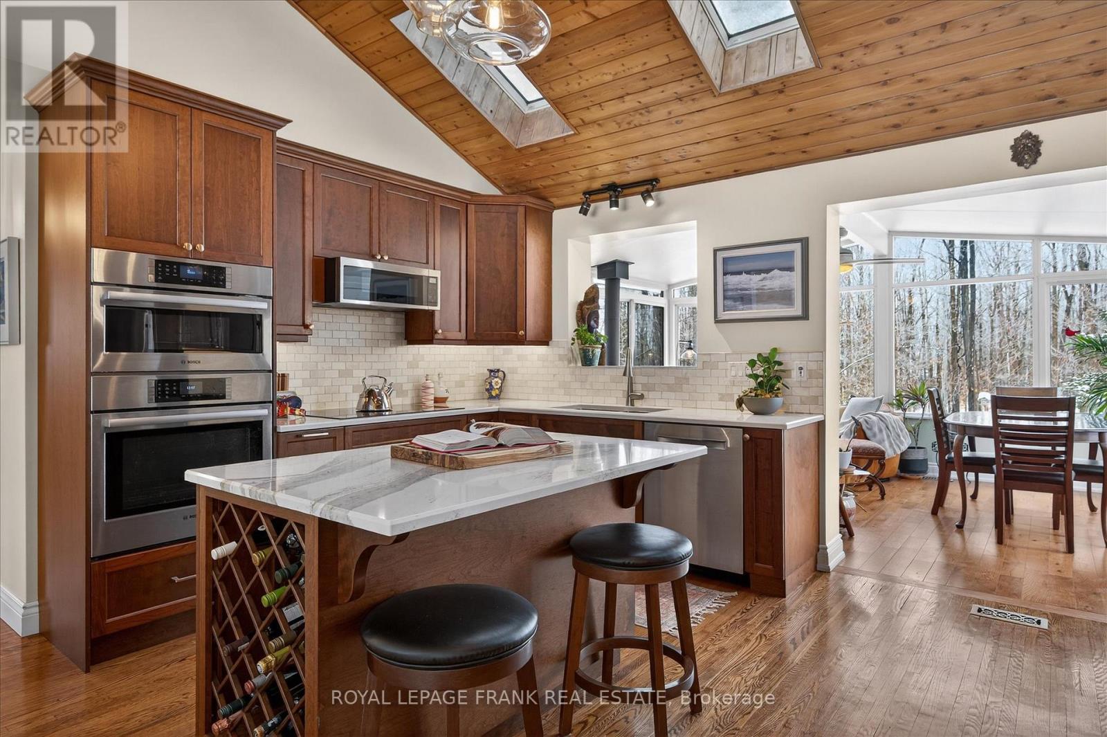 Welcome to 494 5th Line Road in Selwyn, a beautifully maintained 3-bedroom, 2-bath bungalow set on just over half an acre in one of the area's most sought-after locations, only 10 minutes from downtown Peterborough and a short 2-minute walk to public access on Chemong Lake. The main floor features vaulted ceilings and hardwood throughout, creating a bright and open living space. The custom kitchen is designed for both everyday living and entertaining, offering a cooktop, double wall ovens, island with seating, and seamless flow into the living areas. Two gas fireplaces add warmth and character on the main level, while a wood-burning fireplace anchors the finished basement. A four-season sunroom with French doors opens to the backyard, leading to Trex decking and a dedicated BBQ area. The walkout basement offers excellent additional living space with a spacious family room, full bathroom, laundry room with separate walkout, ample storage, and a workshop area. Outside, enjoy a private backyard oasis featuring a pool, beautifully landscaped gardens, and multiple poolside areas perfect for relaxing or entertaining. A two-vehicle garage completes this exceptional home, offering comfort, outdoor living, and an unbeatable location near the lake. (id:61423)