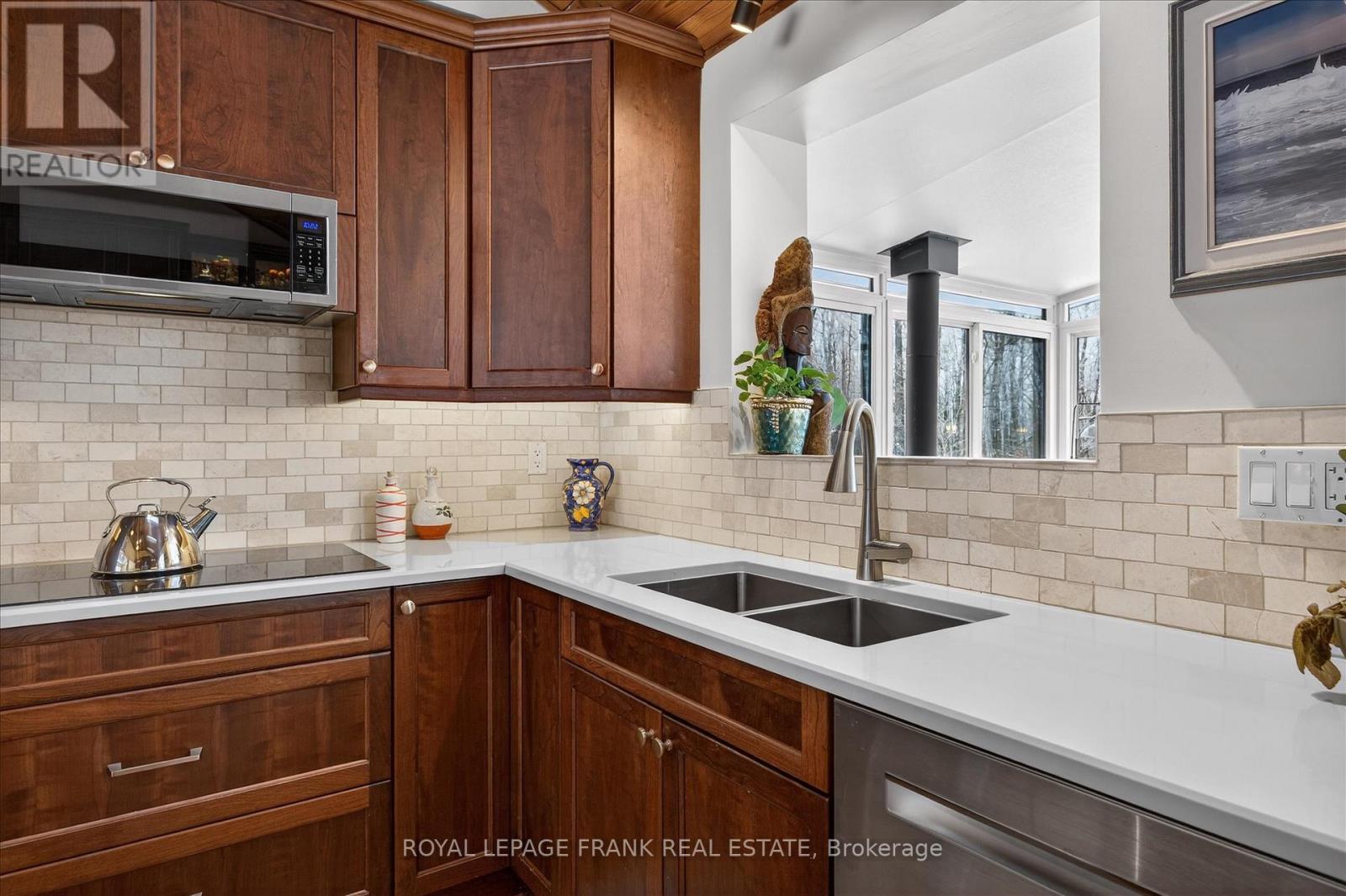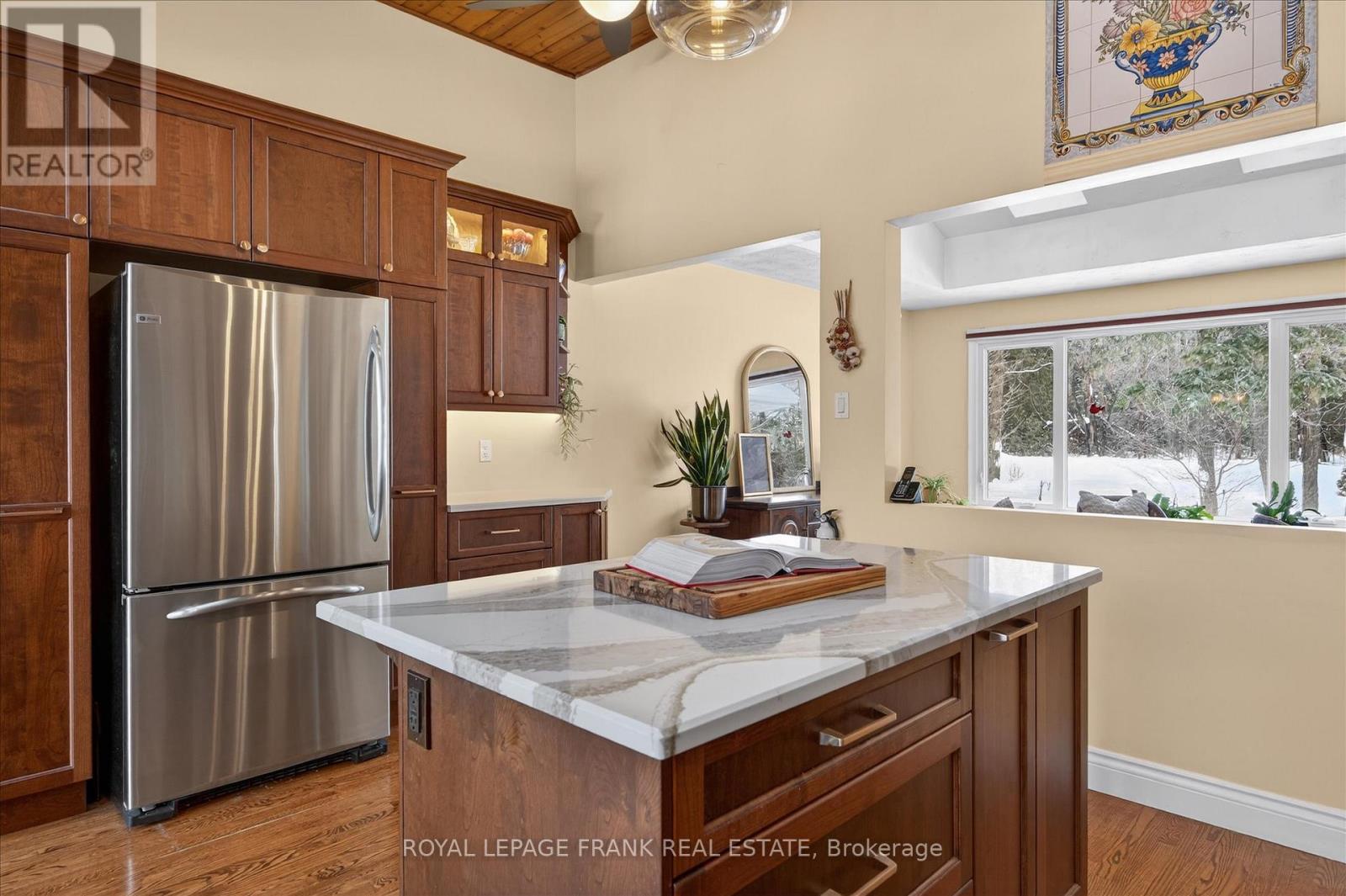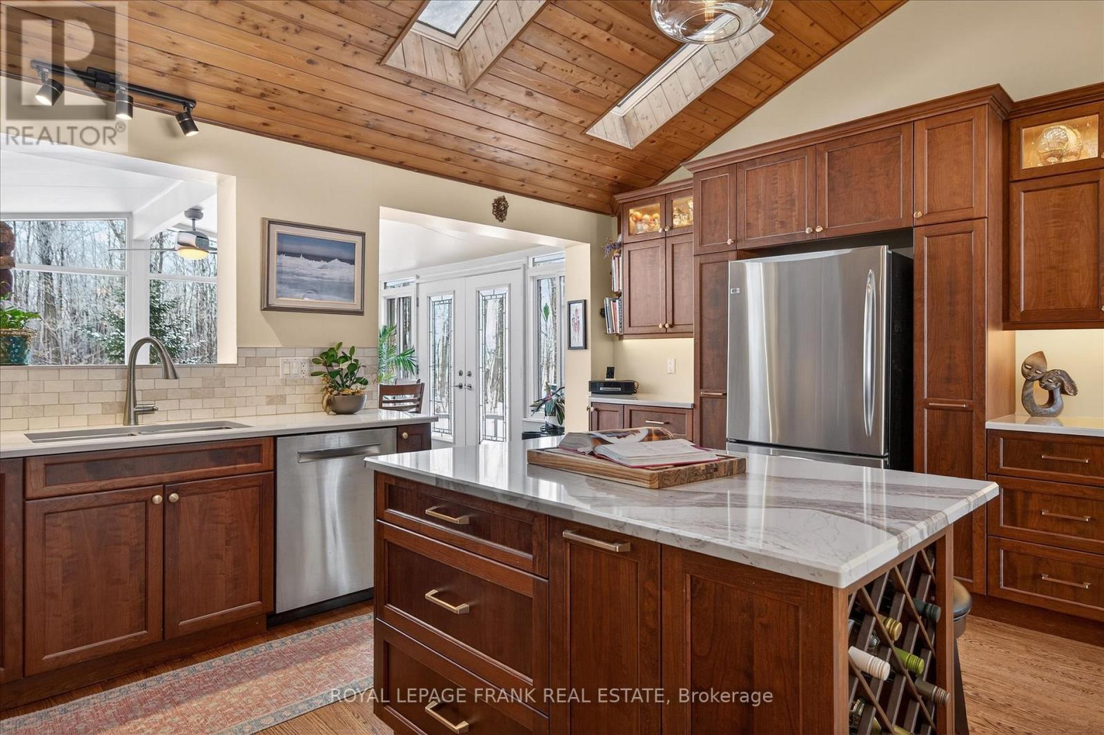 Welcome to 494 5th Line Road in Selwyn, a beautifully maintained 3-bedroom, 2-bath bungalow set on just over half an acre in one of the area's most sought-after locations, only 10 minutes from downtown Peterborough and a short 2-minute walk to public access on Chemong Lake. The main floor features vaulted ceilings and hardwood throughout, creating a bright and open living space. The custom kitchen is designed for both everyday living and entertaining, offering a cooktop, double wall ovens, island with seating, and seamless flow into the living areas. Two gas fireplaces add warmth and character on the main level, while a wood-burning fireplace anchors the finished basement. A four-season sunroom with French doors opens to the backyard, leading to Trex decking and a dedicated BBQ area. The walkout basement offers excellent additional living space with a spacious family room, full bathroom, laundry room with separate walkout, ample storage, and a workshop area. Outside, enjoy a private backyard oasis featuring a pool, beautifully landscaped gardens, and multiple poolside areas perfect for relaxing or entertaining. A two-vehicle garage completes this exceptional home, offering comfort, outdoor living, and an unbeatable location near the lake. (id:61423)