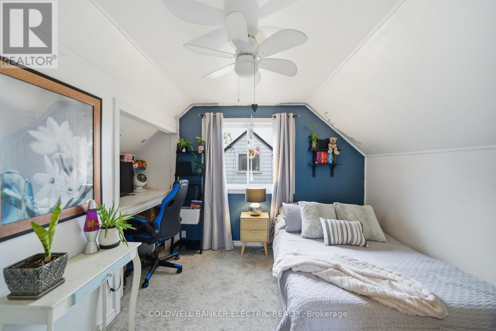 Welcome to this charming 1 1/2 storey detached home - the perfect starter for those seeking comfort and space.With a total of 4 bedrooms and 2 bathrooms, this home offers a flexible layout ideal for a growing family. The updated main floor serves as the heart of the home, where daily meals and cherished family moments come together. You'll also find a four-piece bathroom and the first of four bedrooms, conveniently located on this level.Upstairs, discover two additional bedrooms-perfect for a nursery, kids' rooms, or your dream primary retreat.The lower level features a spacious bedroom with a three-piece ensuite, a laundry area, and a versatile bonus room ideal for a playroom, office, or den. Outside, enjoy a generous deck, hot tub, and backyard space ready for relaxation or entertaining. With parking for four vehicles, amenities within walking distance this home truly has it all. Just move in and say welcome home! Extras: Newer Windows, Newer Renovated Bathrooms, Furnace and Central Air Approx. 6 years old, and Metal Roof. (id:61423)