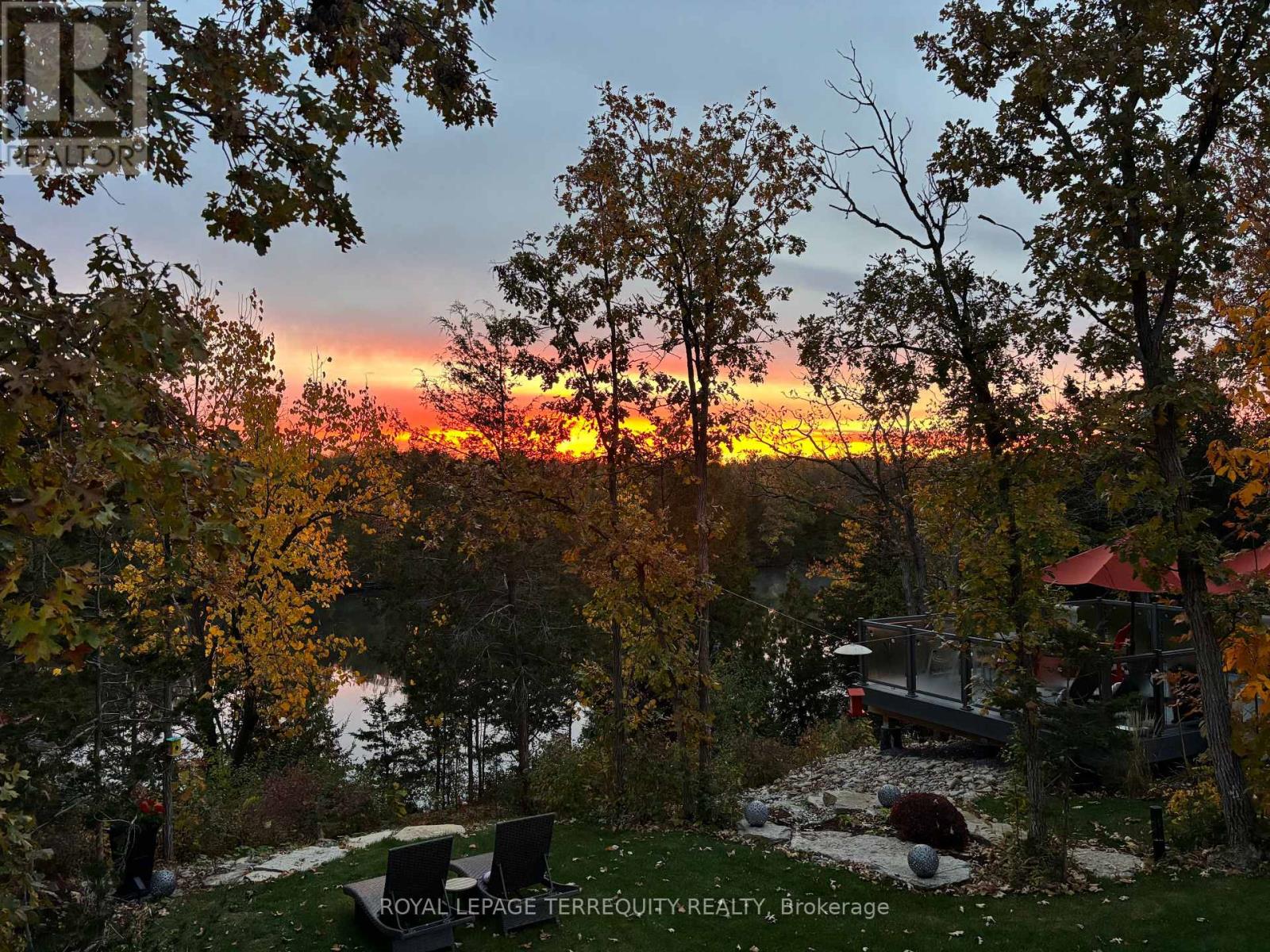 Welcome to Haven on the Trent, where luxury living meets the peaceful rhythm of nature.This stunning board-and-batten bungalow with stone accents is perfectly situated on nearly half an acre of pristine waterfront, offering the perfect blend of modern elegance and natural serenity. Featuring 2 bedrooms, 2 bathrooms, and a den with walkout, this home offers both beauty and flexibility. From the moment you arrive, the timeless curb appeal, stone accents, newly paved driveway, and manicured grounds set the tone for refined country living. Inside, an open-concept layout with soaring ceilings, expansive windows, and 9-foot basement ceilings fills the home with light and showcases breathtaking views of the Trent River from nearly every room. The gourmet kitchen is a showpiece with smart appliances, custom cabinetry, and a large island perfect for family gatherings and entertaining. The living area opens to two spacious decks with natural gas lines for barbecues, creating the ultimate indoor-outdoor flow. The primary suite is your private retreat with a spa-inspired ensuite, elegant fixtures, and serene river views. Outside, enjoy direct access to the water where you can canoe, kayak, paddleboard, or fish from your own backyard. With town services, high-speed internet, smart home security, and a new power grid community, every modern convenience is here. Surrounded by nature and lifestyle amenities, you're within walking distance to hiking trails, the Campbellford Suspension Bridge, Ferris Park, and the new recreation complex, all just 20 minutes from Highway 401. Whether hosting friends on the deck, launching a kayak at sunrise, or relaxing by the water, this property embodies balance, beauty, and quiet sophistication. Experience refined country living at its finest. Live in tranquility at Haven on the Trent. (id:61423)