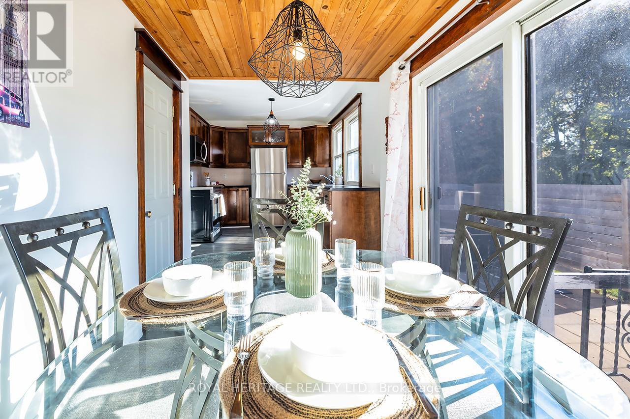 Welcome to 5 Roosevelt Street - a beautifully maintained brick bungalow that blends timeless character with modern comfort. Step inside to a bright, open layout featuring a welcoming living room centered around a cozy gas fireplace, perfect for relaxing evenings. The two bedrooms are generously sized, offering plenty of natural light and storage, while the updated 4-piece bath adds a fresh touch. The kitchen and dining area flow seamlessly together, creating a great space for both everyday meals and entertaining. Walk out from the dining room to your private and spacious backyard - complete with a newer patio, privacy fencing, and a well-maintained garden shed. It's the ideal space for outdoor dining, gardening, or enjoying quiet mornings with a coffee. Downstairs, the partially finished basement provides a blank canvas to expand your living area - whether it's a cozy family room, home office, or gym. It includes a second fireplace, laundry area, rough-in for a sink and toilet, and an upgraded 200-amp electrical service. Thoughtful improvements like newer appliances, a sump pump, and a battery backup system keeping your Wifi active for a few hours to ensure peace of mind during any power interruption. Additional highlights include updated flooring, neutral paint tones throughout, and air conditioning window units for year-round comfort. Located in an area close to the hospital, schools, public transit, and shopping, this property offers a wonderful mix of practicality, style, and long-term value - all wrapped in classic bungalow charm. (id:61423)