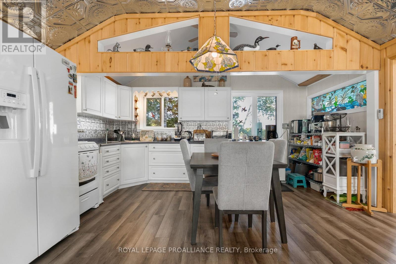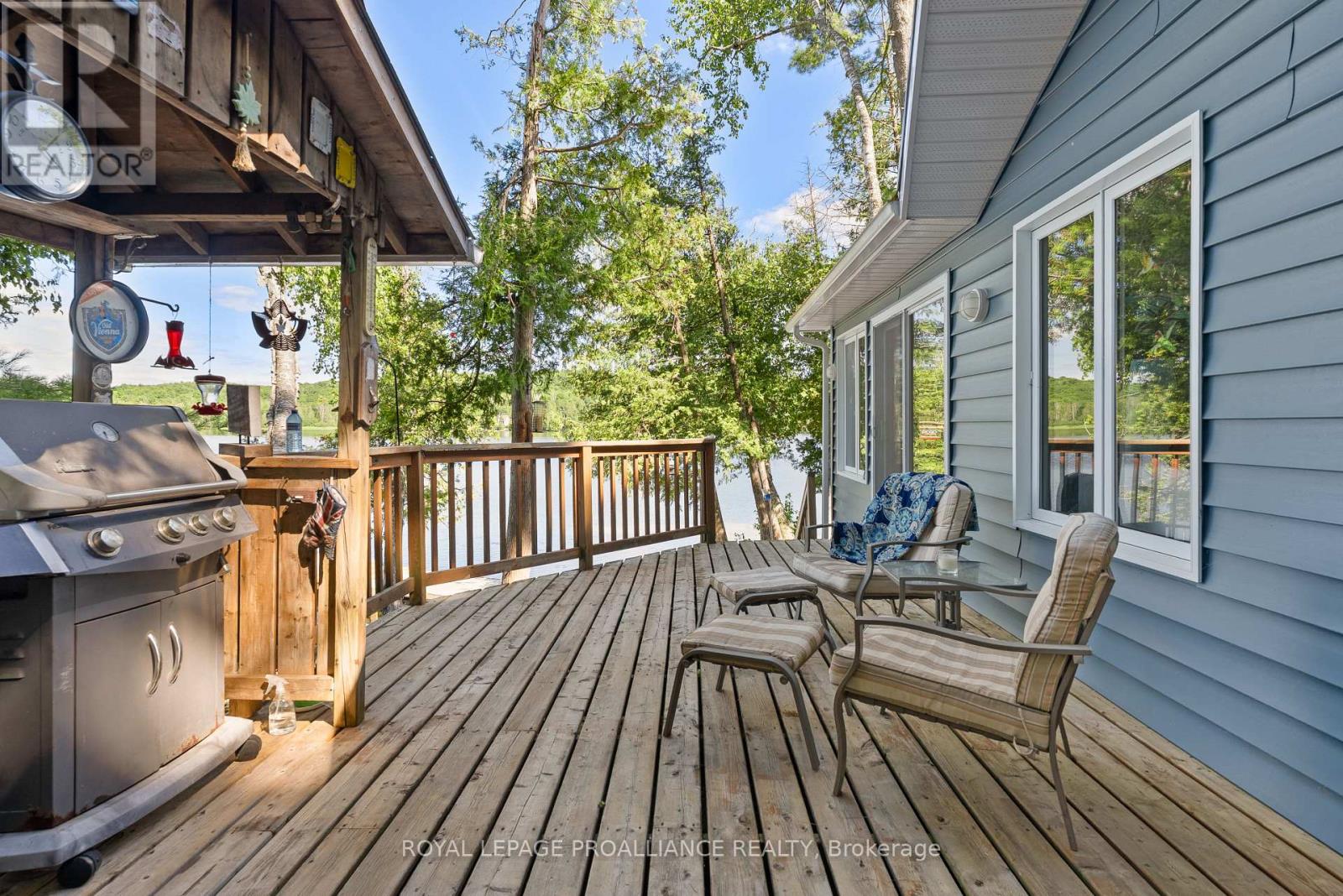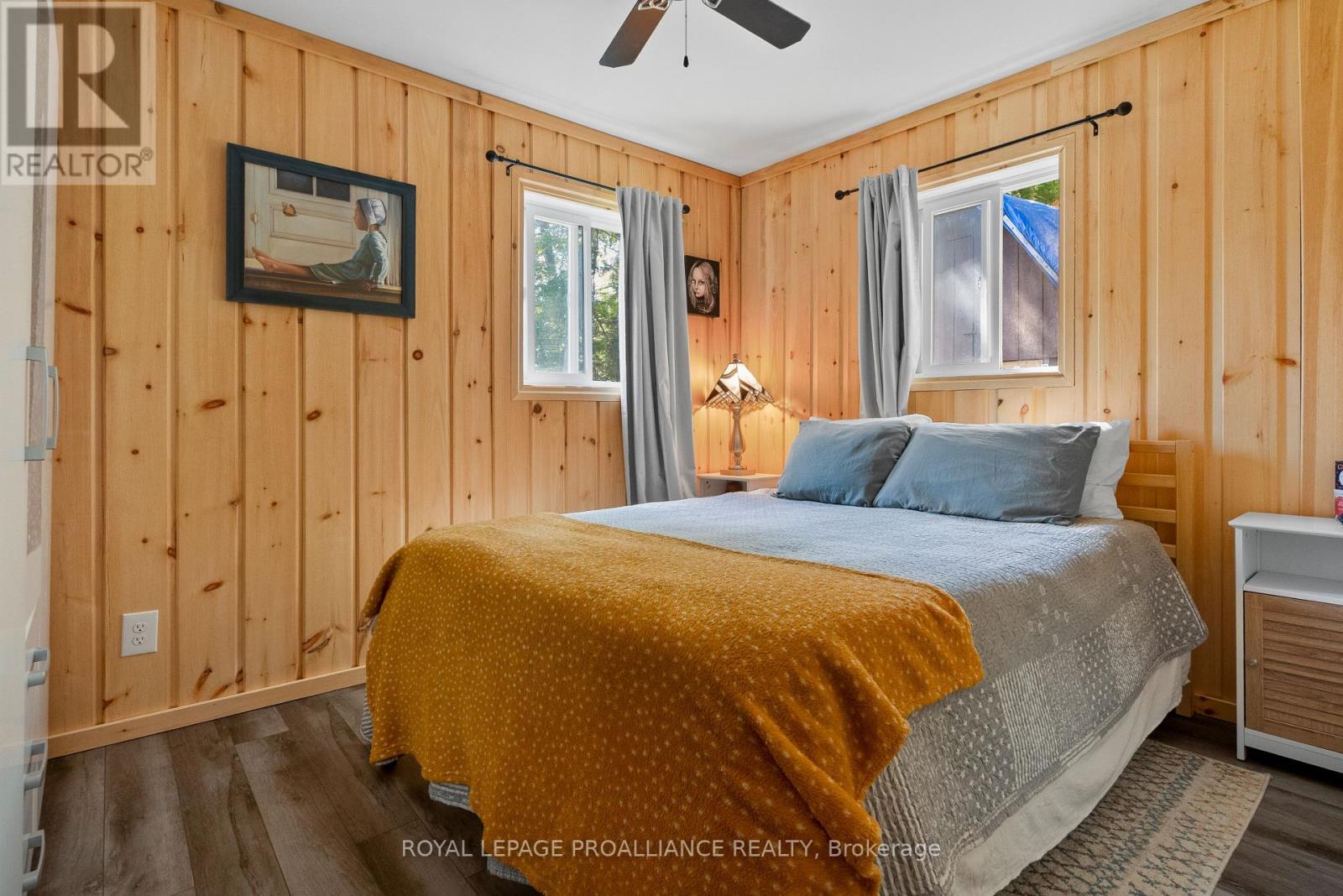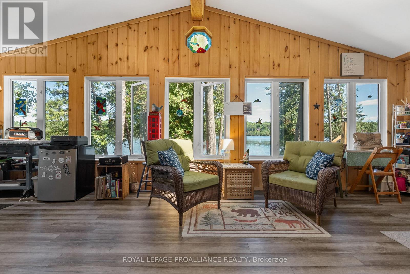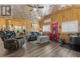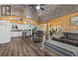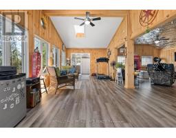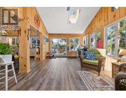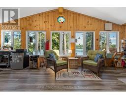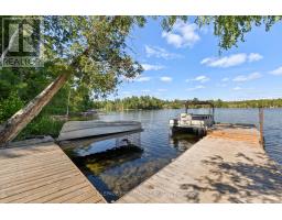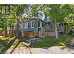 Enjoy your new piece of paradise on Gunter Lake Island! Take in the fresh air coming off the lake while you sip a morning coffee or evening beverage and watch the loons dance and echo across the lake. Some of the best fishing on the lake is just a cast away from the front shoreline of the cottage/home. A full size kitchen, a living room with wood stove, laundry room and a sun room that allows you to overlook the lake when reading, playing board games or hosting a casual evening with friends and family. Guests staying the night will have their own privacy in an air conditioned bunkie. Plenty of upgrades were made in 2023 that were thoughtfully made to add to the comfort of living while remaining true to the feeling of lakeside living. Upgrades include a steel roof, siding, flooring, insulated floors, heat pump with AC, ceiling fans, tin ceiling, new windows and doors in the laundry room, new door in primary bedroom and the water system was upgraded with a heated line. Two storage sheds and a garden shed offer plenty of storage for wood, tools, outdoor furniture and water toys. With all that having a retreat on the water offers in the summer for boating, swimming and fishing, when the ice freezes, Gunter Lake becomes part of the OFSC Snow Mobile Trail, and is also well known for the quality of ice fishing. The shoreline on the front side of the property offers shallower hard bottom surfaces for muddling around in the crystal clear water, or swim off the backside of the property featuring a third dock and deeper waters. This truly is a piece of paradise that once you stand on the shores and look out over the water, you will picture the adventures and the memories that you and those closest to you will cherish for years to come. (id:61423)