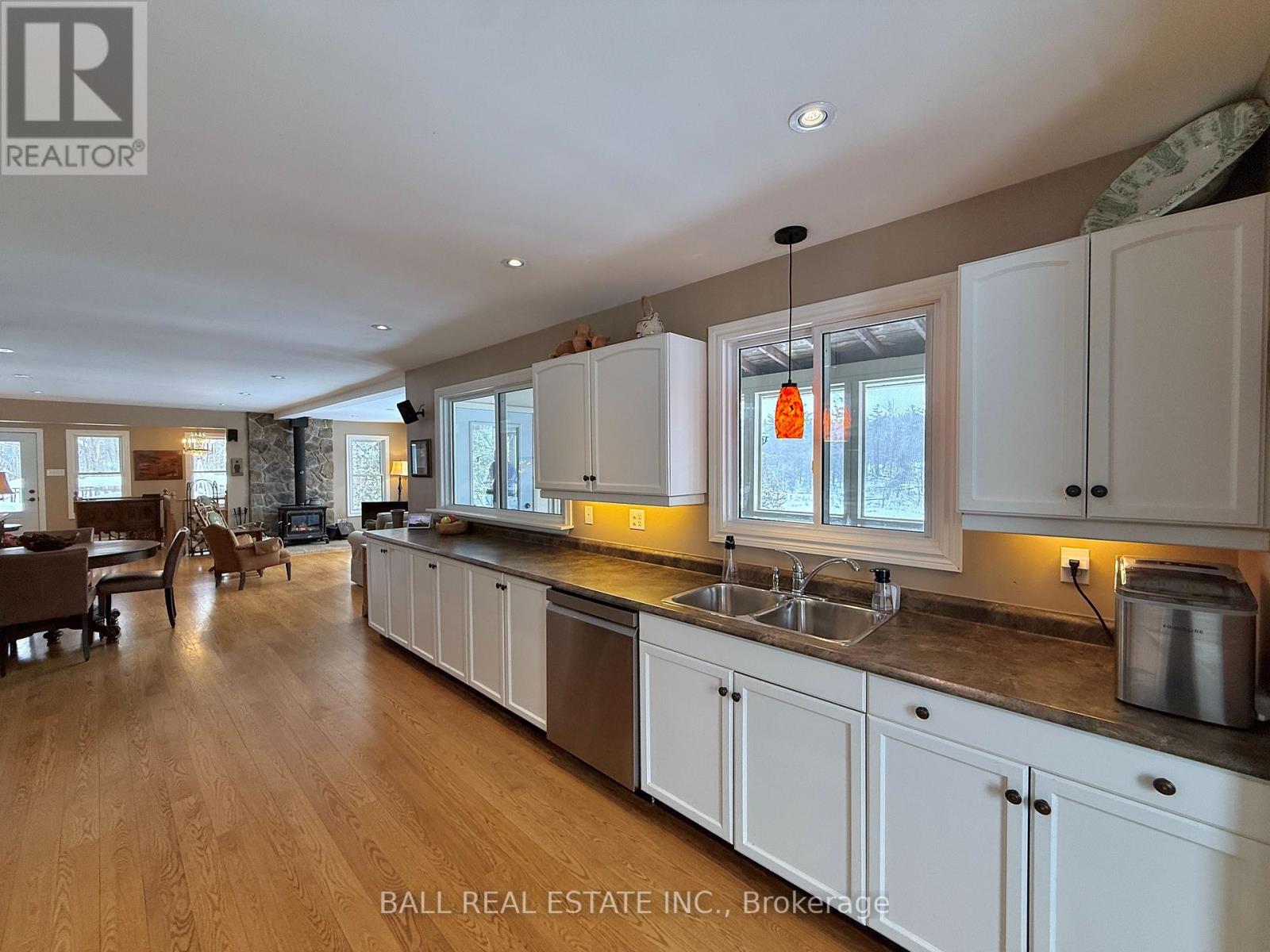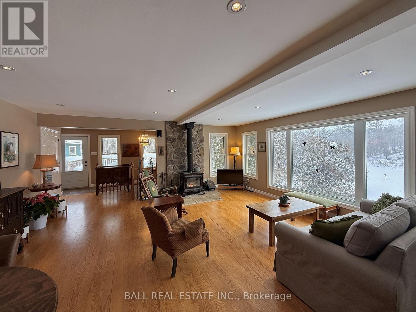 Stoney Lake!! Year-round bungalow, detached heated garage and large drive shed set on half an acre of land with 130ft of private waterfront on Stoney Lake! Enjoy great natural privacy tucked at the end of a small, year-round private road and a quiet, private bay surrounded by nature, just moments to the open lake, Juniper Island activities, restaurants, and vibrant community of Stoney Lake. Lovely updated bungalow with finished walkout basement, offering a spacious 2+3 bedrooms and 2 full bathrooms with approx 1470sqft of bright, open, main floor living space. Take in sunny southern lake views from the open concept kitchen and bright living room, connected screened-in porch, deck, and covered walkout basement leading to waterfront lot. Approx 23'x19' insulated garage/workshop with woodstove and 16'x11' drive shed surrounded by forested privacy. Enjoy the peace & quiet of nature year-round, with the lively boating, dining, fishing, swimming, island-hopping, Stoney Lake lifestyle at your fingertips-- live the best of both worlds on the most desirable lake on the Trent Severn Waterway! (id:61423)