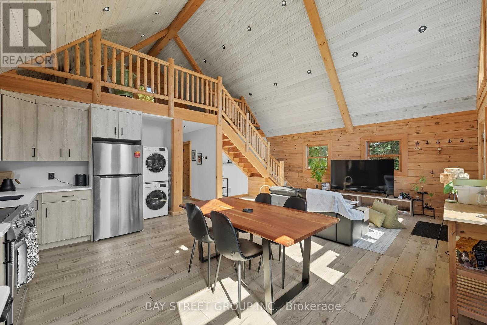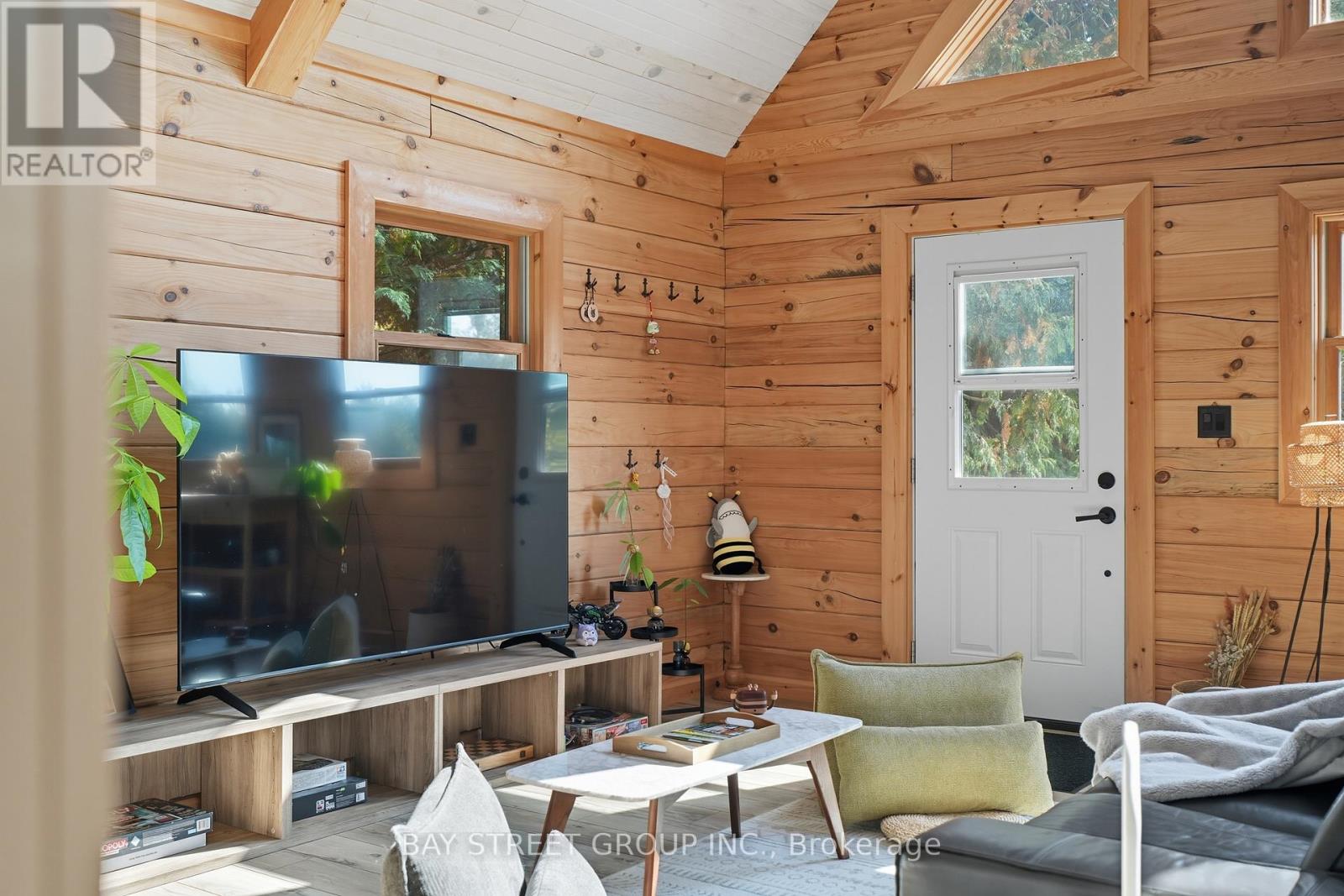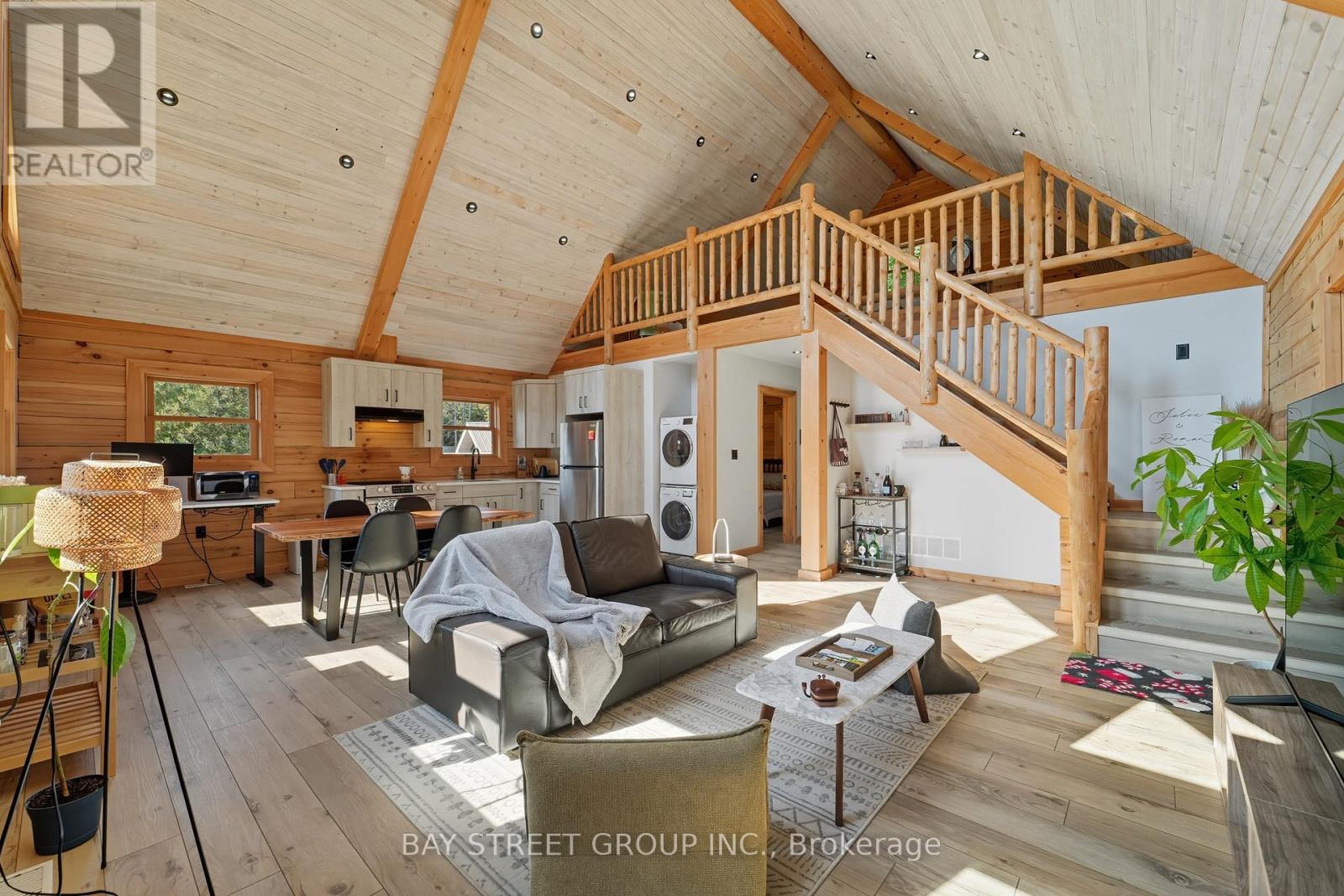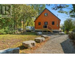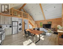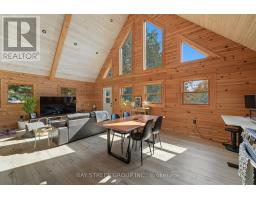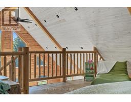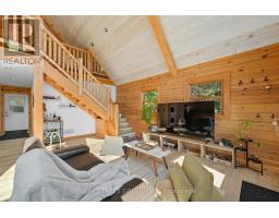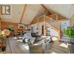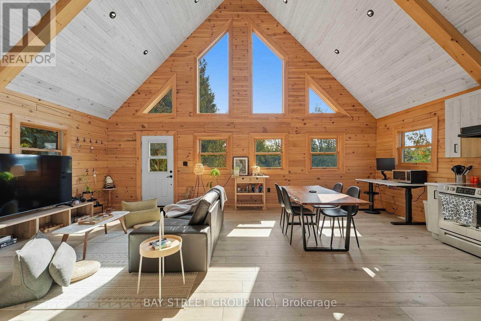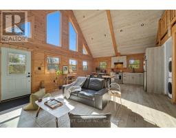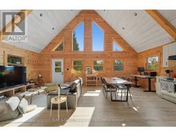 Discover the Ultimate in Waterfront living with this Rare Log home, a style prized for its Soaring Ceilings, Striking Angular roofline, and unparalleled architectural character properties like this are extremely scarce on the market. Every detail has been Thoughtfully designed to maximize Natural light, comfort, and riverfront views.The property features impressive Armour stone landscaping, a highly skilled and labor-intensive construction choice that enhances both aesthetics and shoreline durability, culminating in a stunning large dock for water access and Enjoyment.Inside, the Open-concept chalet-style interior boasts huge windows, a lofted master bedroom overlooking the main living area, and 2 additional bedrooms on the main level. The modern kitchen is outfitted with Stainless Steel Appliances, complemented by a convenient laundry area and a 4-piece bathroom.Outdoor living is effortless, with ample parking in the Front, a spacious Back yard perfect for entertaining, a covered cabana, and a fire pit. Modern comforts include a propane Furnace, AC, owned water heater, and Starlink High-speed internet.The home also includes a new Elgen Septic system,reducing maintenance requirements and heated water line with UV filtration, allowing Year round access. Only thing left is to move in and Enjoy your waterfront paradise. This is more than a home! It is a rare architectural gem on the Burnt River that combines luxury, craftsmanship, and serenity in one unmatched package. Opportunities like this do not come often. Act Fast! (id:61423)