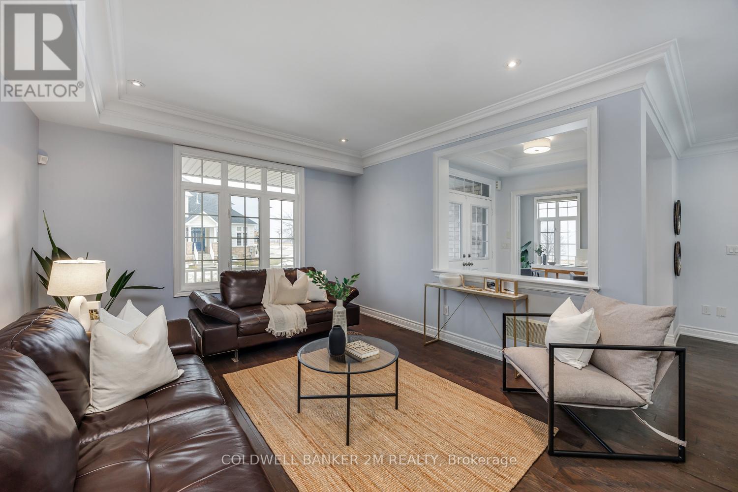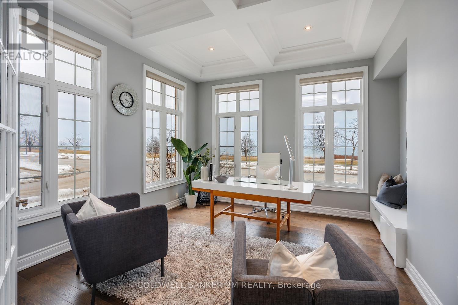 Spectacular Waterfront Living in the Prestigious Port of NewcastleWelcome to one of the most impressive homes in the highly sought-after waterfront community of Port of Newcastle. This exceptional Kylemore-built home offers breathtaking lake views from almost every room and over 5,700 sq ft of finished living space.Soaring ceilings and elegant architectural details create a stunning first impression with coffered ceilings in the entry and dining room, tall plaster crown moulding, wide plank hand-scraped hardwood floors, and 9-foot ceilings throughout the main level.The dramatic family room features an impressive 18-foot ceiling and gas fireplace, creating a beautiful space to gather while enjoying lake views. The chef's kitchen showcases a massive quartz centre island, stainless steel backsplash, Wolf gas range, GE Caf refrigerator and dishwasher, and a convenient butler's pantry.The main floor also offers a private office with lake views-perfect for working from home.Upstairs are four spacious bedrooms, each with its own private ensuite. The primary suite features volume ceilings, stunning lake views, a spa-inspired 5-piece ensuite, and a private balcony overlooking the water.The professionally finished basement with Dri-Core subfloor expands the living space with a large recreation and family room, wet bar, additional bedroom, full bathroom, and excellent storage-ideal for extended family or in-law potential.Outside, enjoy beautifully landscaped grounds with an interlocked driveway, patios, hand-cut flagstone pathways, and mature gardens. Relax on the custom deck or in the six-person hot tub .A rare heated three-car tandem garage adds exceptional versatility.An extraordinary home offering luxury finishes and breathtaking waterfront living just steps to Lake Ontario, the Waterfront Trail, Wilmot Creek Nature Area, and the Port of Newcastle Marina. (id:61423)