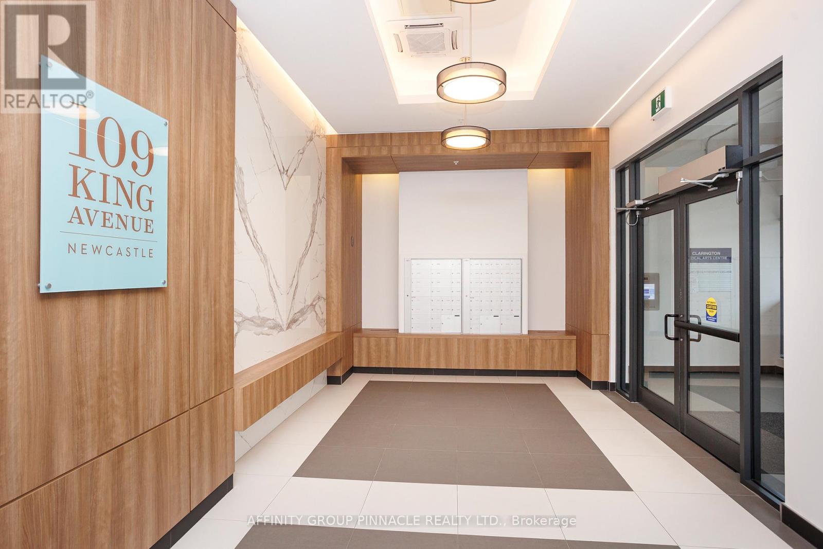 Experience Modern Comfort & Small-Town Charm in the Heart of Newcastle. Welcome to 109 King Ave E, a beautifully maintained 2-bed, 2-bath condo offering over 1,400 sqft of bright, open living space. Step into a large welcoming entryway that opens to an open-concept kitchen and living area, featuring 9 1/2 ft. ceilings, expansive windows, and a charming Juliet balcony. The layout provides a seamless flow for everyday living and entertaining, while exceptional sound separation ensures a peaceful atmosphere. Enjoy stunning Western views with gorgeous sunsets & seasonal views of Lake Ontario to the south during winter and spring. The primary bedroom offers generous space with double walk in closet and 3pc ensuite, complemented by a large second bedroom and a 4pc bathroom for added convenience. Ideally situated, you're just steps from grocery stores, shopping, parks, the library, & local restaurants, with the hockey arena, rec centre & top-rated schools nearby. Commuters will love the easy access to on-call bus service, morning & evening buses, GO bus stops, & Highway 401. Healthcare is within easy reach, with a hospital & walk-in clinic just 10min away. This building offers outstanding amenities, including a rooftop patio with a shared BBQ, a resident library, & a heated ramp leading to the underground garage for effortless winter living. The unit includes an indoor parking space, in-unit storage locker and a laundry room. Utilities are individually metered for water, gas, & electricity, with independent heating and cooling controls. Additional perks include on-site physiotherapy and chiropractic services for ultimate convenience. Recent updates: 2021- kitchen island drawers, upgraded faucets, new washer/dryer, dishwasher and toilets; 2023 - New lighting throughout ; 2024 - window upgrades & fresh paint. Discover condo living in a quiet, welcoming community - ideal for professionals, investors, families, retirees, or anyone seeking comfort & convenience in Newcastle (id:61423)