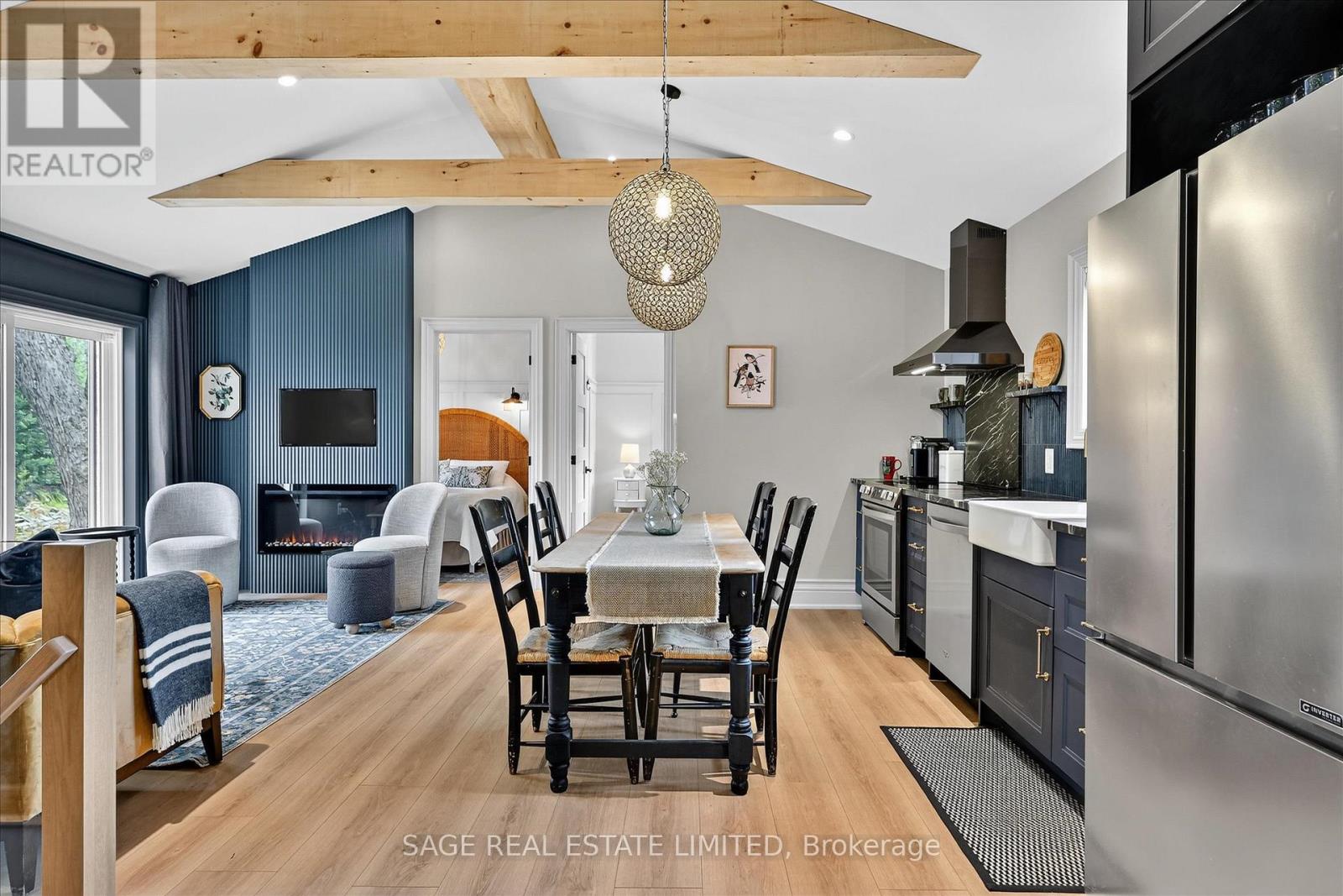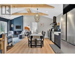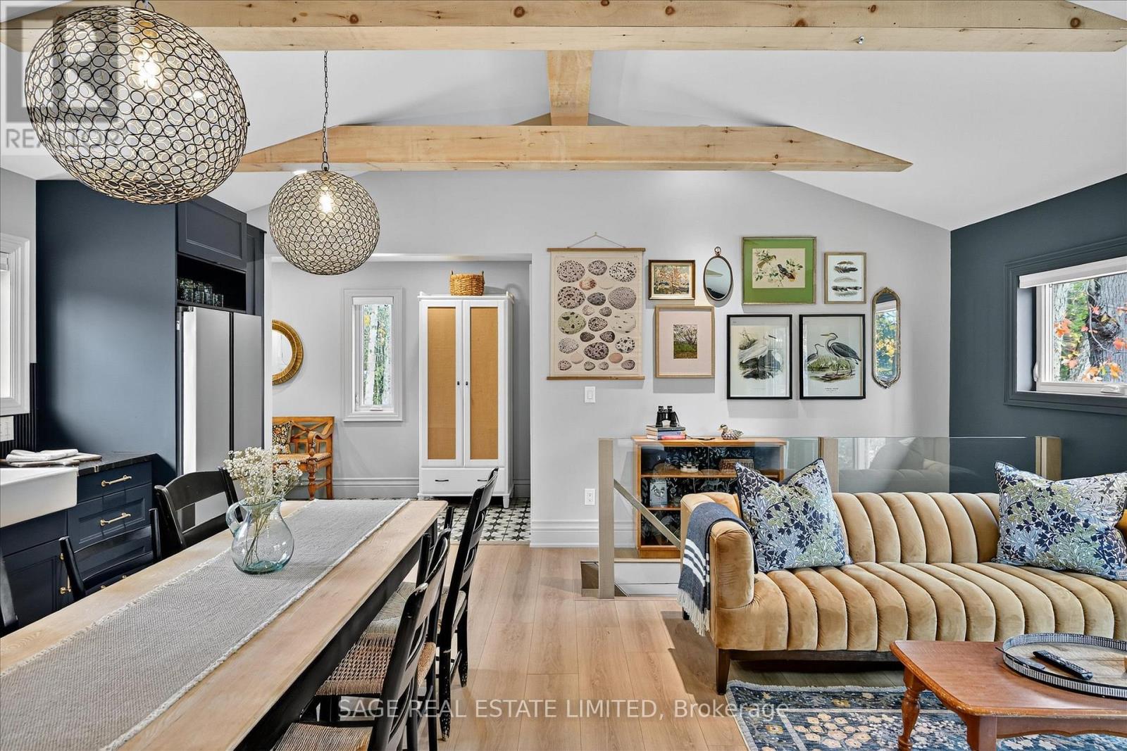 Impeccable quality and design on the Miskwaa Ziibi River. An exceptional complete package perfectly suited for the family cottage country escape. Kayak downstream to Little Bald Lake and the paddling trail. The attention to detail is beyond the norm we see today. The design and décor has flair and style only found in magazines. Weekends and holidays would be real easy in this space. Completely renovated with high-quality materials, fixtures, lighting and appliances. Exquisite furniture and accessories. Two bedrooms, a four-piece bath, open-concept kitchen, dining and living room with modern electric fireplace. High ceilings, large wood beams, tile and vinyl flooring. Main-floor laundry, front porch, back deck and easy access to the River, lower level with storage, utility room, games area, two-piece bath and a spacious tv room. The detached bunkie with loft, is heated and ready for the kids to hang out. Includes outdoor furniture, toys and gazebo. Sit around the campfire River side and enjoy the quiet peaceful essence of being surrounded by nature. There is a flow of casual elegance in the 1200 square feet of living space influenced by the surrounding nature of 125' of river living. Minutes away from the Villages of Bobcaygeon and Buckhorn. Two hours from the GTA. Plenty of snowmobile, hiking, biking trails and boating access near-by. Be in before the holidays and start new traditions for your family. (id:61423)