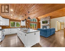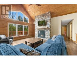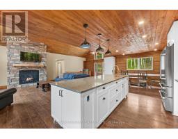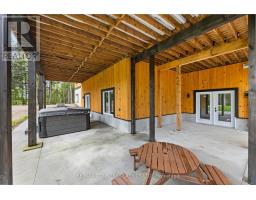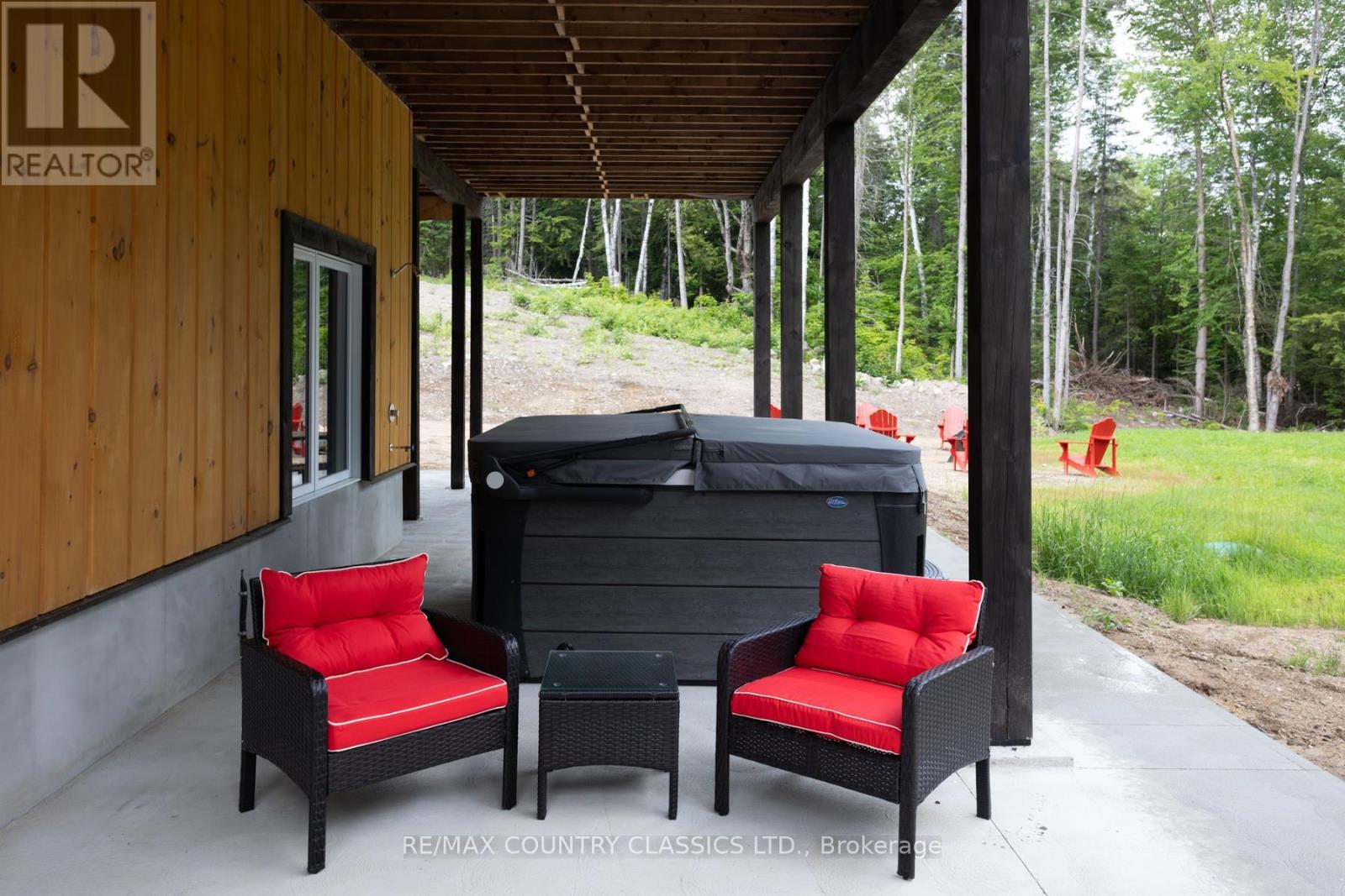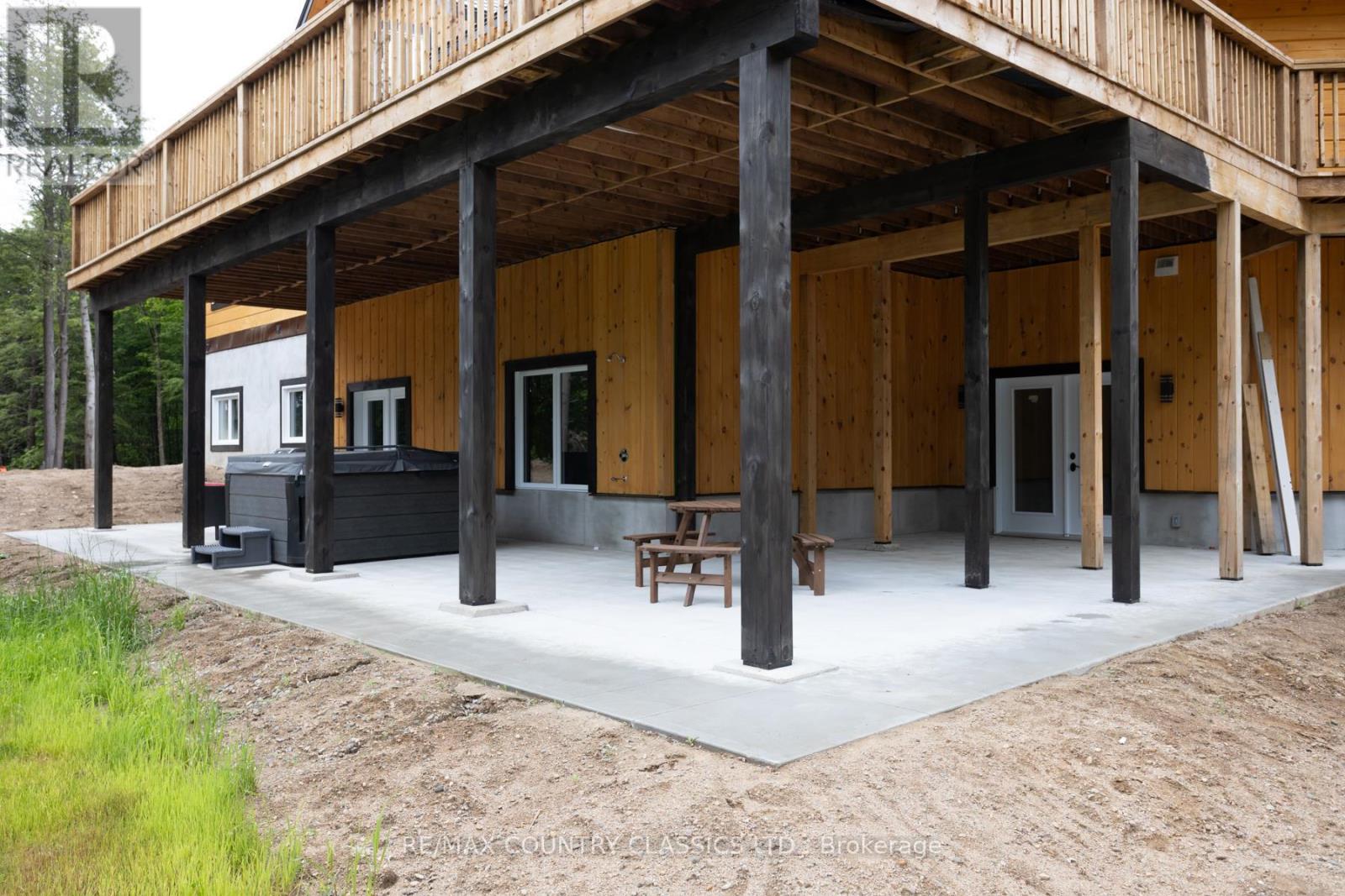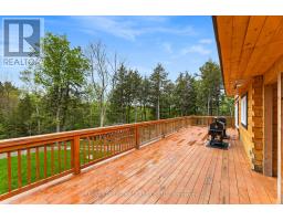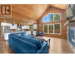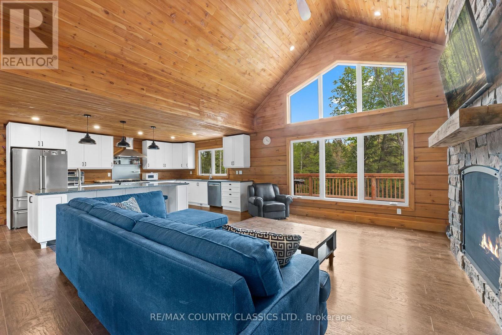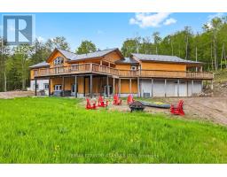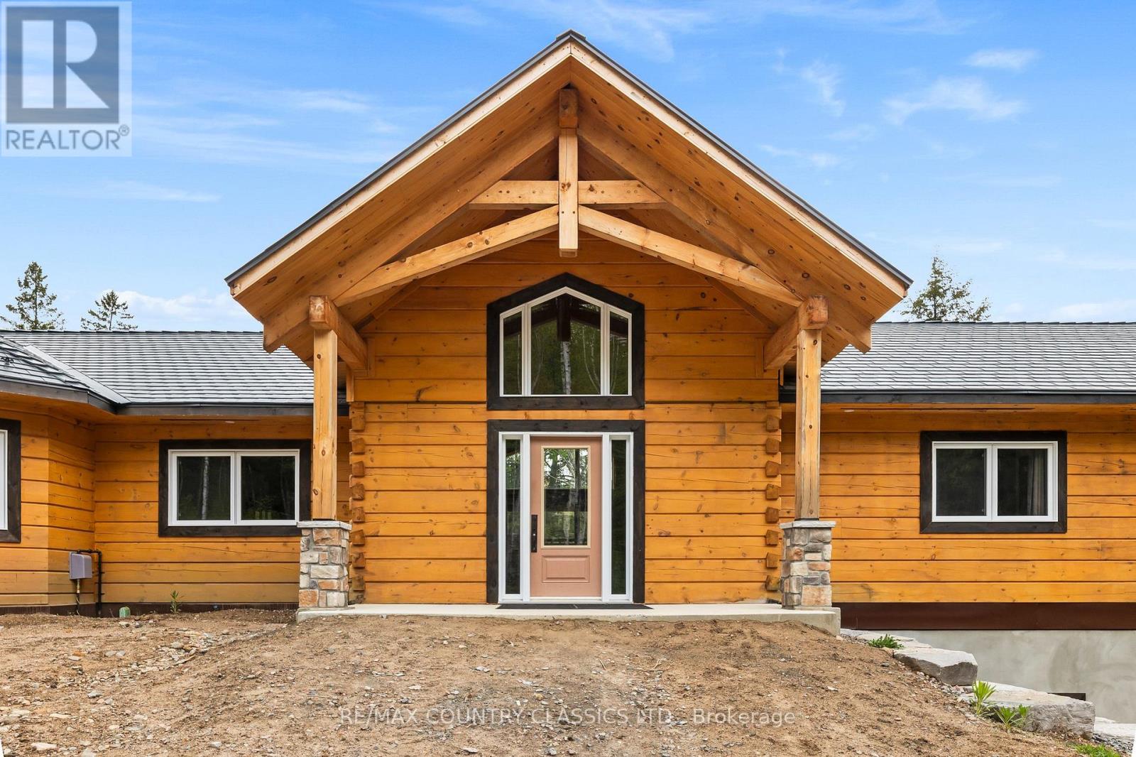 Custom built log Discovery Dream Home on a stunning 6.5 acre lot located close to the town of Bancroft for all amenities and just 2 minutes from the Baptiste Lake boat launch. This home is approximately 4,000 square feet with the main floor featuring a bright open concept chef inspired kitchen with center island, dining room, family room with cathedral ceilings and floor to ceiling propane fireplace, a dedicated office with separate entrance, 3 bedrooms, 2 washrooms and a walkout to the double car garage. The fully finished sound proofed walkout basement boasts large rec room with kitchenette and floor to ceiling propane fireplace, three bedrooms each with its own 3 piece ensuite and walkout to the patio and with hot tub. The property offers circular driveway leading to 2 bay garage and large carport, treetop views from every room in the house. Use as your primary residence, getaway or income potential for Airbnb. Also great for a multi generation home. There is a heated 1,100 square foot workshop or garage, energy efficient outdoor wood boiler with in floor heating backup, Generac and durable steel roof. COME AND CHECK OUT THIS AMAZING CUSTOM HOME! (id:61423)