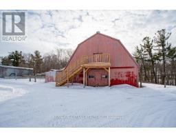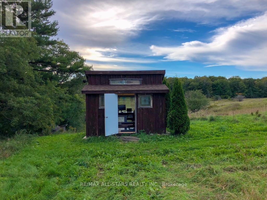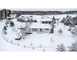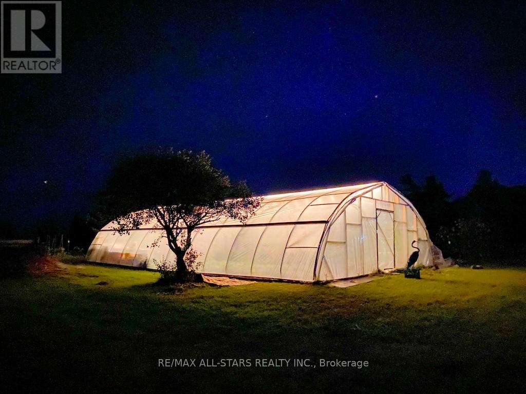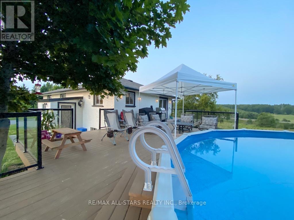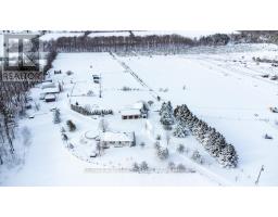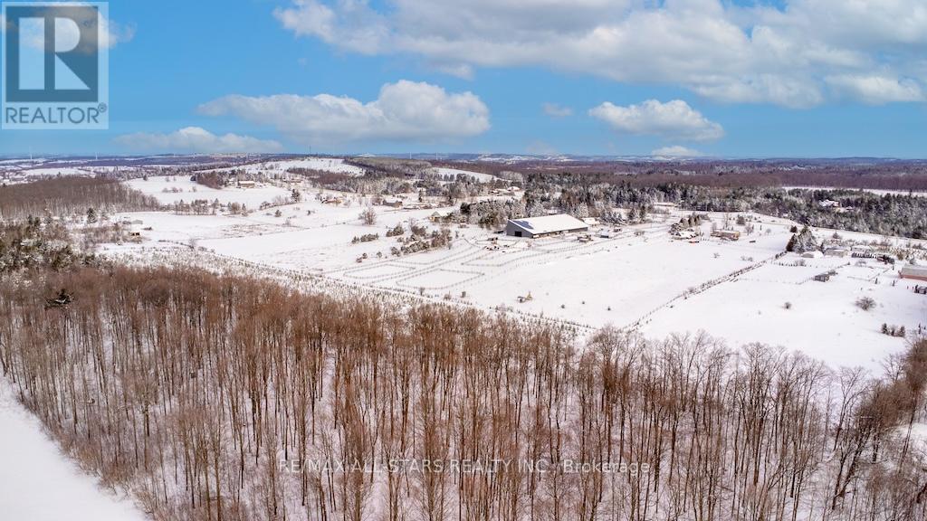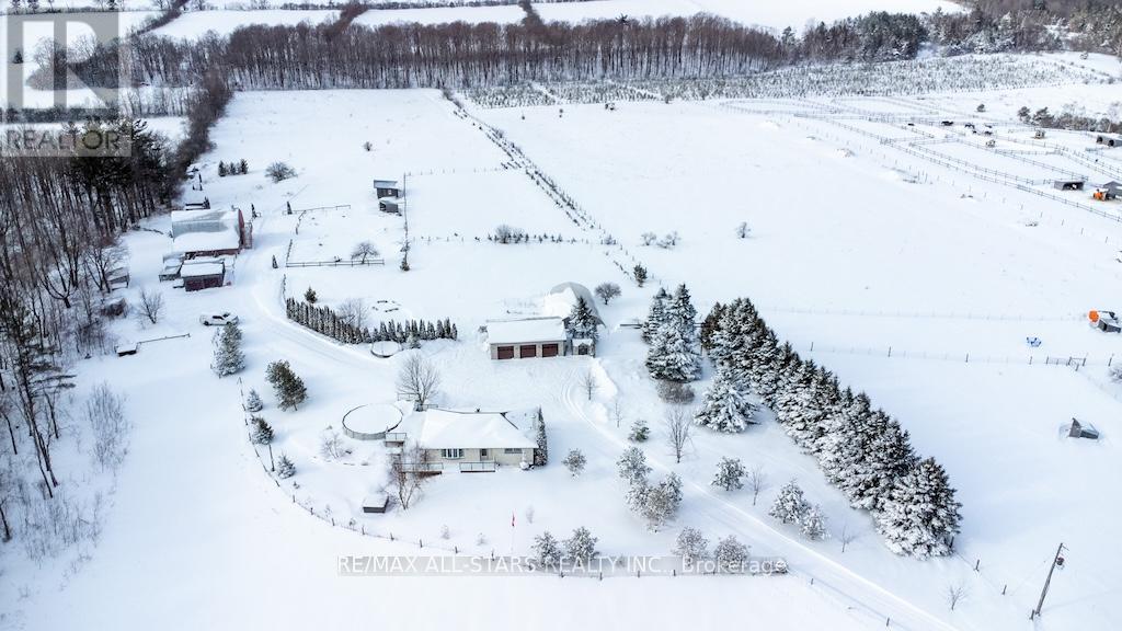 Welcome to 513 Hwy 35, Pontypool - a rare 27-acre hobby farm, offering privacy, infrastructure, and lifestyle. This well-developed rural property offers an exceptional blend of managed forest, agricultural opportunity, recreational enjoyment, and modern conveniences - ideal for hobby farmers, hobbyists, or those seeking a self-sustaining country lifestyle within commuting distance of the GTA. Enjoy approximately 2 km of groomed, walking trails that wind through the property, including 8 acres of maple hardwood forest, well suited for syrup production, firewood, and future timber income. A total of 6,700 softwood trees planted in 2019 supporting long-term sustainability and land value. The land is thoughtfully set up for rural living and agriculture, featuring a barn with loft, hydro, and water, suitable for horses or livestock, and a chicken coop with enclosed run, multiple campsites with outhouse, and open areas for bonfires and winter tobogganing. A 27' x 50' greenhouse with water and irrigation system and a variety of fruit trees further enhance the property's versatility. Infrastructure is extensive and well maintained, including a heated 3 bay garage/workshop with metal roof, a 10' x 10' heated/air-conditioned remote office overlooking the beautiful rolling countryside, a 20' x 15' bunkie, and a 20' x 20' implement shed, all in good condition. Outdoor living is a standout, with 1,000 sq ft deck with glass railing overlooking the 24' above-ground pool, 7 person hot tub, and a 6' bonfire pit with bench seating - perfect for entertaining or relaxing year-round. The carpet-free brick bungalow offers comfortable and functional living space, with 2 generous main floor bedrooms, a 4-piece bath, and an open concept kitchen, dining, and living area with walk out to the pool and deck, plus a practical mudroom. The finished lower level includes an updated, 3-piece bath, cozy family room with barn doors, office area, and a large primary suite with walkout to private patio. (id:61423)