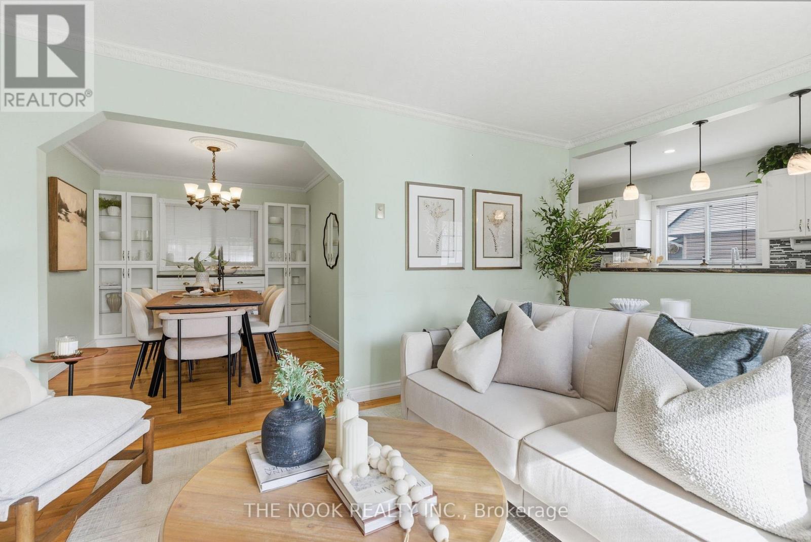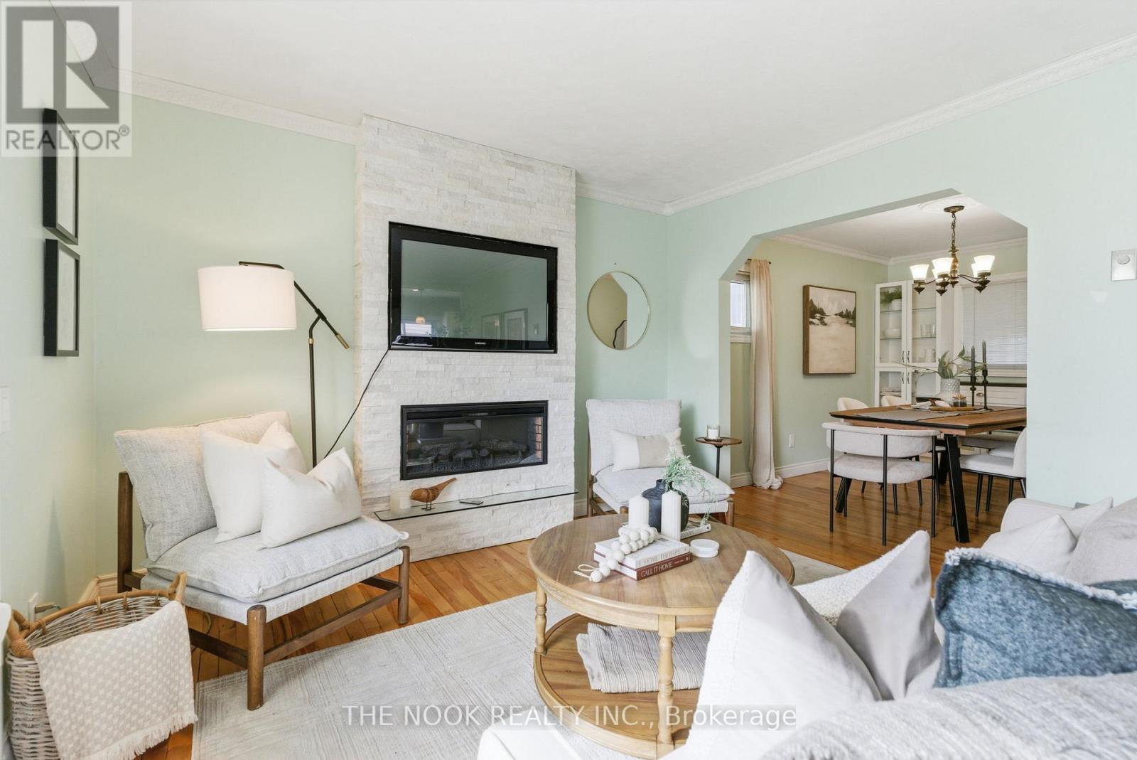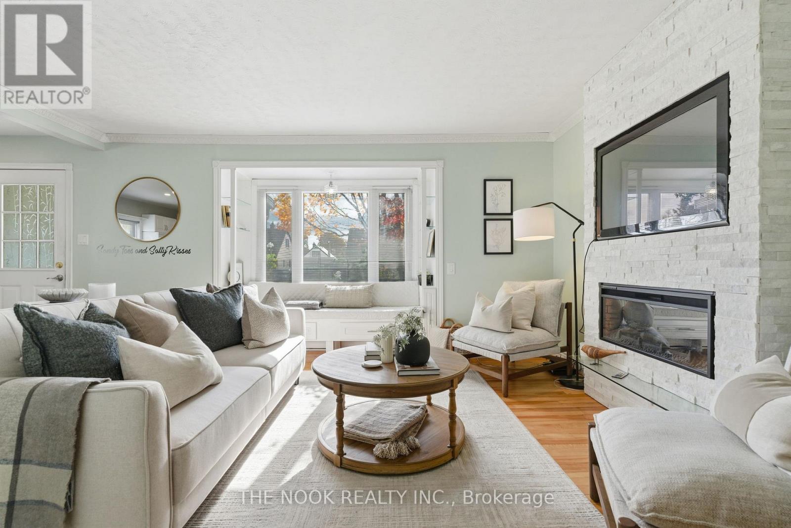 This delightful 2+1 bedroom residence is conveniently located within walking distance of schools, parks, and all major amenities! Meticulously finished from top to bottom, it's an ideal place to begin and nurture your family. The updated kitchen features a spacious breakfast bar that opens to a sun-filled living room and offers a bay window, hardwood floors, and a stunning stone accent wall with an electric fireplace. The formal dining room is the perfect spot for hosting family dinners, with additional space available in the solarium, ideal for morning coffees or game nights. The upper floor includes two bedrooms, both equipped with built-ins, while the primary bedroom offers the convenience of a 2-piece ensuite. The finished lower level features a wet bar, large recreation room and additional bedroom. Step outside to find a fully fenced backyard, providing ample space for entertaining, gardening, or lawn games! (id:61423)