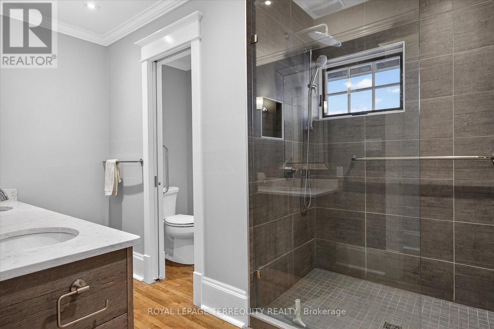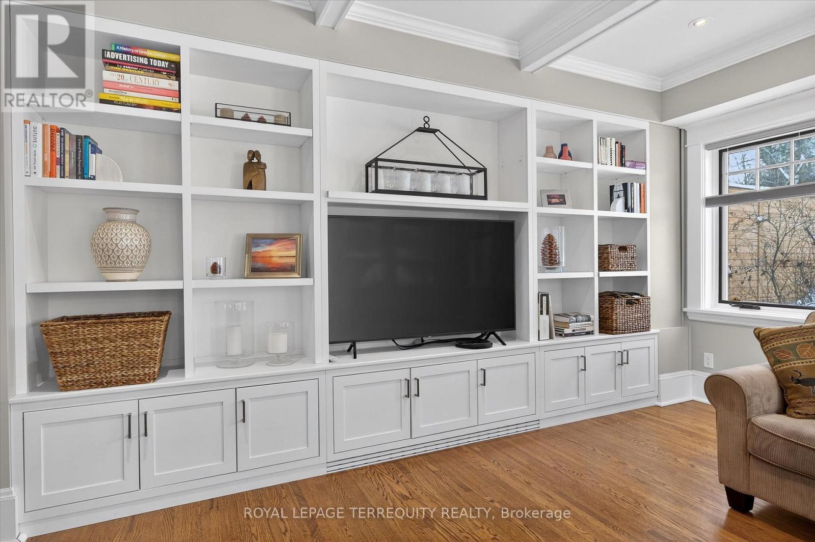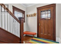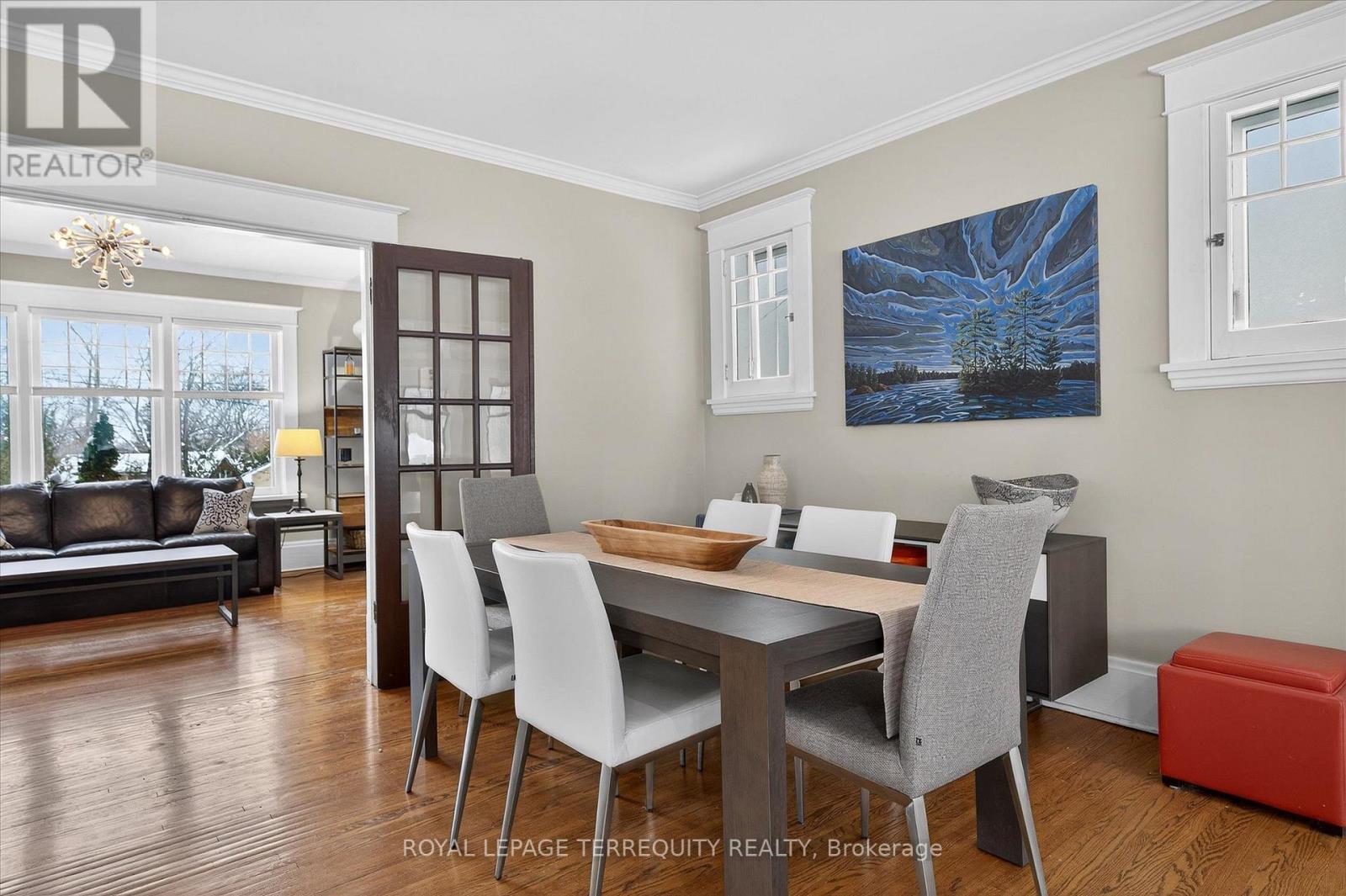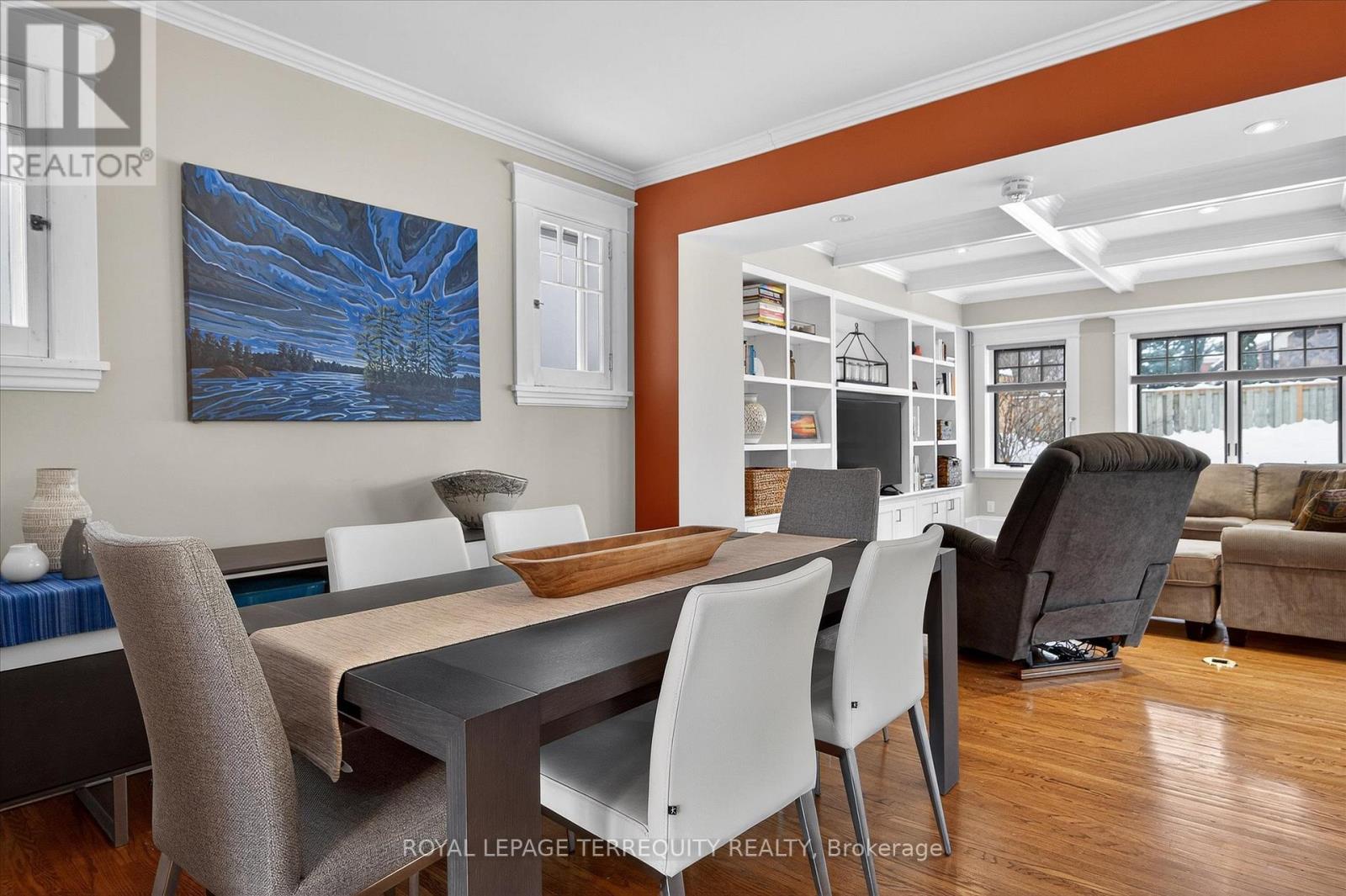 Welcome to this beautiful inviting character home, perfectly situated on a quiet, tree-lined street in the highly sought-after Teachers College neighbourhood of Peterborough. This prime location offers the rare combination of peaceful residential living with the convenience of being able to walk, bus or drive just minutes to downtown amenities. This spacious four-bedroom, three-bathroom home, plus a main floor powder room, blends timeless charm with thoughtful modern updates. The large living room features a wood-burning fireplace, creating a warm welcoming space for relaxing evenings. From here, the home flows seamlessly into an open-concept kitchen, dining and living area, ideal for entertaining family and friends. A standout feature is the 2-storey addition completed in 2015, designed to enhance both comfort and connection to the outdoors. The expansive family room boasts coffered ceilings, built-in cabinetry and shelving, large windows and two walk-out doors leading to a generous patio deck with wide views of the rear property. The home also offers wheel-chair accessibility through the rear entrance and deck adding versatility and thoughtful design. Hardwood flooring extends throughout the home.The primary bedroom retreat offers a spacious walk-in closet and four-piece ensuite bathroom. Enjoy the exceptional lifestyle with the Rotary Trail, Parks, biking paths, and river just steps away. A short walk brings you to downtown Peterborough's restaurants, shopping, hockey and sports facilities. ** This is a linked property.** (id:61423)