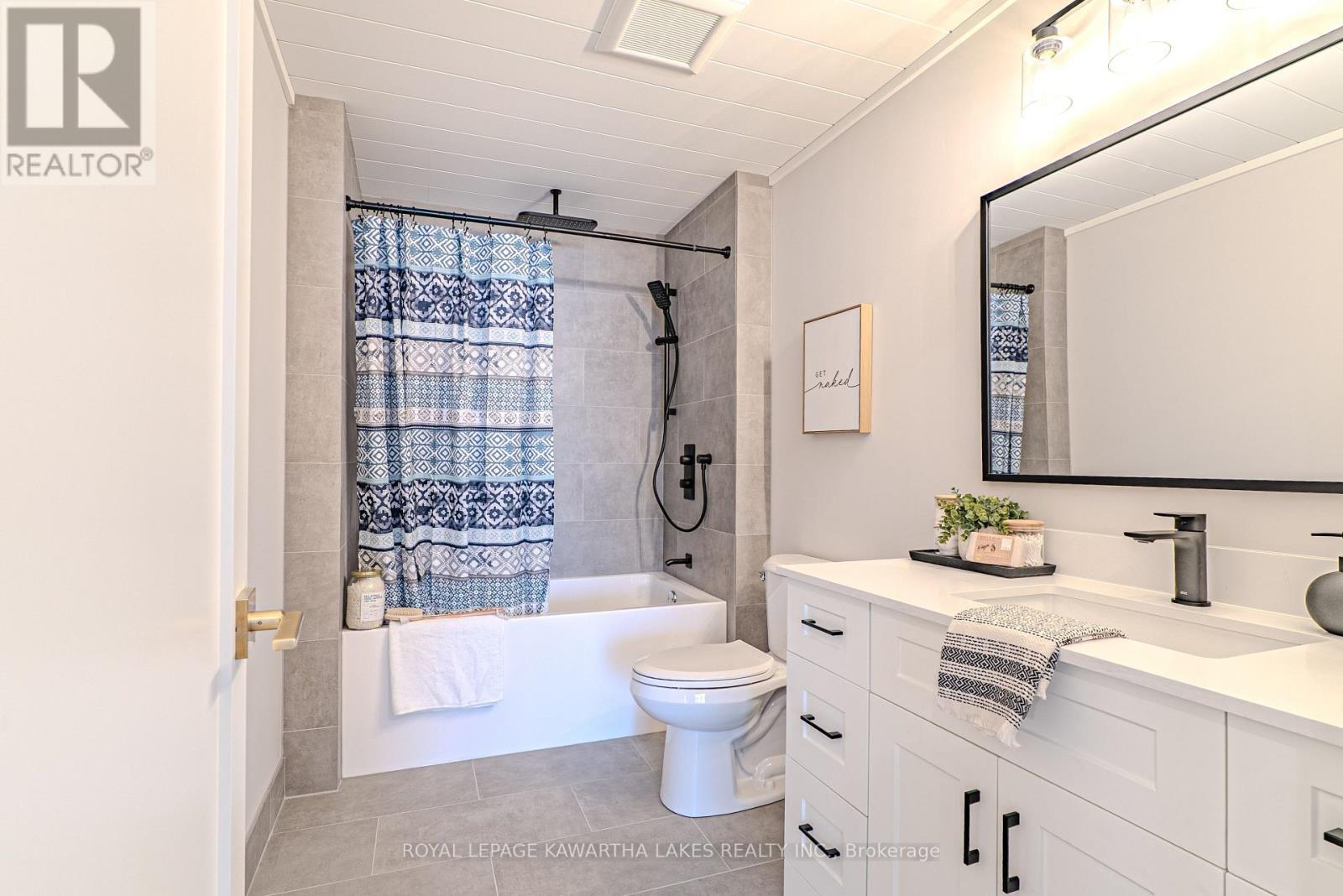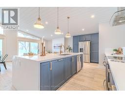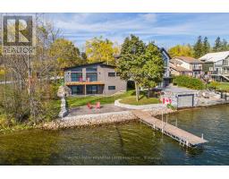 Welcome to elevated waterfront living on beautiful Sturgeon Lake. This custom-built raised bungalow offers year-round enjoyment with direct waterfront and stunning lake views from the main living spaces. The thoughtfully designed main level features a bright open-concept layout centered around a beautifully appointed kitchen with quartz countertops, a spacious centre island, pantry storage, and picturesque views of the lake. The living and dining area is ideal for entertaining or relaxing, with a walkout to the deck where you can take in the tranquil waterfront setting. The main floor also includes a spacious primary bedroom with walk-in closet, a second bedroom with double closet, and a stylish 3-piece bathroom with in floor heating. The finished walkout lower level adds exceptional living space, highlighted by a large recreation room with built-in bar and direct access to the stamped concrete patio, creating the perfect indoor-outdoor entertaining area. This level also offers a home office, playroom, laundry room, a 4-piece bathroom, and an unfinished utility room providing additional storage. Outside, enjoy the ultimate lakeside lifestyle with a private dock, direct shoreline, and beautifully designed outdoor spaces ideal for relaxing or hosting family and friends. A durable steel roof and quality finishes throughout reflect the care and craftsmanship that went into this custom-built home. An exceptional opportunity to enjoy modern comfort, thoughtful design, and the unmatched beauty of life on Sturgeon Lake. Property has a Generlink as an alternative power source. (id:61423)