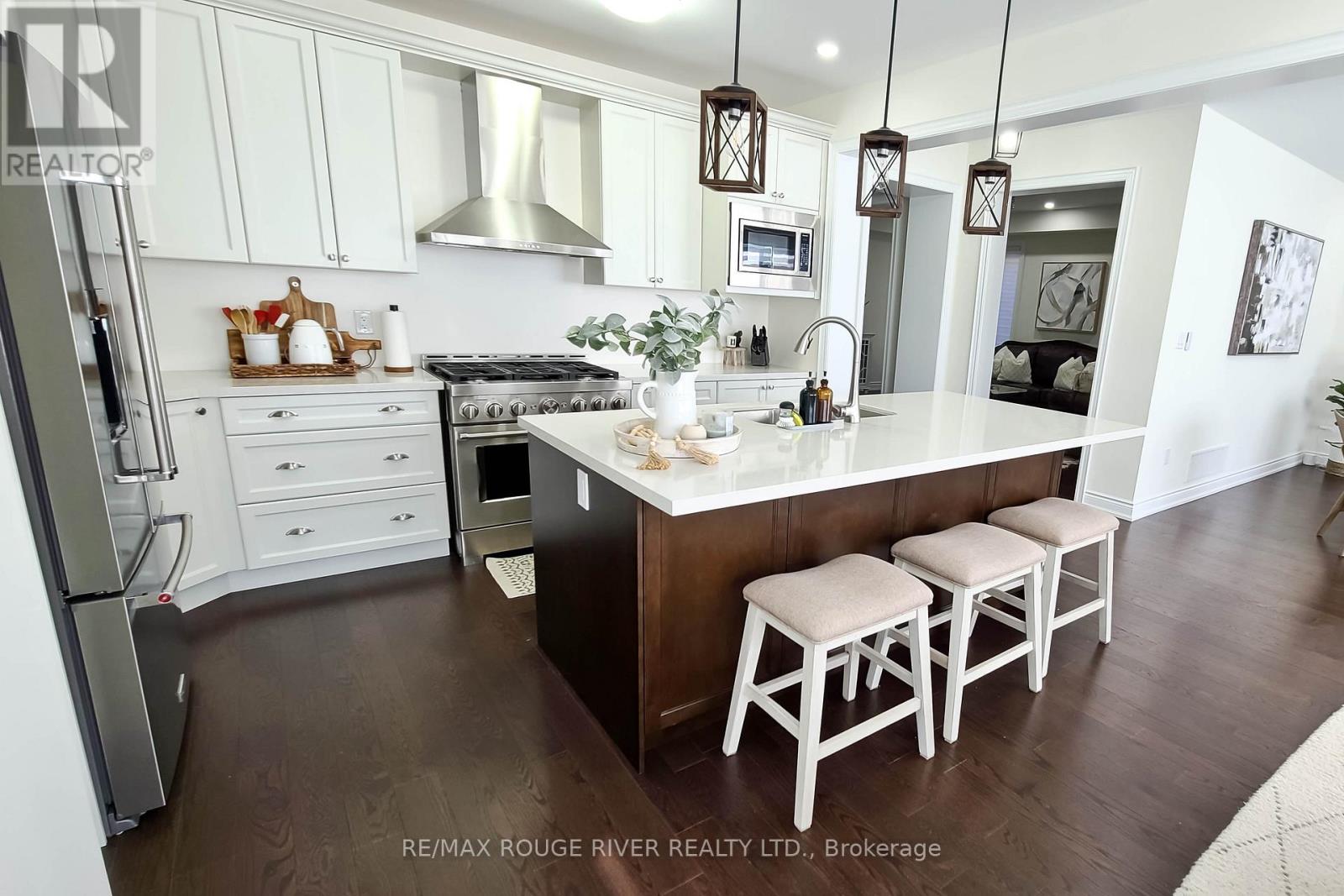 Welcome to your ultimate dream home located in the quaint town of Millbrook, just 30 mins away from Oshawa and 15 mins away from the City of Peterborough. Do you crave a lifestyle where your kids can play safely in the streets with other children? Do you want to live in a community where neighbors aren't strangers and truly look out for one another? If your answer is yes, then this home is for you! More than $100K spent on upgrades with almost 3500 sqft of living space luxury. The main floor features 9 ft ceilings, hardwood flooring, upgraded light fixtures, pot-lights and oversized windows for tons of natural light. A dream kitchen with upgraded cabinets, stainless steel high-end quality KitchenAid appliances and Quartz Counters. The Family Room features a marble fireplace and Sonos in-ceiling speakers for all your music and entertainment needs. The Living and Dining area offers additional massive space equipped with more pot-lights and massive windows. Working from home? This home also features a big office space that can be converted into a 5th bedroom or library. The home also features a huge mudroom with access to a 4-car tandem garage to put all your cars, bikes, boats and toys. Walk up to the 2nd level and you will be greeted by 4 oversized bedrooms, two en-suite washrooms and a one 4 pc bathroom. A huge primary bedroom with a luxurious 5 pc ensuite with quartz counter-top, roman bathtub, separate toilet and a standing shower. All windows feature custom made motorized Zebra blinds that you can program and control. Smart garage door openers plus a modern security monitoring system featuring a smart doorbell camera, motion detectors, glass break sensors, smart thermostat and smart door locks. Rough in wiring available outside ready for outdoor CCTV cameras. The house also sits on a massive pie shaped lot for maximum curve appeal. Its the only Wallace Model with a 3 car door garage in the whole neighborhood with driveway parking for 5 additional cars! (id:61423)