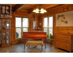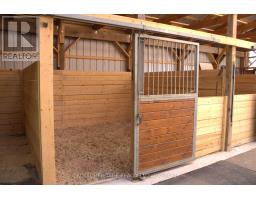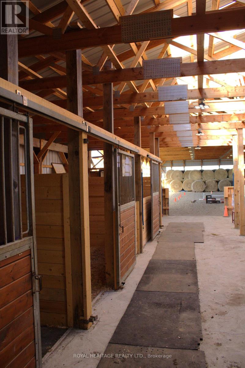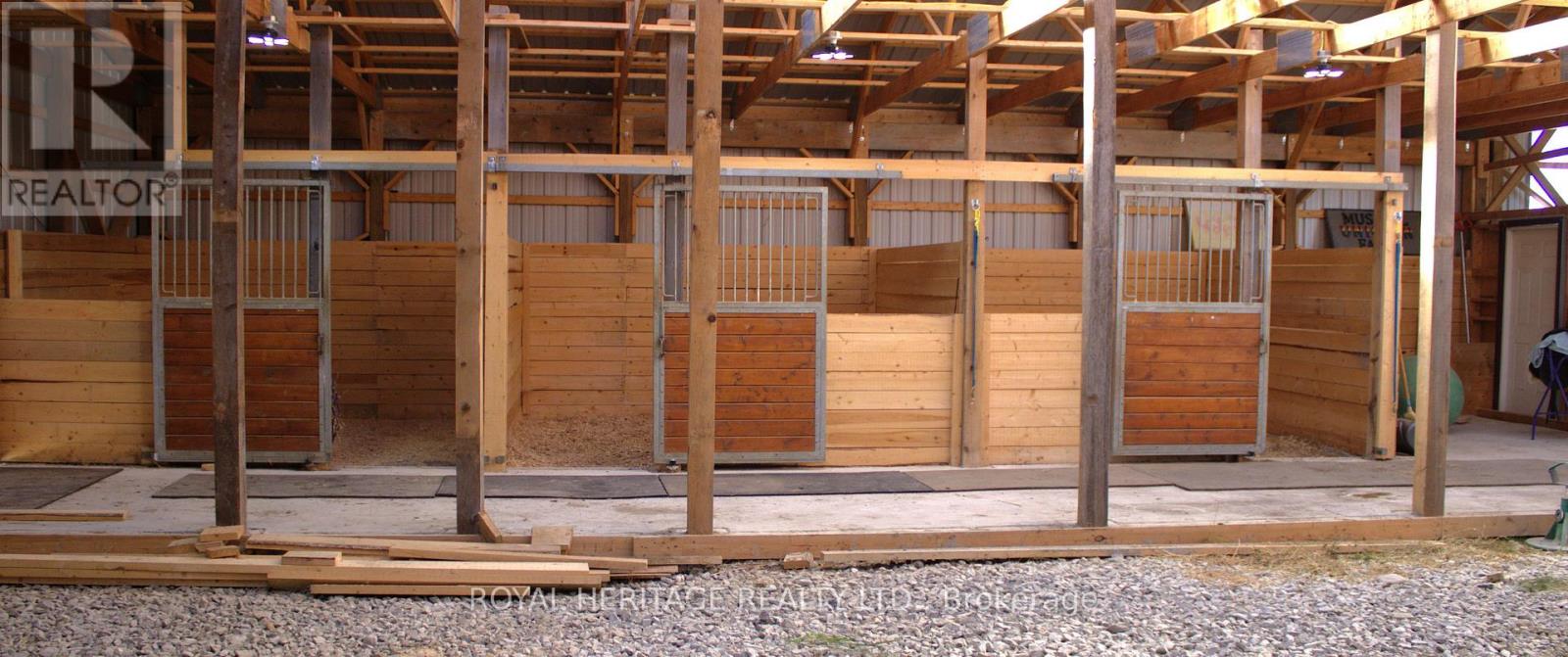 Welcome to an exceptional 103-acre equestrian and agricultural property offering privacy, versatility, and income potential. A scenic tree-lined driveway leads to this peaceful countryside setting, surrounded by expansive open fields ideal for horses, cattle, sheep, or mixed livestock. The property is well equipped for equestrian use with a brand-new three-stall stable featuring 12' x 12' stalls and a concrete walkway, with capacity to add additional stalls. A 60' x 100' arena built in 2022 offers excellent space for riding, training, and lessons, while also providing outstanding flexibility for agricultural use. The arena is well suited for livestock handling, winter feeding, lambing or calving, equipment storage, or other multi-purpose farm uses. Multiple paddocks with electric fencing and three run-in shelters support efficient grazing and herd management. The acreage offers strong potential for rotational grazing, with approximately 30 acres already in hay production, supporting scalable livestock operations while maintaining a premium equestrian setup. The upgraded log home blends rustic charm with modern comfort, featuring an open-concept eat-in kitchen with granite countertops, island, and walkout to a deck overlooking gardens and fields. The dining room includes a propane fireplace and large picture windows. The primary bedroom offers a three-piece ensuite and two additional bedrooms. The lower level features a separate entrance, family room, and potential bedroom, ideal for an in-law suite or added living space. A rare opportunity to own a versatile farm combining equestrian and livestock potential with peaceful country living. (id:61423)