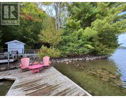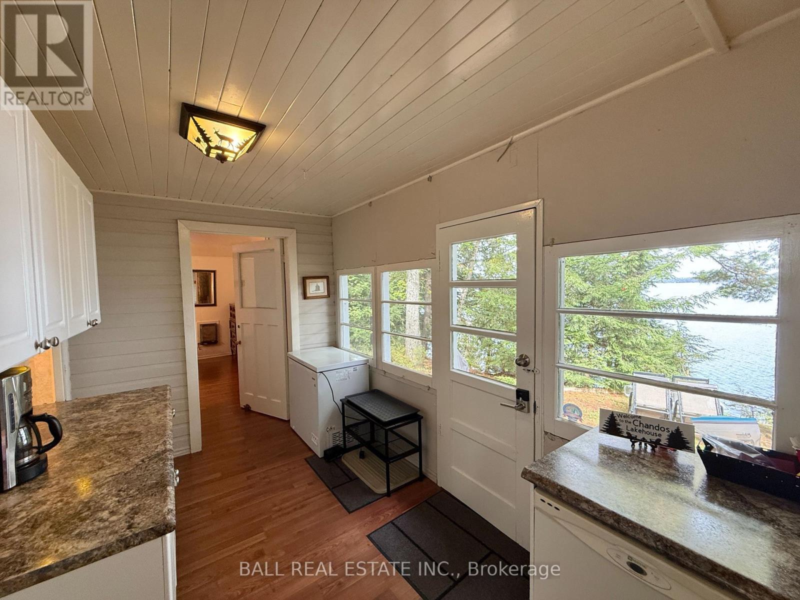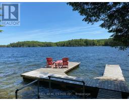 Charming Chandos Lake Cottage! 210ft of prime waterfront with rippling sandy beach frontage that wades into deep, clean water for great swimming, fishing and boating. 1.124 acres of wooded privacy with cottage and dry boathouse tucked in the trees near the water's edge for ultimate privacy. This adorable cottage offers 3 bedrooms and 2 full bathrooms, including a 3-piece ensuite in the primary bedroom, plus a screened-in porch and a cozy woodstove in the open-concept, lakeview living room. Watch the sunrise off the dock & lakeside decks, and watch the sunset light up the lake from your private wooded point along the peninsula of South Bay. Excellent privacy off the long, wooded driveway set on a year-round municipally maintained road with curbside collection, just 15 mins to amenities of Apsley. Enjoy true cottage serenity on Chandos Lake! (id:61423)