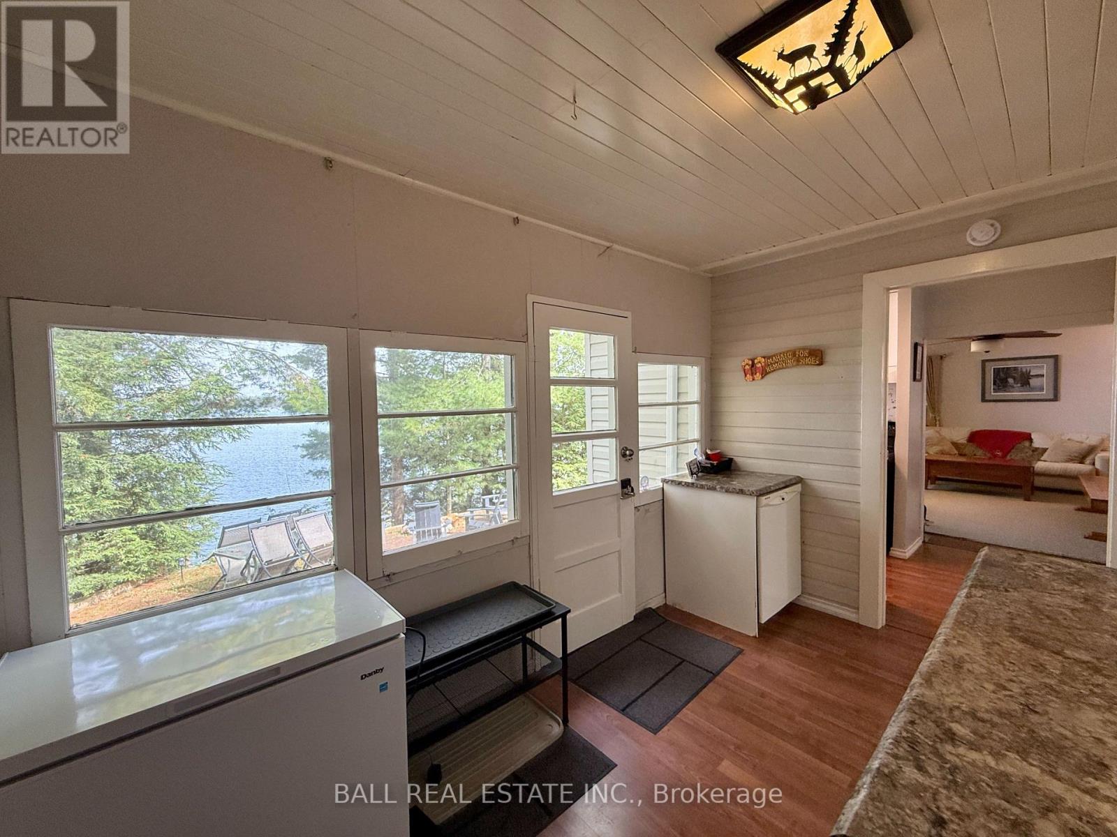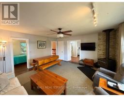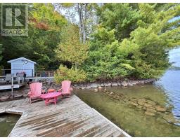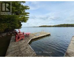 Charming Chandos Lake Cottage! 210ft of prime waterfront with rippling sandy beach frontage that wades into deep, clean water for great swimming, fishing and boating. 1.124 acres of wooded privacy with cottage and dry boathouse tucked in the trees near the water's edge for ultimate privacy. This adorable cottage offers 3 bedrooms and 2 full bathrooms, including a 3-piece ensuite in the primary bedroom, plus a screened-in porch and a cozy woodstove in the open-concept, lakeview living room. Watch the sunrise off the dock & lakeside decks, and watch the sunset light up the lake from your private wooded point along the peninsula of South Bay. Excellent privacy off the long, wooded driveway set on a year-round municipally maintained road with curbside collection, just 15 mins to amenities of Apsley. Enjoy true cottage serenity on Chandos Lake! (id:61423)