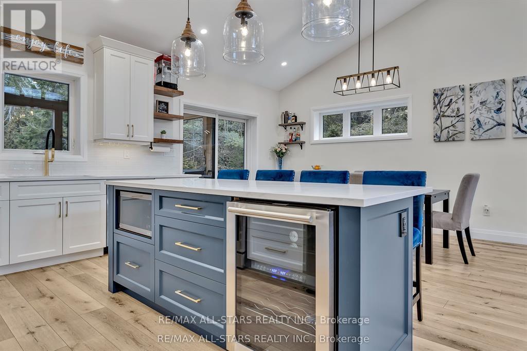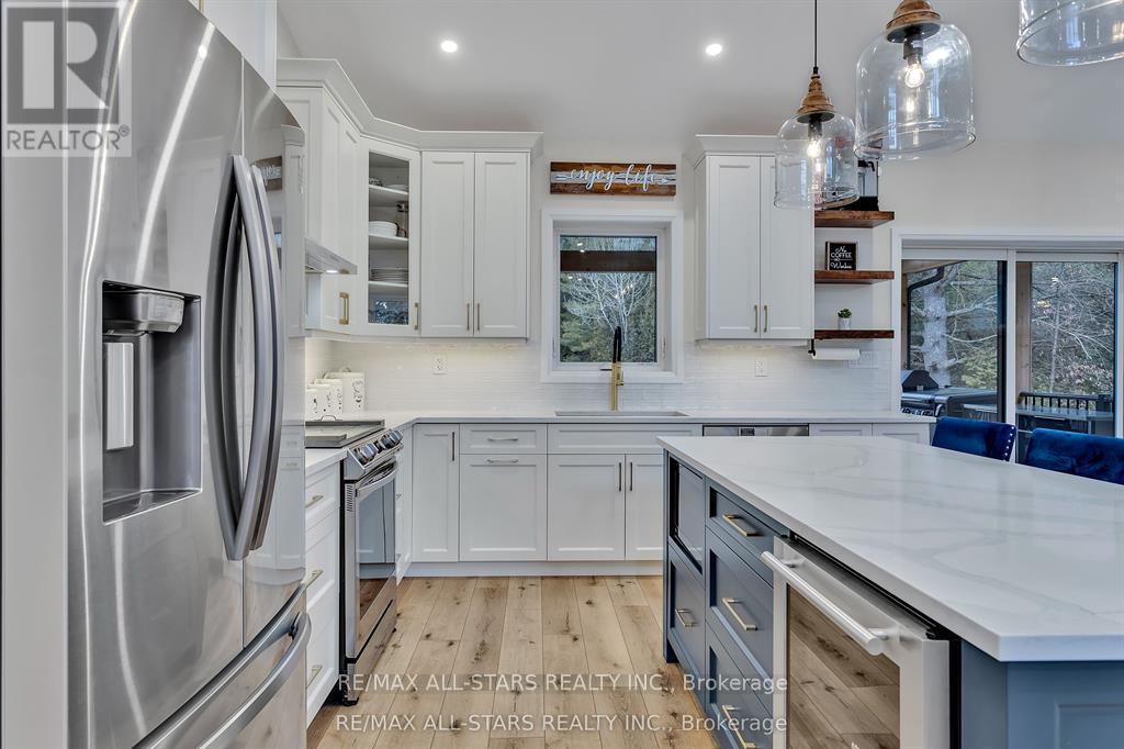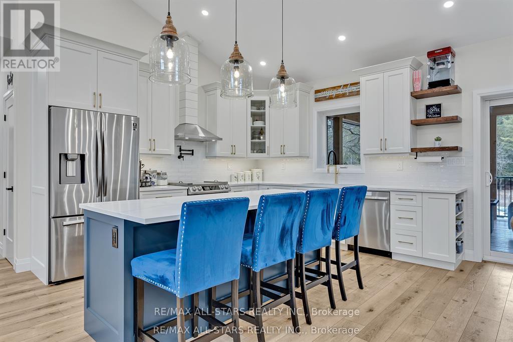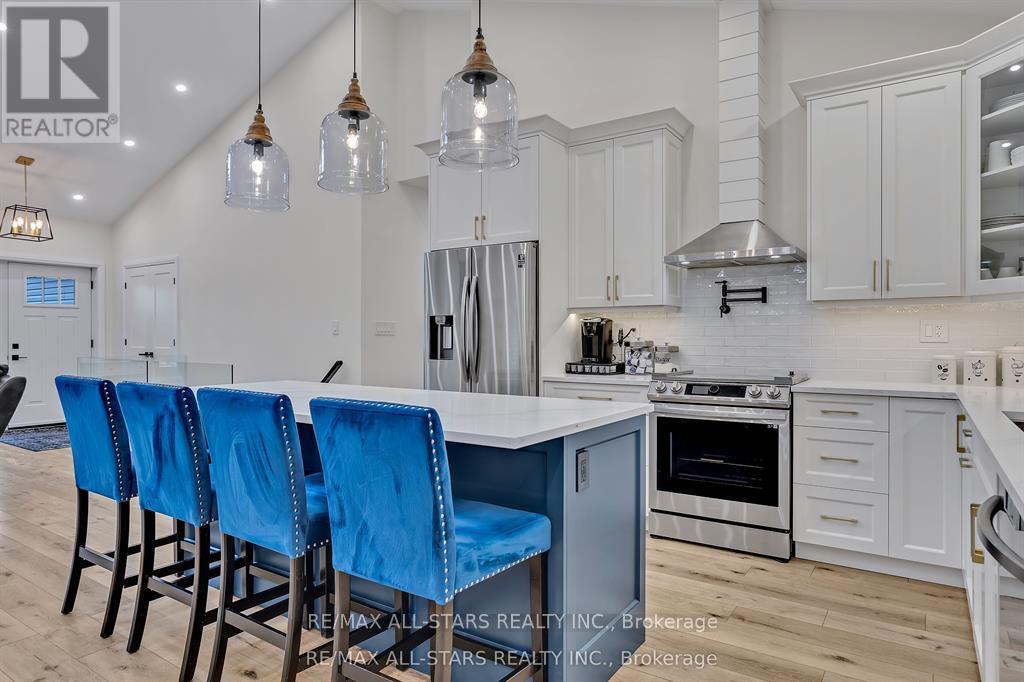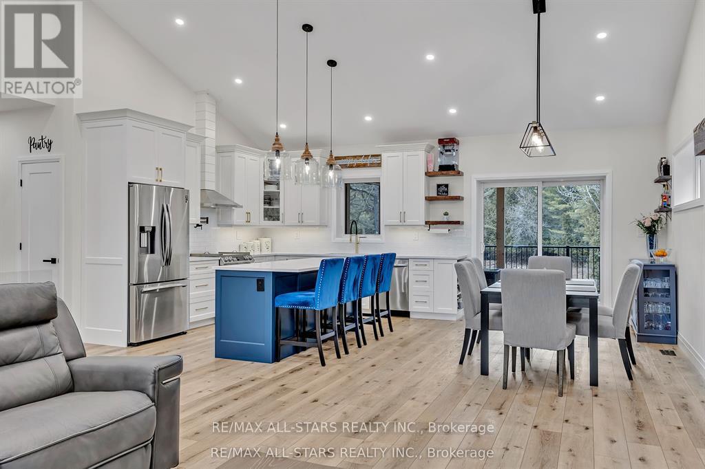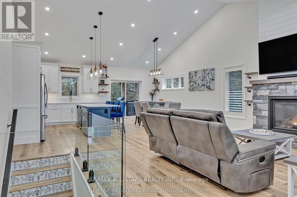 Exquisite Executive Home in the Heart of Norwood! This custom-built executive home is a masterpiece of craftsmanship and design, offering a perfect balance of luxury and functionality in the heart of Norwood. Thoughtfully designed with cathedral ceilings and an open-concept layout, this home is both spacious and inviting. The main living area is bathed in natural light, featuring a beautifully designed kitchen, living, and dining space that seamlessly flow together. The custom kitchen boasts high-end finishes, ample cabinetry, and a spacious island, perfect for both casual meals and entertaining. A cozy fireplace anchors the living space, while a walkout leads to the expansive deck, where post-and-beam architecture creates a stunning outdoor retreat with breathtaking country views. The main level offers three well-appointed bedrooms and two bathrooms, including a luxurious primary suite with a spa-like ensuite, ensuring a private retreat. The fully finished lower level is exceptionally spacious, making it ideal for multigenerational living, a high-end games room, or a sprawling family retreat. With an additional bedroom and bathroom, plus a walkout to stunning armor stone landscaping, meadows, and a forested backdrop, this space is as versatile as it is beautiful. You won't get chilly downstairs with the heated floors. Completing this exceptional property is a large attached one-car garage, providing both convenience and additional storage. Did you notice that the floors in the garage are tiled? There is also an EV hook-up in the garage. This architectural gem seamlessly blends modern elegance with thoughtful craftsmanship, creating a home that is as stunning as it is functional! (id:61423)