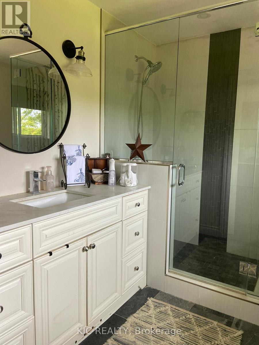Welcome to your private country paradise set on 103.78 acres of picturesque countryside, nestled on a quiet cul-de-sac. This beautifully renovated 3-bedroom home offers the perfect blend of modern comfort, natural beauty, and exceptional potential. Extensively updated with the upper level completed in 2018 and the lower level in 2023, the home features engineered hardwood flooring on the main level and quality laminate on the lower level. The bright, open-concept layout is highlighted by a modern kitchen with quartz countertops, stainless steel appliances, and a spacious dining area that flows seamlessly into the inviting living room with a propane fireplace (2022).Step outside through glass patio doors to expansive decks, a stamped concrete patio, and professionally landscaped gardens complete with large limestone accents, a firepit, water feature, and hot tub (2019), creating an ideal space for entertaining or relaxing in a serene setting. The attached garage has been thoughtfully converted into a versatile family/entertaining space, featuring a WETT-certified wood stove and overhead heaters for year-round enjoyment. The primary suite offers a generous walk-in closet with convenient in-suite laundry and a well-appointed 4-piece ensuite .Additional features include a propane furnace (2020), updated shingles (2014), and a paved driveway (2022).The property offers approximately 70 acres of workable farmland, 5 acres of wooded area, two ponds, and a large cleared section suitable for a future shop, barn, or hobby farm use. A Rogers communication tower provides approximately $12,000 in annual income. This exceptional property presents a rare opportunity to enjoy peaceful rural living with income potential and future possibilities. Cell tower brings in $12k annually contract for 25 years, view it up road from home to green gates (id:61423)