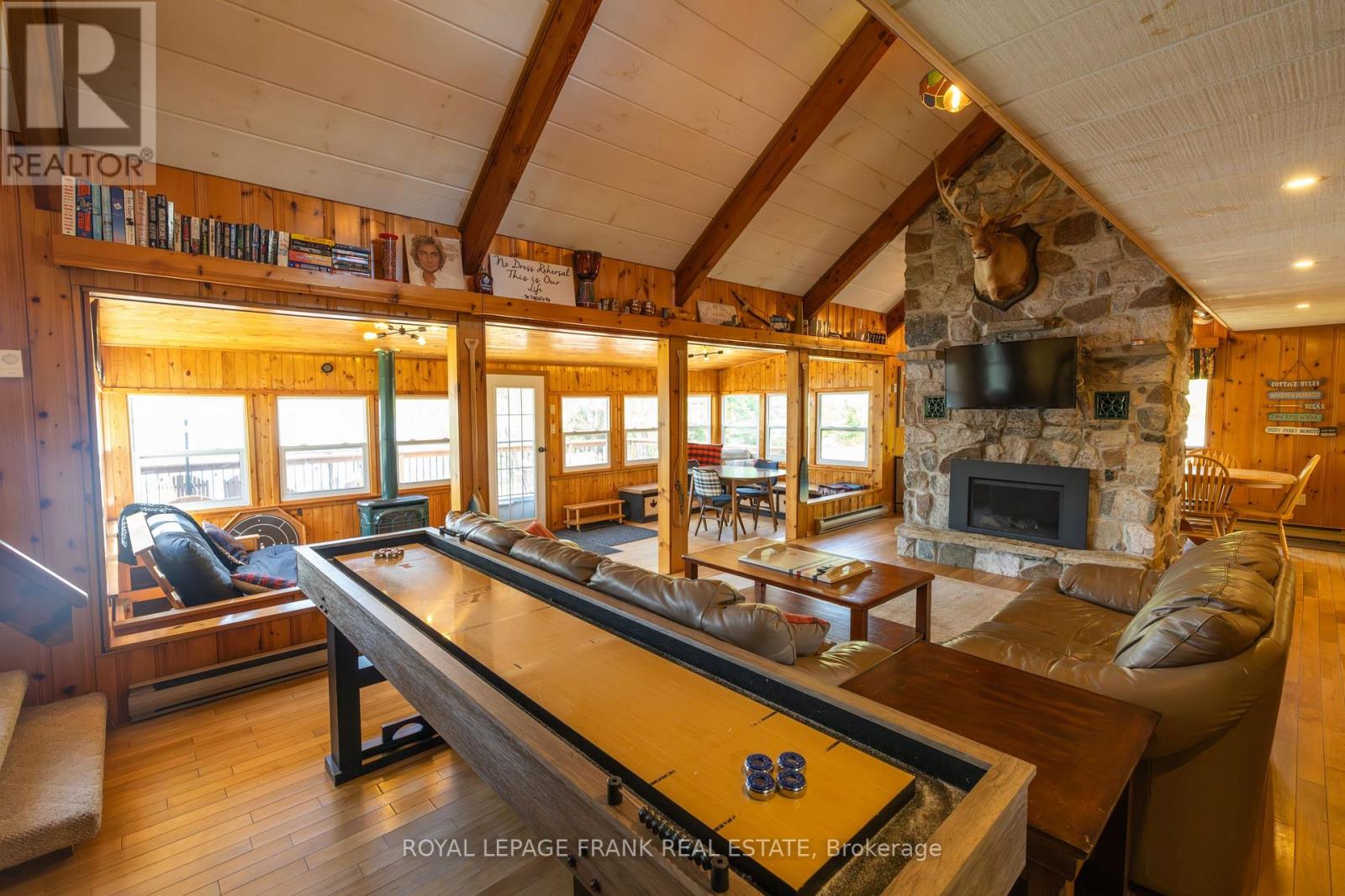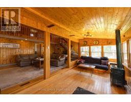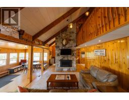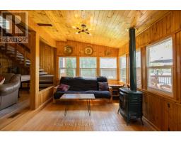 Set on West Twin Lake with 135 feet of shoreline, this Kawarthas waterfront property features two cottages, a large lakeside deck, generous dock space, and year-round municipal road access. Offering space for family, guests, and relaxing days on the water, this versatile retreat provides the opportunity to enjoy lake life throughout the seasons. The main four-season cottage features four bedrooms and two bathrooms, including a 3-piece bathroom with walk-in shower and a convenient 2-piece bathroom on the main floor. The kitchen offers ample workspace and connects to the dining area and spacious living room, where two propane fireplaces create a warm and inviting atmosphere. A sunroom overlooking the lake provides a comfortable place to unwind and leads out to the large lakeside deck, ideal for outdoor dining, entertaining, or simply taking in the views across West Twin Lake. A separate three-season guest cabin sits closer to the shoreline and offers a private retreat for visitors or extended family. This one-bedroom cabin includes a kitchenette, sitting area, and bathroom, providing a comfortable space for guests while maintaining privacy from the main cottage. The waterfront is well suited for enjoying the lake, with generous dock space that makes it easy to swim, boat, or spend time by the water. Additional features include a drilled well, septic system, portable generator backup, single-car garage, and parking for multiple vehicles. The property is located on a municipally maintained road with year-round access and is bordered on one side by municipal land, offering added privacy with no immediate neighbour. Whether you're looking for a peaceful lakeside escape, a cottage with room for extended family, or a property with flexible guest space, this West Twin Lake property offers a great opportunity to enjoy waterfront living in the Kawarthas (id:61423)