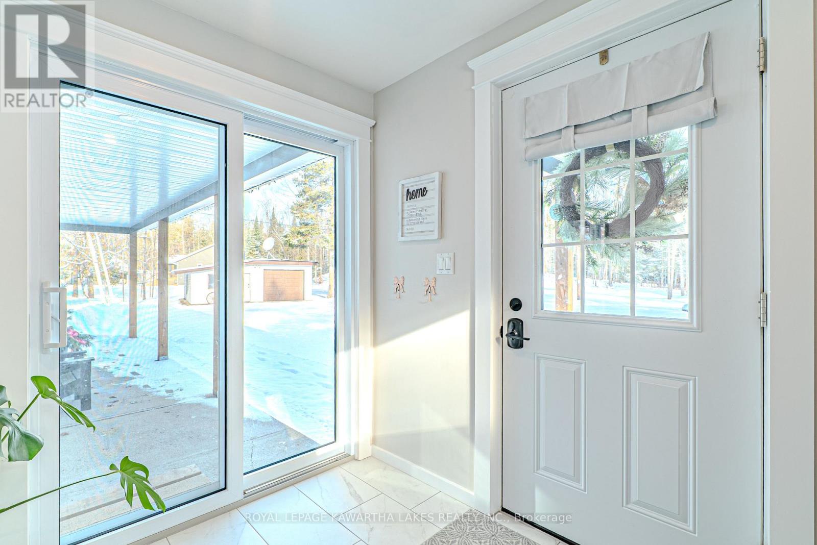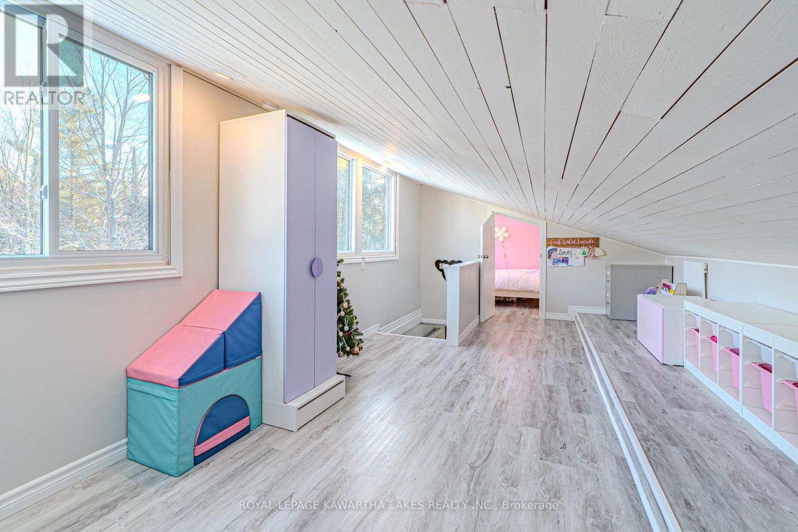 Clean and cozy 4 bedroom bungalow on 10.25 acres. Nestled on a dead-end road just minutes from Coboconk and biking distance to Balsam Lake Provincial Park, this peaceful, tastefully decorated home is the perfect location to enjoy nature and outdoor life. The main floor features a bright, eat-in kitchen with pantry, a foyer with walkouts to the deck, open living room, a 4 pc bath, and 3 bedrooms. The upstairs loft area has a fourth bedroom as well as a large open space, perfect for an office, home gym, playroom...the possibilities are endless! The home boasts many upgrades including newer windows (2024) throughout and a metal roof. The home is close to snowmobile and ATV trails as well as 200 acres of crown land across the road. Property includes a detached garage/workshop (24'x24') fully insulated with woodstove and propane wall furnace. This is a must see...simply move in and enjoy! (id:61423)