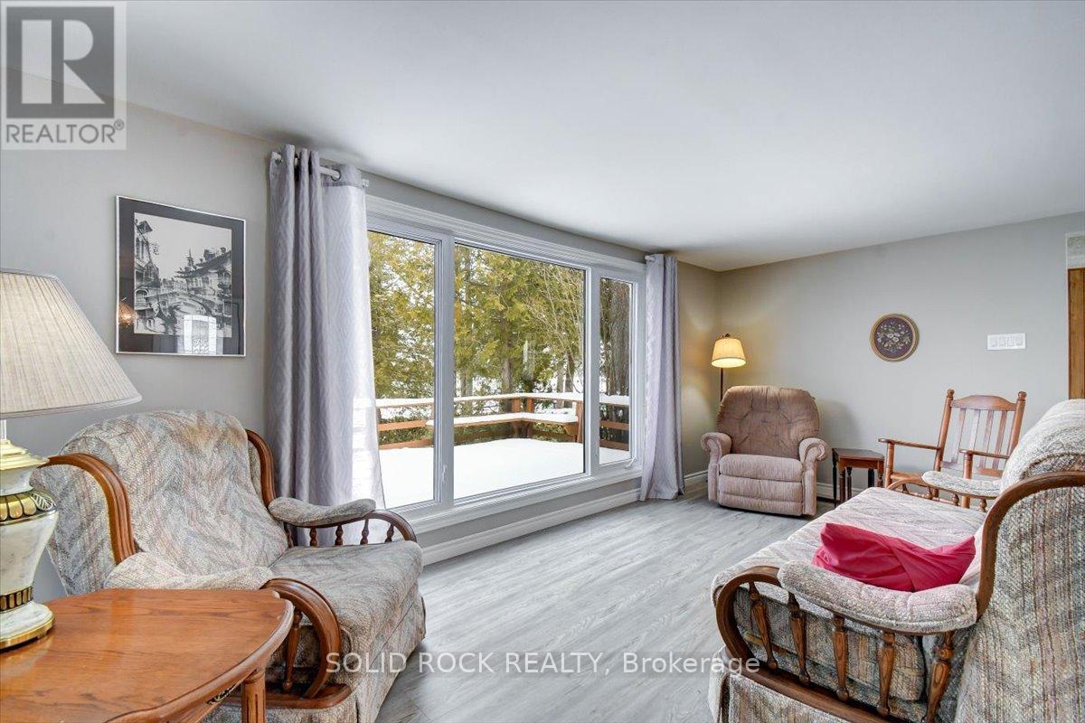 What if your next home came with a view like this...every single day? Welcome to 58 Puffball Inn Rd just outside of Campbellford where the peaceful waterfront living offers this great home with incredible views! Situated on Burnt Point Bay on the Trent-Severn Waterway, this home is a bright, open concept home where the kitchen, dining and living areas flow seamlessly together. The modern renovated kitchen is both stylish and efficient. Large newer windows fill the home throughout. Just off the main living area is a cozy family room/sitting room that has stunning views of the water with a walk out door to the deck where you can see both sunrises and sunsets because of the orientation of the home!!! The home has 2 bedrooms on the main level and 2 bedrooms on the lower level of this raised bungalow. However, there is a sitting area off the main living room, that can be converted back into a 3rd bedroom quite easily if someone needs a 3rd bedroom on the main level. The fully finished basement expands your living space even further. Here you will find a perfect area for entertaining, game nights, or simply relaxing by the warmth of the propane fireplace (with remote). The spacious lower level can easily be changed into an in-law suite with separate entrance or can accommodate a multi-generational family. The detached 2 car garage can accommodate vehicles and also has space for a workshop or additional storage. The exterior of the house is Maibec Siding. Whether you are looking for a year-round home or a waterfront retreat, this home offers it all and a location that's hard to beat. Near Campbellford which offers restaurants, retail, Aron Theatre, Hospital, hiking, snowmobiling, YMCA Wellness Centre, and so much more. Come build your memories starting this spring/summer in 2026! The Puffball Inn (1920's) was a hot spot and visited by even Al Capone! All updates have been completed between 6 - 8 years approx. (id:61423)