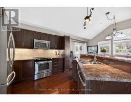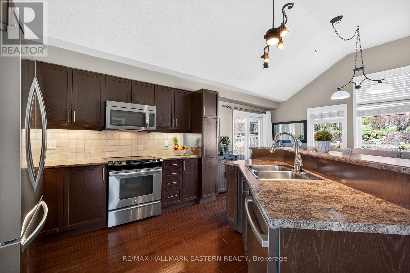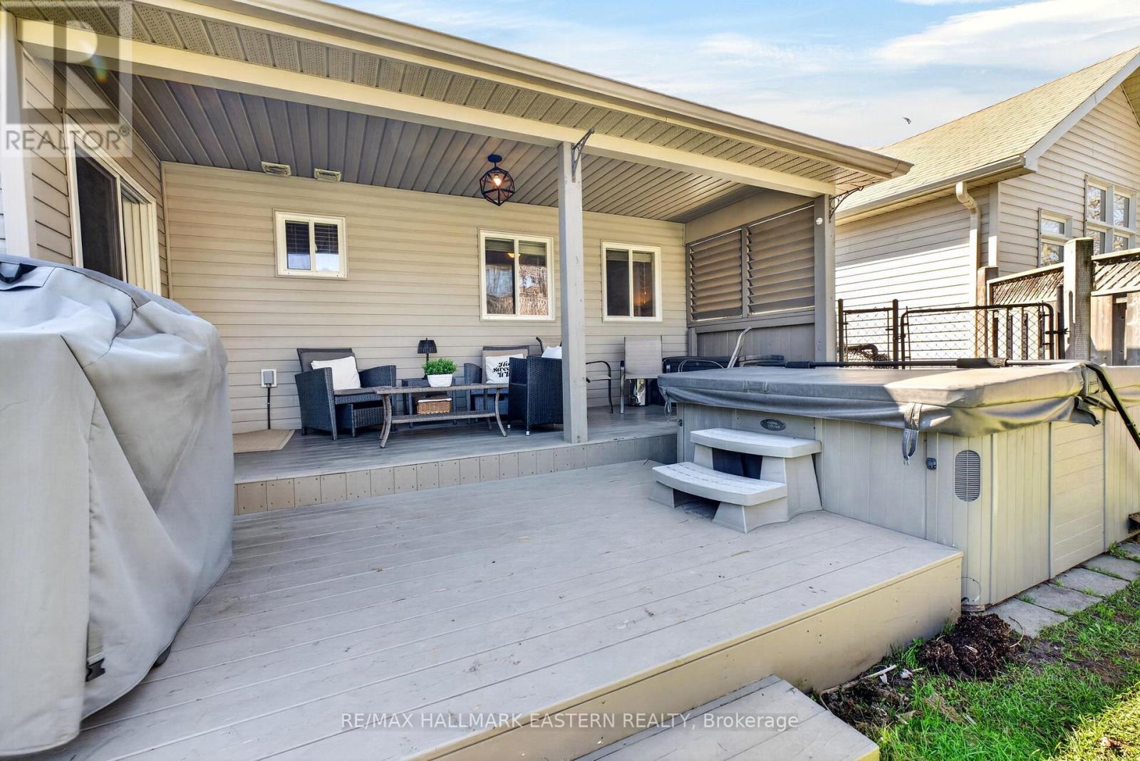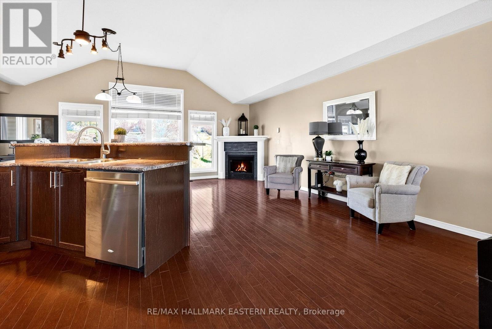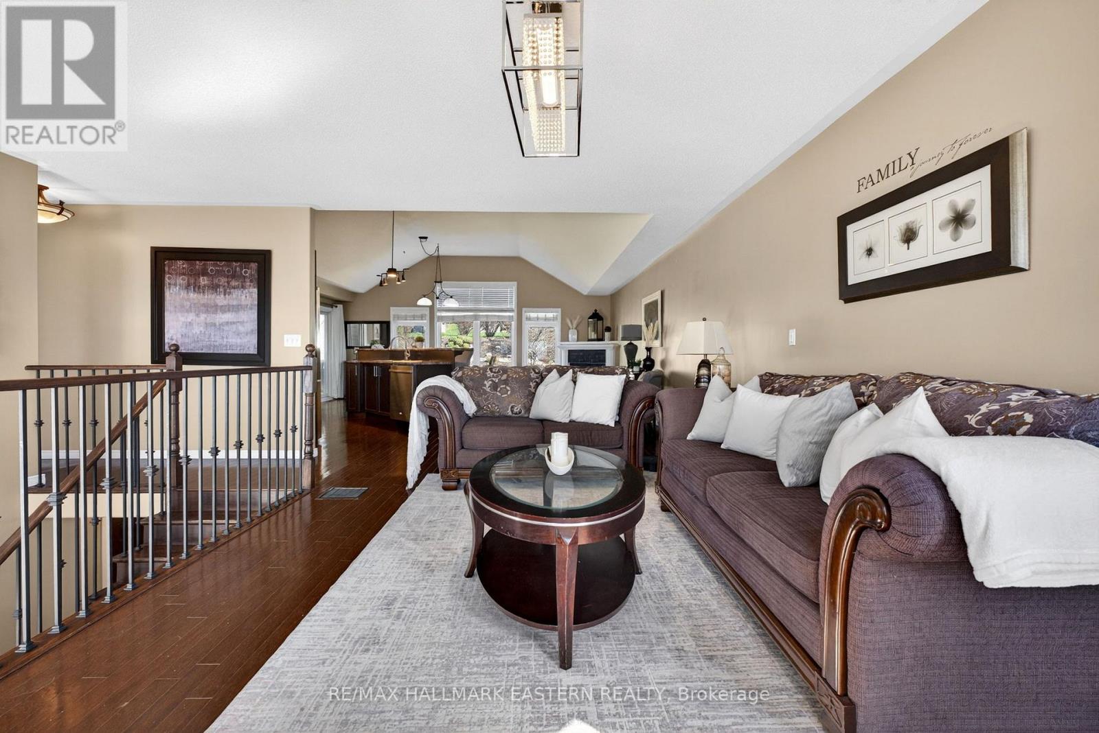 Stunning West End Raised Bungalow Near Fleming College - Move-In Ready! Welcome to this beautifully upgraded raised brick bungalow in Peterborough's sought-after West End, ideally located just minutes from Fleming College, Highway 115, parks, and everyday amenities. This home offers the perfect blend of modern design, comfort, and convenience, making it ideal for families, professionals, or investors. Step inside to a bright open-concept main floor featuring vaulted ceilings, pot lights, and rich hardwood flooring throughout. The heart of the home is the fully upgraded kitchen, complete with a spacious island that overlooks the living area-perfect for entertaining or family gatherings. Cozy up by the natural gas fireplace, creating a warm and inviting atmosphere year-round. The main level offers generously sized bedrooms, including a primary suite with a private ensuite bathroom, providing comfort and functionality for everyday living. Thoughtful upgrades throughout include custom window blinds, modern light fixtures, upgraded hardware, and an elegant oak staircase with matching railing. The fully finished lower level adds incredible versatility with an additional bedroom, bathroom, utility room, and spacious living area-ideal for extended family, guests, or potential in-law suite. Walk out from the kitchen to your private backyard oasis, featuring a large deck and a well-maintained hot tub. The fully fenced yard offers privacy and space for kids, pets, and outdoor enjoyment. (id:61423)