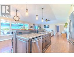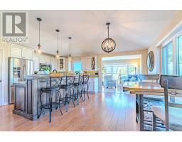 Spacious raised bungalow on the outskirts of Lindsay, offering 3+3 bedrooms, 3 bathrooms, and a fully finished basement apartment with separate entrance. The main floor features an open kitchen/dining area with engineered hardwood floors and granite countertops, a bright living room with fireplace and walkout to the deck, and a sunroom with an additional walkout. Three bedrooms with double closets, a 4-piece bath, a 2-piece bath, and a laundry room complete the level. The finished basement is ideal for multi-generational living or tenants, with its own kitchen/dining area, walkout mudroom, 4-piece bath, utility room, and three bedrooms (including one with a walk-in closet). Set on a 0.81 acre lot, the property includes a detached double garage, circular driveway with ample parking, hot tub, gazebo, and numerous upgrades throughout. A perfect blend of space, function, and convenience, just outside of town. (id:61423)