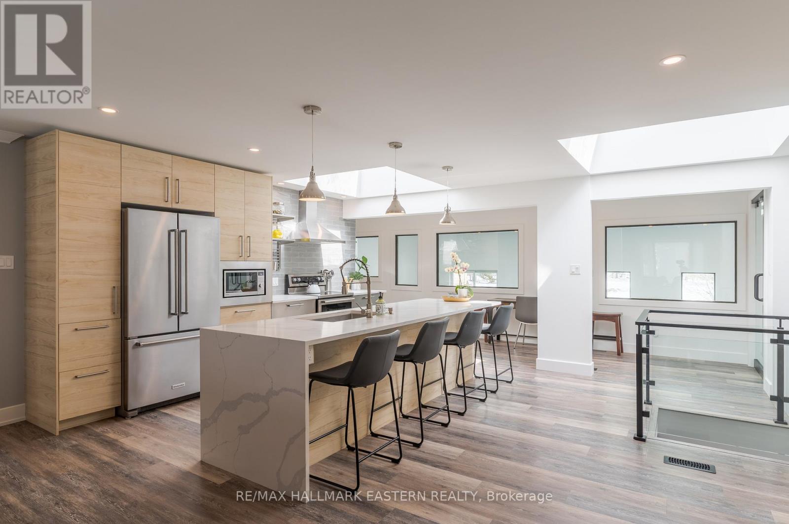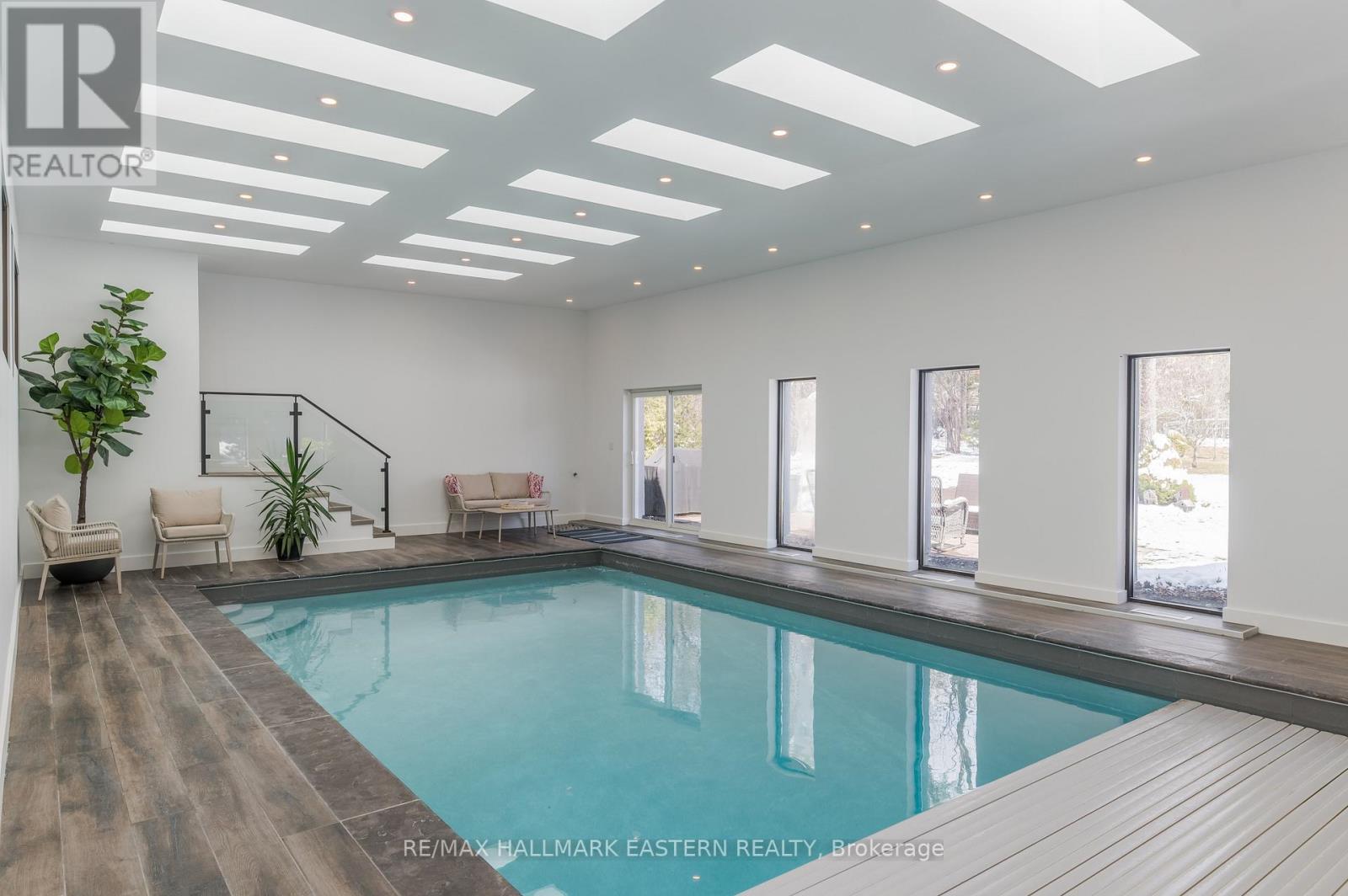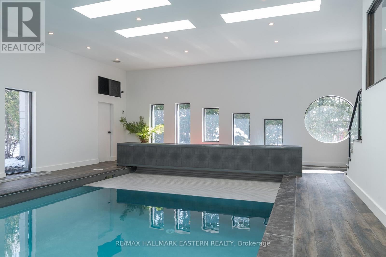 Tucked away on a quiet west-end crescent and set on an impressive 90' x 197' treed lot, this beautifully updated executive home delivers over 4,000 sq ft of finished living space-and a feature you simply won't find every day: a private indoor pool. Designed with both everyday living and entertaining in mind, the bright open-concept main floor offers a spacious kitchen, living, and dining area-perfectly positioned to overlook the pool through a striking wall of interior windows. It's a rare and seamless connection between spaces that brings natural light and a true sense of openness throughout the home. The indoor pool area itself is nothing short of impressive, surrounded by 14 skylights and lined with windows that look out to the fenced backyard-creating a light-filled, year-round retreat that feels both private and connected to the outdoors. Complete with a dehumidification system, updated marbelite, and automatic cover, it's a space designed to be enjoyed in every season. The main level also features three generous bedrooms and three beautifully updated bathrooms, while the fully finished lower level offers exceptional flexibility with above-grade windows, a 3-piece bath, and rough-ins for a kitchenette or wet bar-ideal for extended family or in-law potential. Recent upgrades include two gas furnaces, 2 A/C, tankless hot water, updated electrical with EV charging capability, roof, glass railings, and a striking commercial-grade glass entry. A rare offering in a sought-after location-this is a home that truly stands apart. (id:61423)