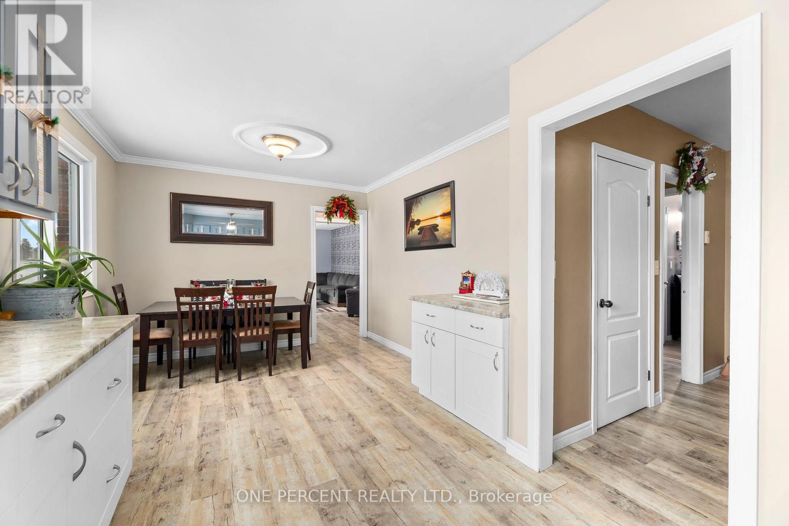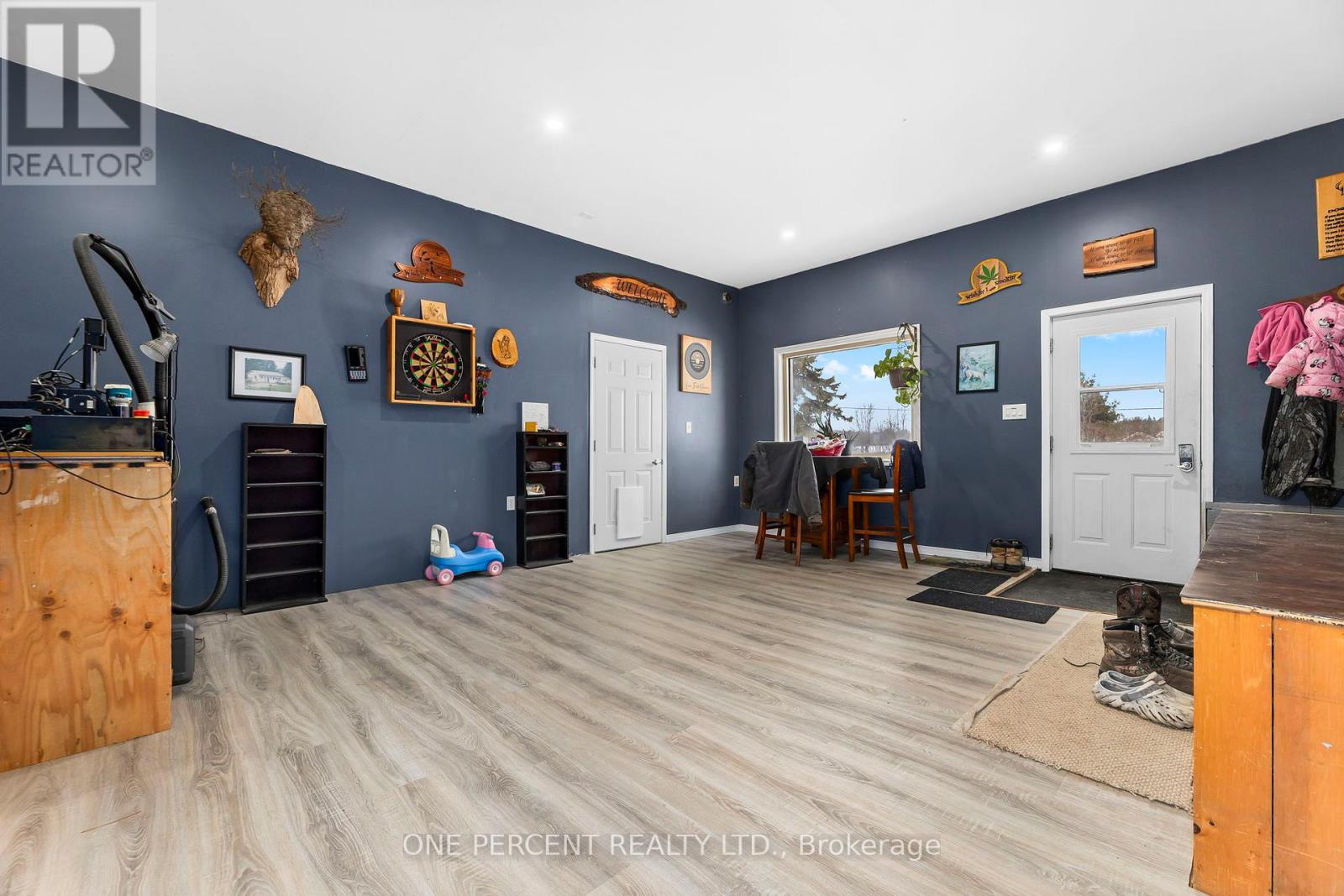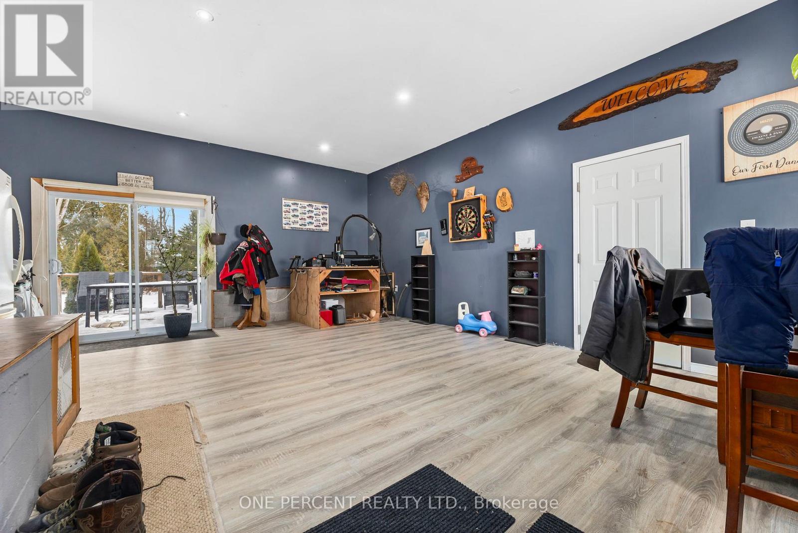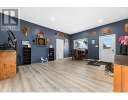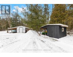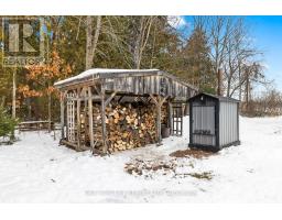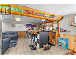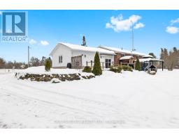 Set on just over 2 acres and minutes from Balsam Lake, this 3-bedroom, 1-bath bungalow offers space, thoughtful updates, and authentic country charm. The modern eat-in kitchen features crown moldings and stylish finishes, while laminate flooring throughout provides warmth and low-maintenance living. The inviting living room suits everyday life, and the finished lower level delivers a spacious rec room that functions as a true man cave, complete with a fish-tank bar setup and a fully stocked wood stove for winter, creating a warm and comfortable space for relaxing or entertaining year-round. Practical features include a dedicated laundry area, utility room, attached single-car garage, and two sheds, one powered, ideal for storage or workshop use. Recent updates include windows, doors, and a 200-amp breaker panel. Enjoy privacy on a tree-lined lot just minutes from a boat launch, making this property well suited for outdoor enthusiasts, gardeners, or those looking to grow their own crops. With highway exposure and potential for a secondary entrance from the adjoining roadway, subject to COKL approval, this property offers both convenience and opportunity. Country living with room to breathe-come make it yours. (id:61423)