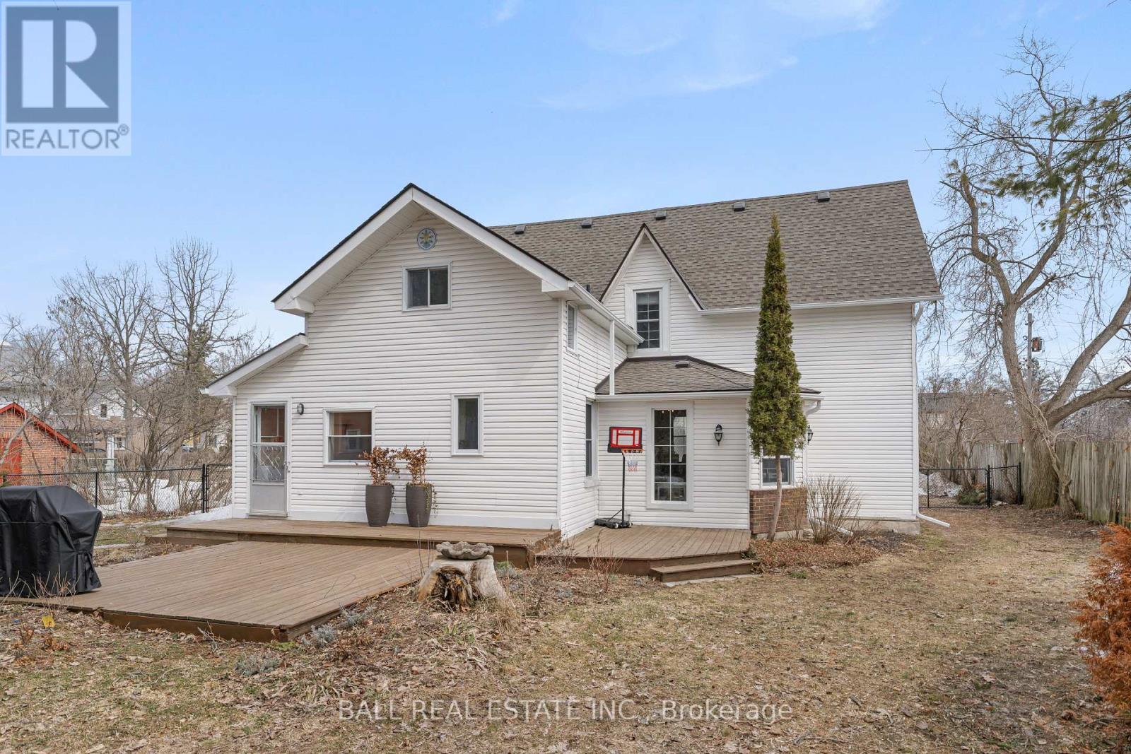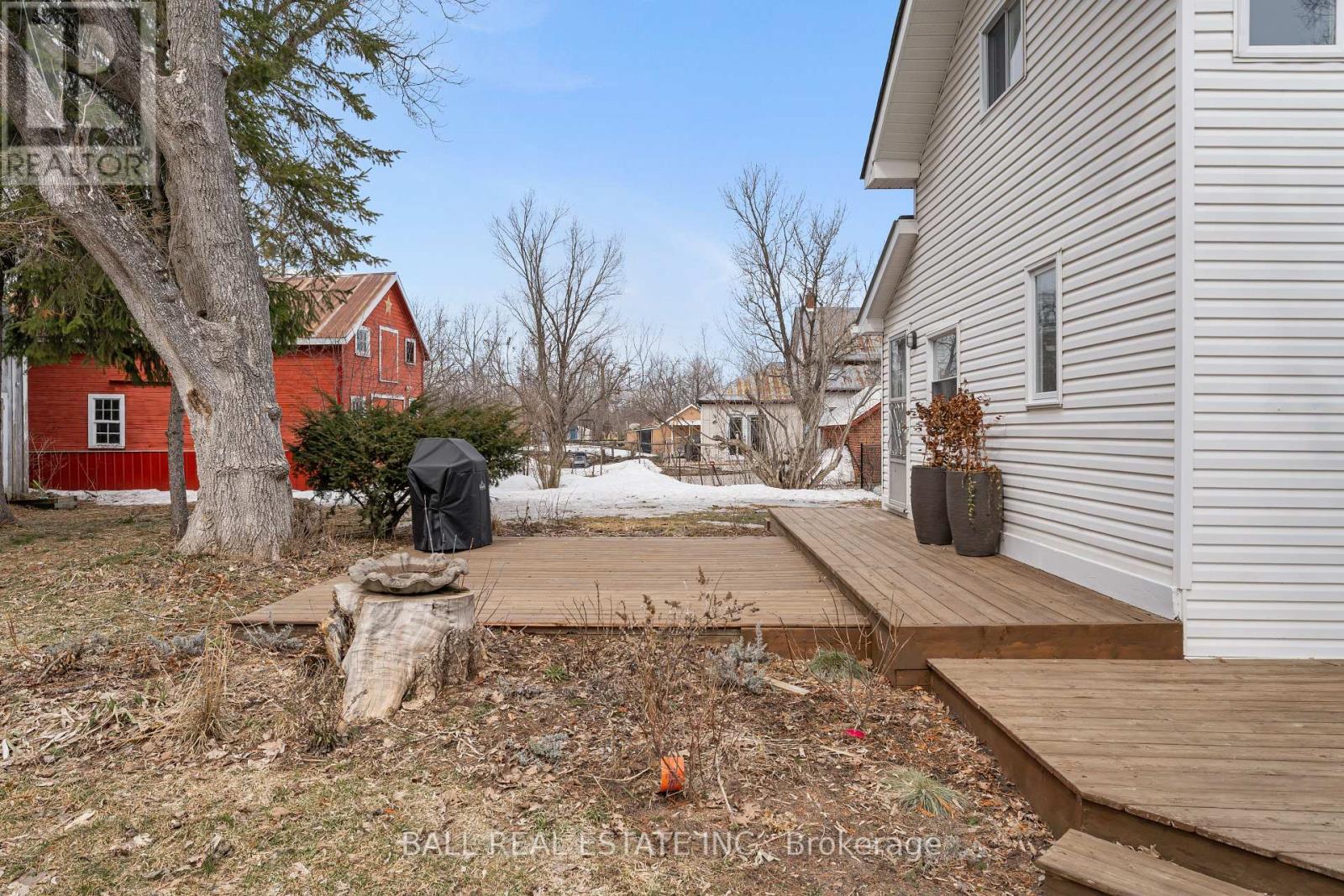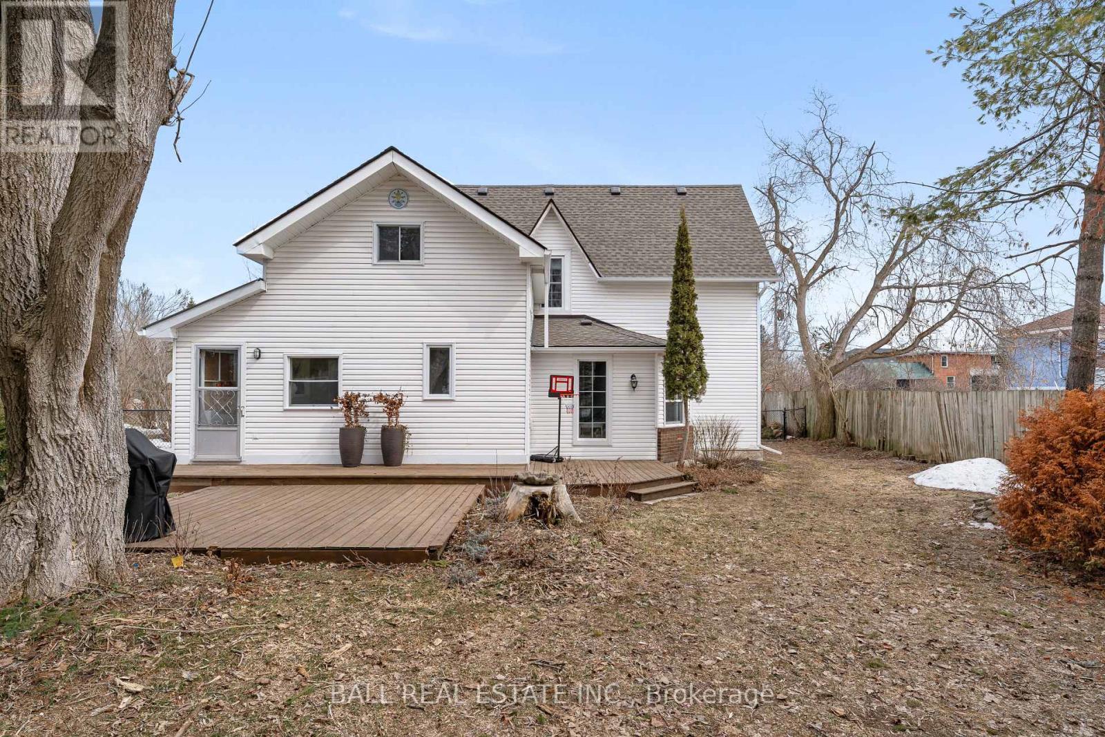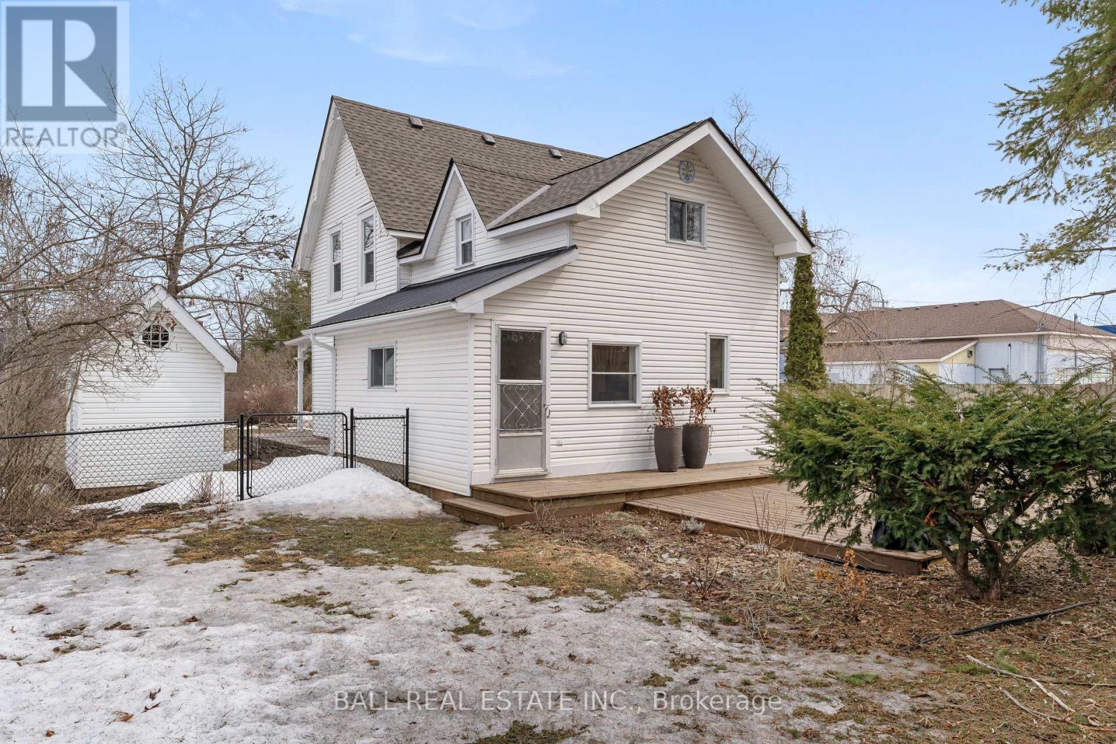 Step into the charm of this beautiful century home in the heart of Bobcaygeon, perfectly located within walking distance to shops, restaurants, and all local amenities. Set on a large, fully fenced lot with a paved driveway, this two-storey home blends character with everyday functionality. The main floor welcomes you with a foyer leading into a versatile space currently used as an in-home salon-ideal for a home-based business or easily converted to suit your needs. A formal dining room offers the perfect setting for gatherings, with an adjoining space ideal for a playroom or home office. The spacious eat-in kitchen provides plenty of room for family living, while the inviting living room showcases the home's timeless character. A convenient main floor laundry area with access to the backyard and a 2-piece bathroom complete the level. Upstairs, you'll find a generous primary suite featuring its own 2-piece ensuite and potential for a large walk-in closet. Two additional well-sized bedrooms and a 4-piece bathroom offer comfortable accommodations for family or guests. Step outside to enjoy two rear decks overlooking the private, fully fenced yard-perfect for entertaining or relaxing. The property also features storage shed along with an additional outbuilding at the back, offering plenty of space for storage, hobbies, or future use. With a brand new shingle roof and eavestroughs completed in fall 2025, this move-in ready home is the perfect opportunity to enjoy in-town living with character, space, and convenience. (id:61423)